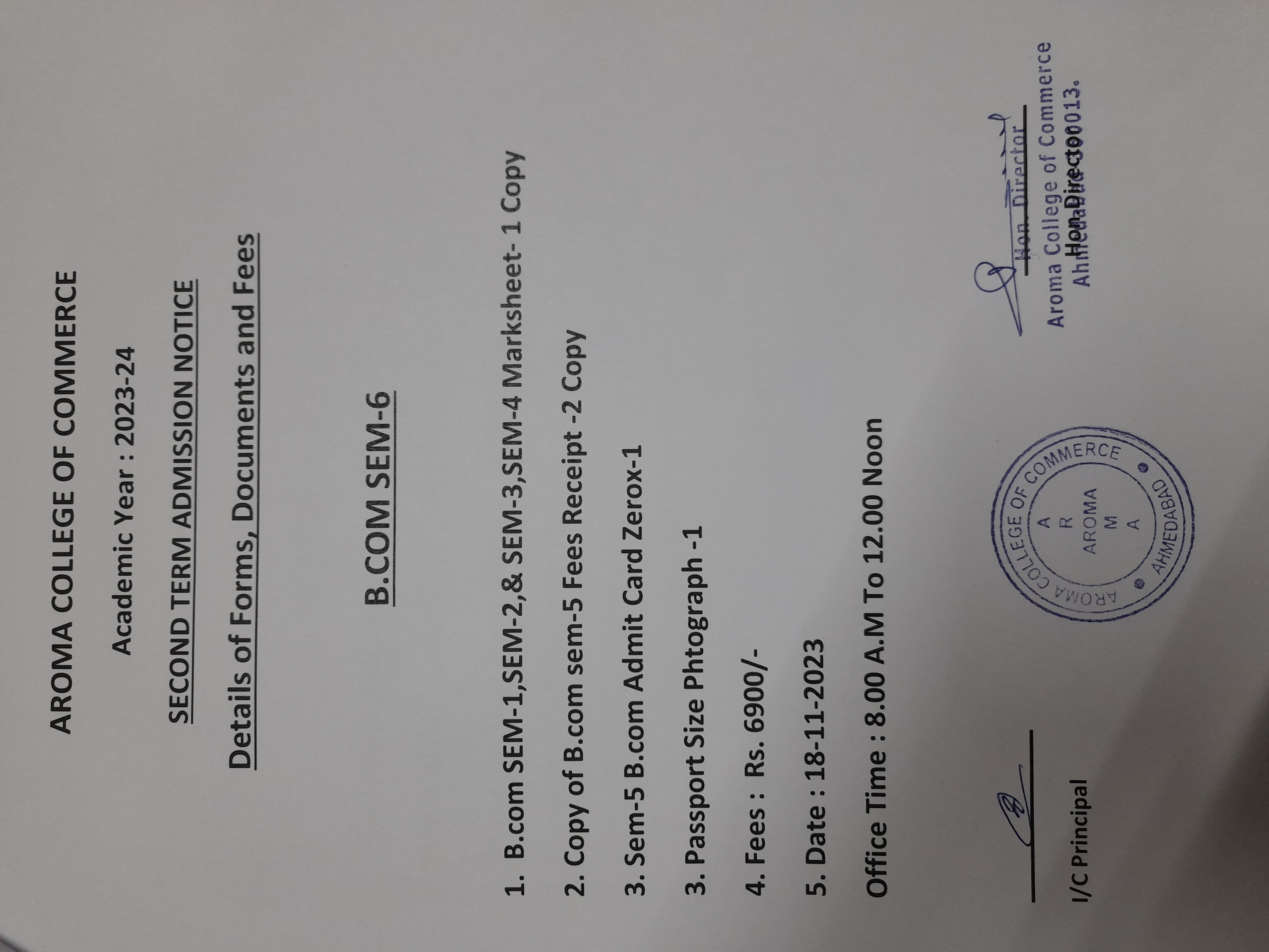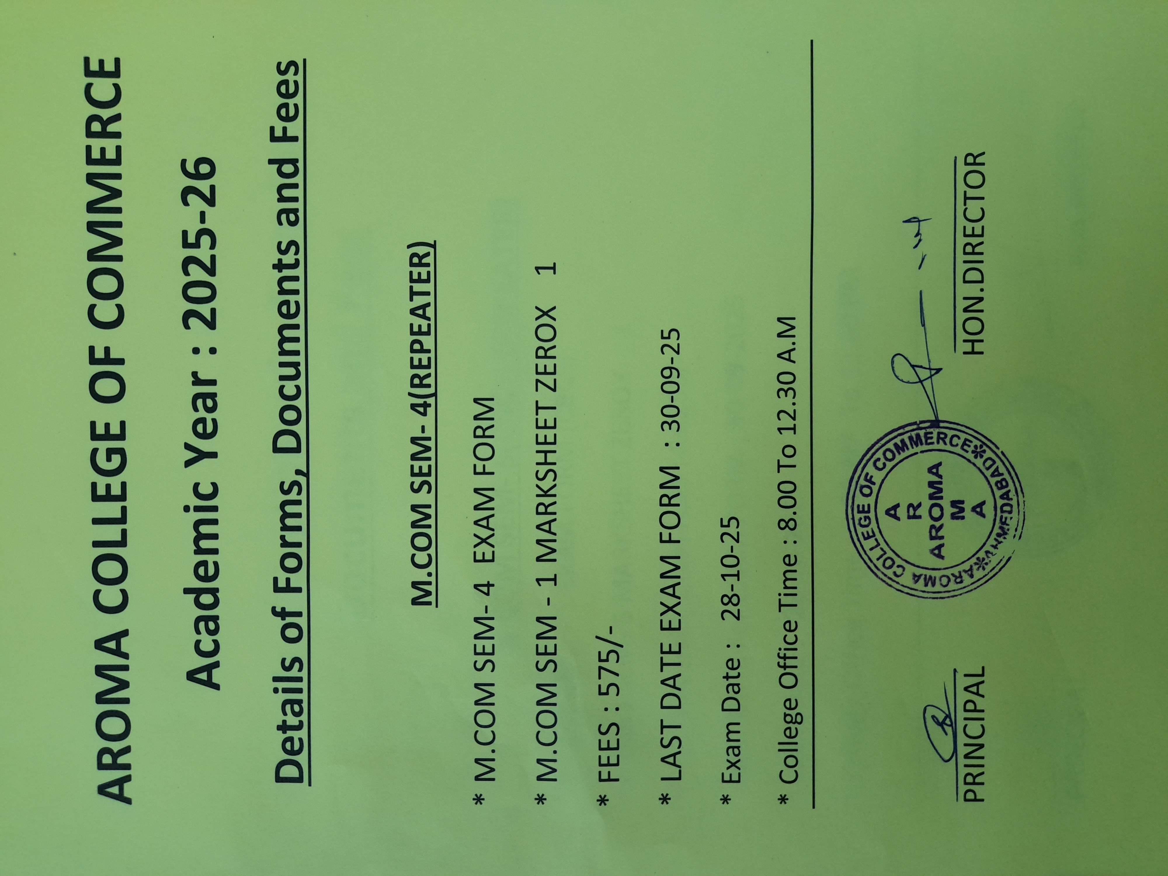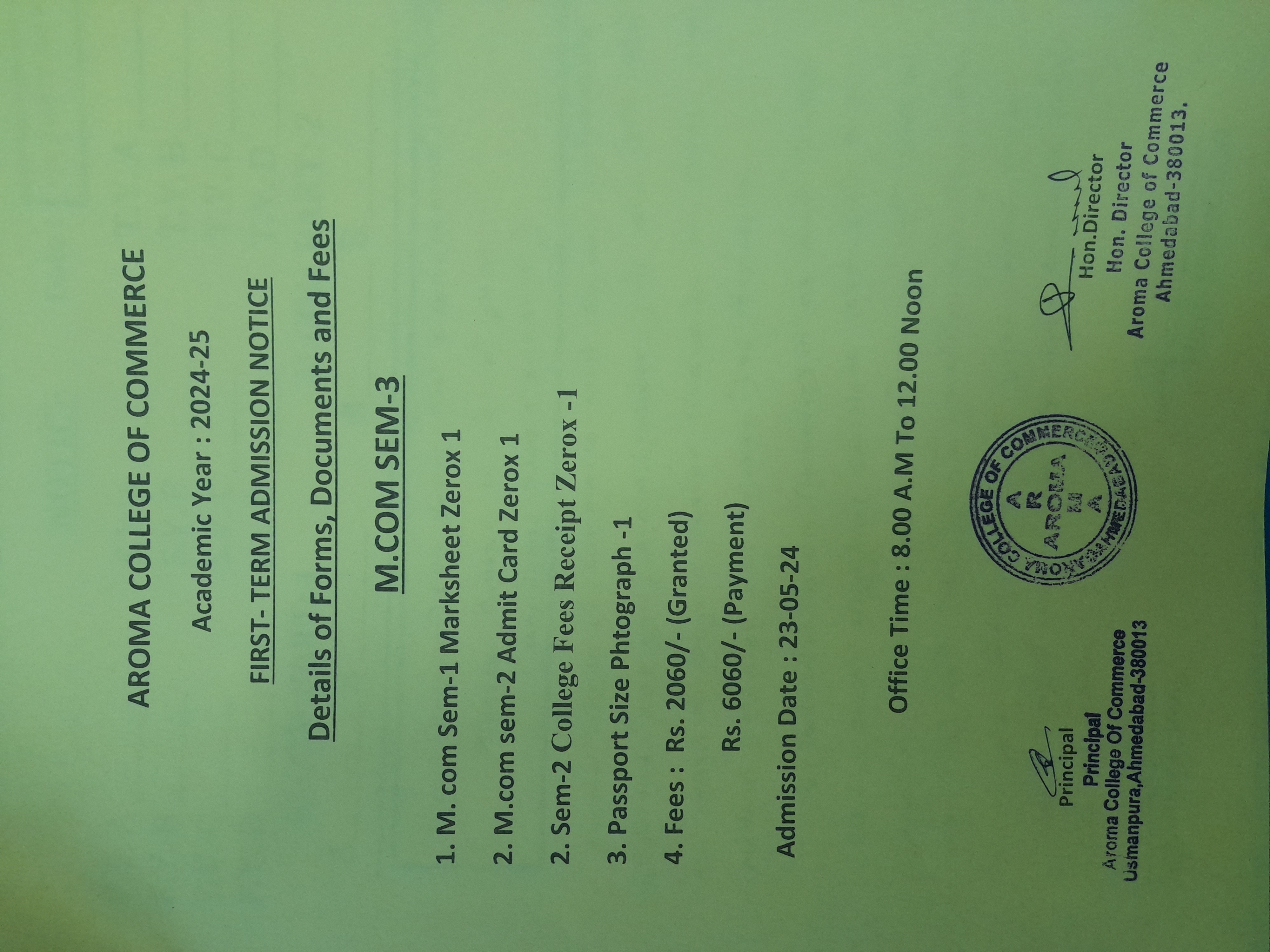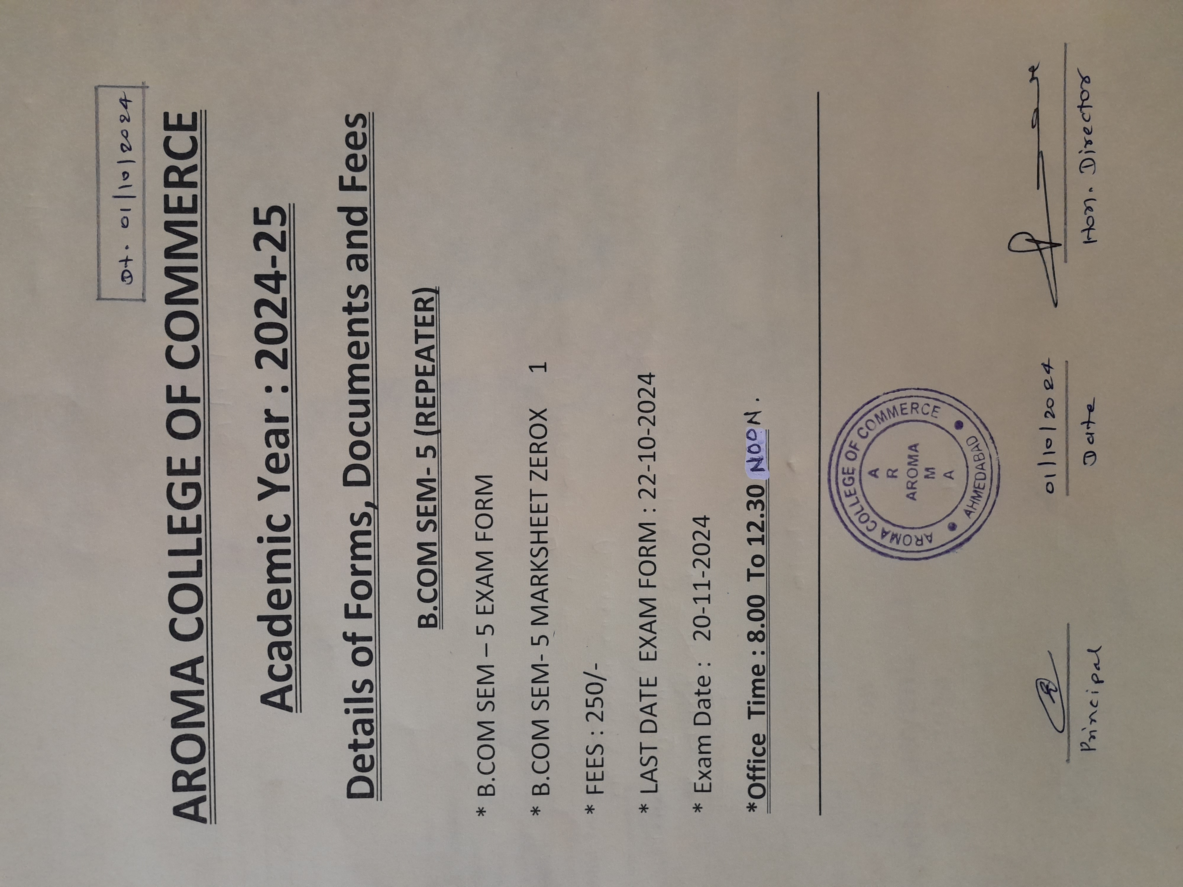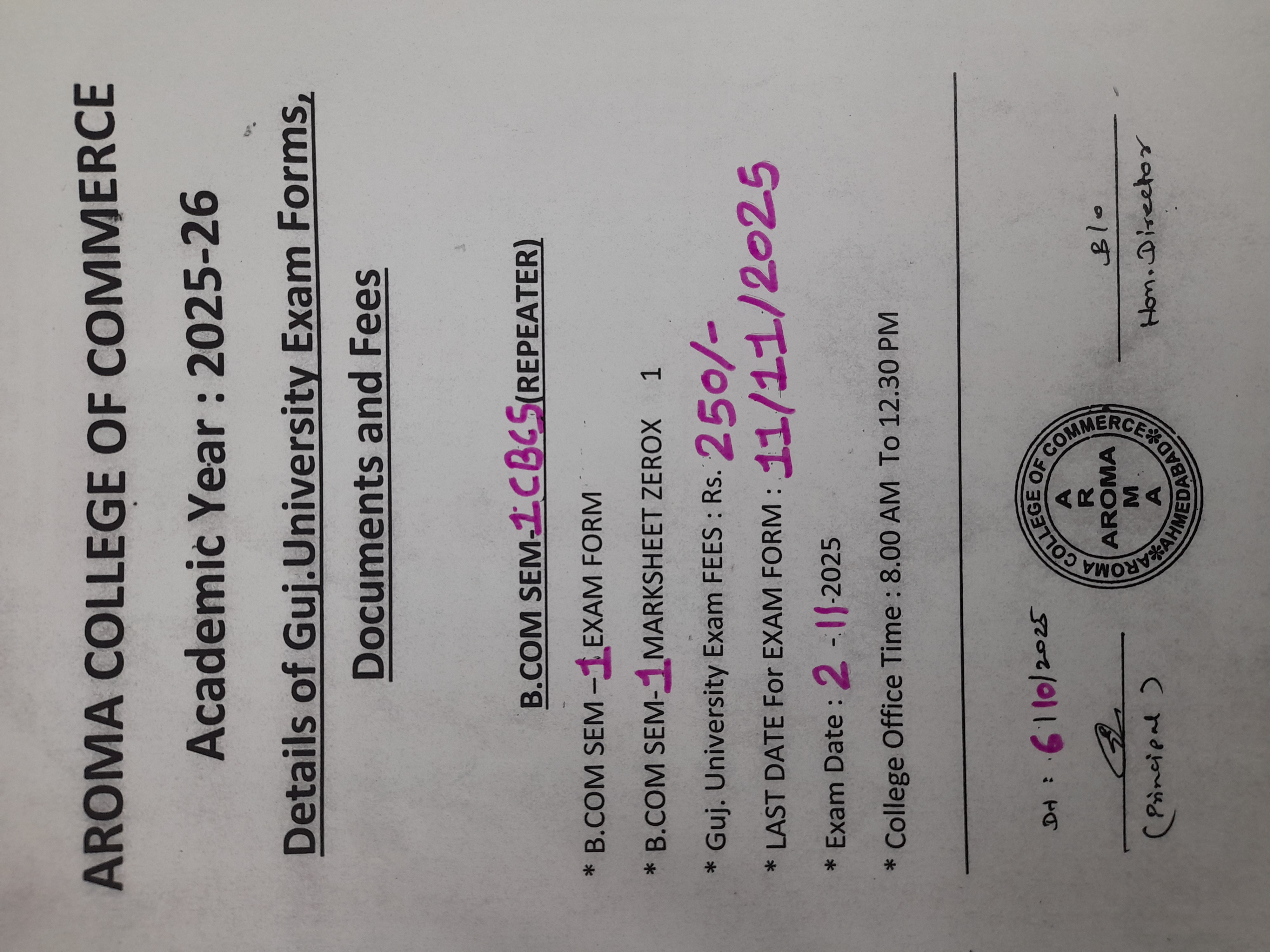 Important Notice: Last date for Admissions Forms and Term Fees with late fees for B.COM.SEM-3 ,B.COM SEM-5 and M.COM SEM-3 will be 02/09/2025 and Considered for Internal Exam starting from 15/09/2025.