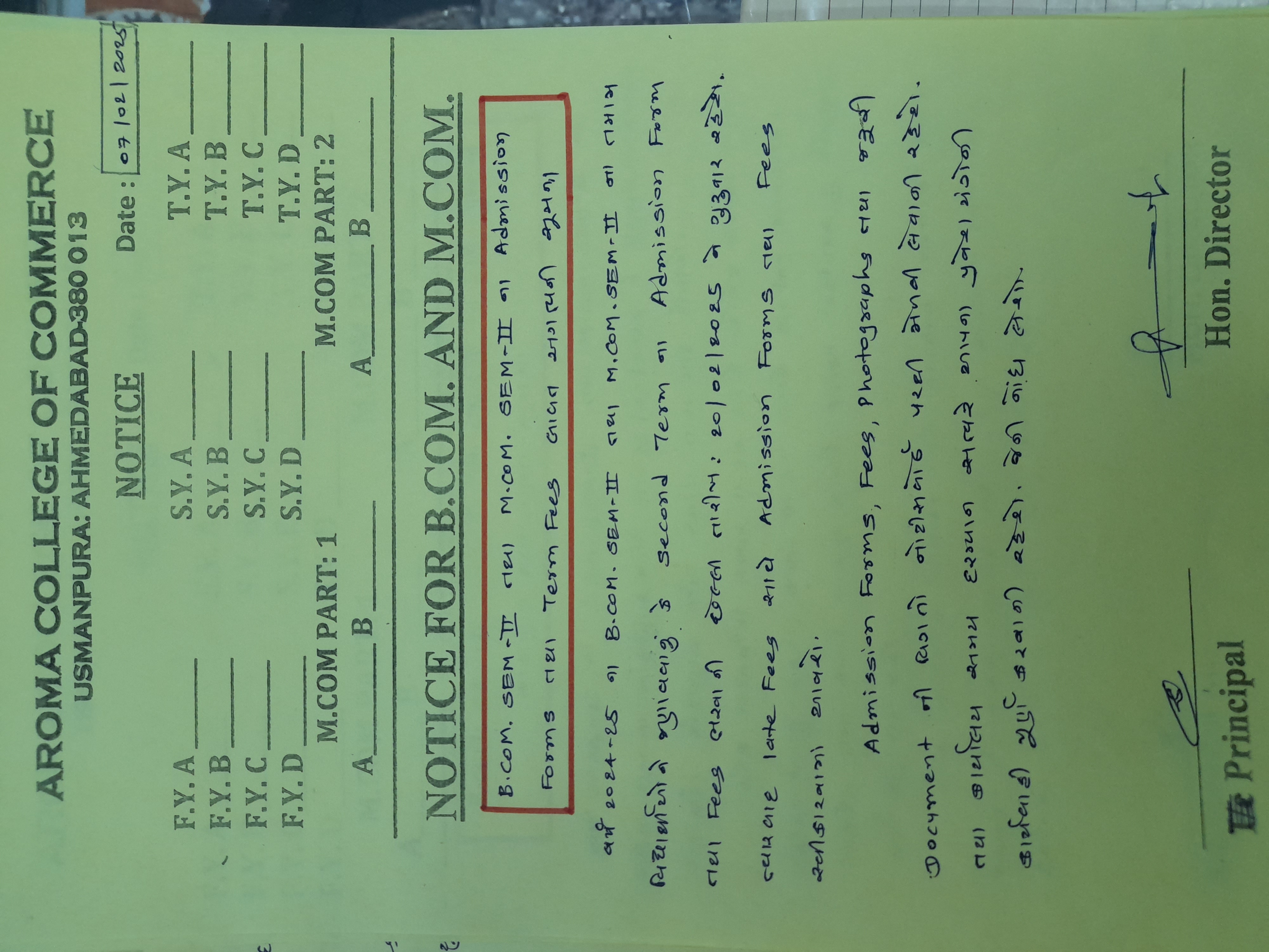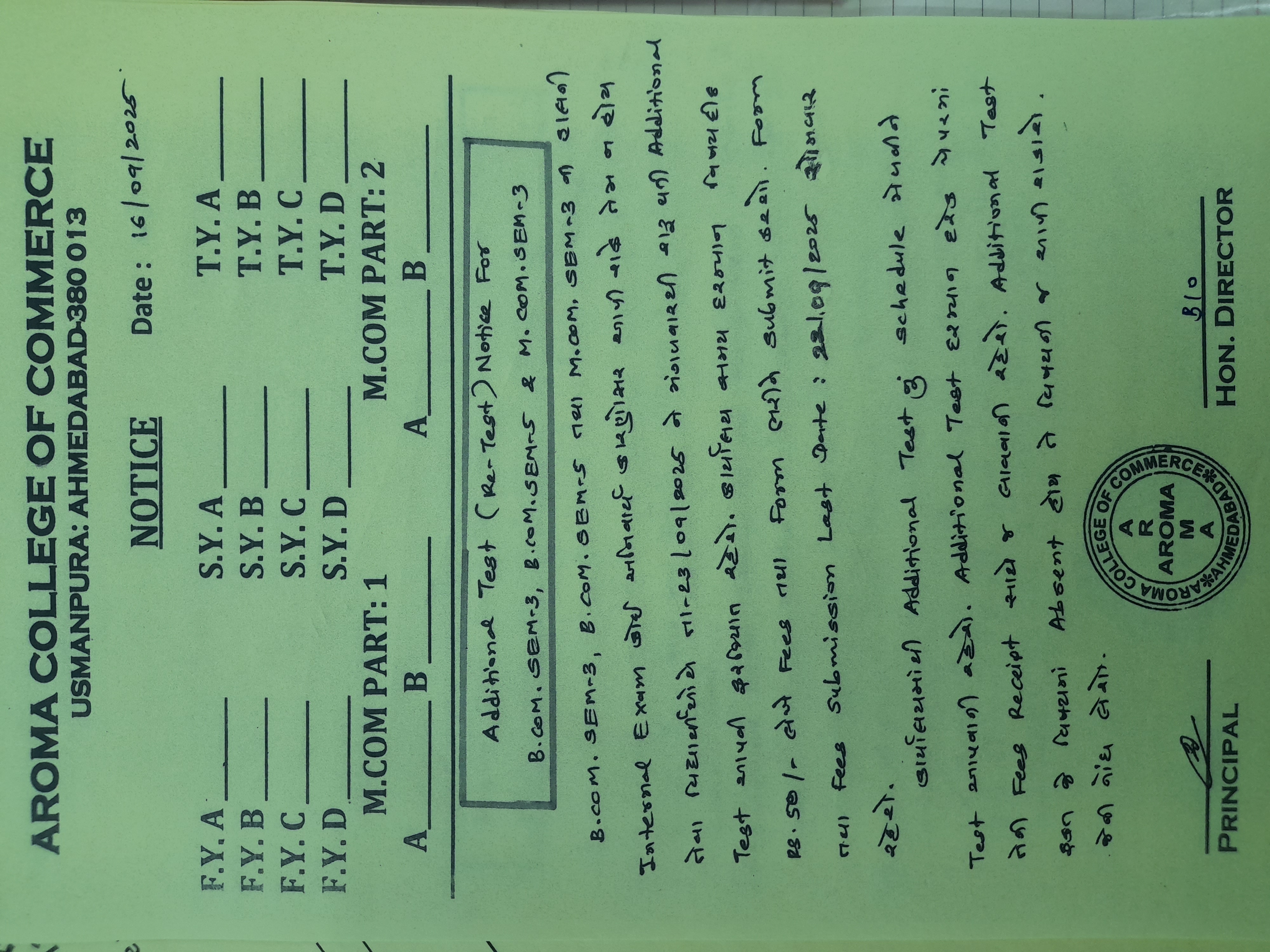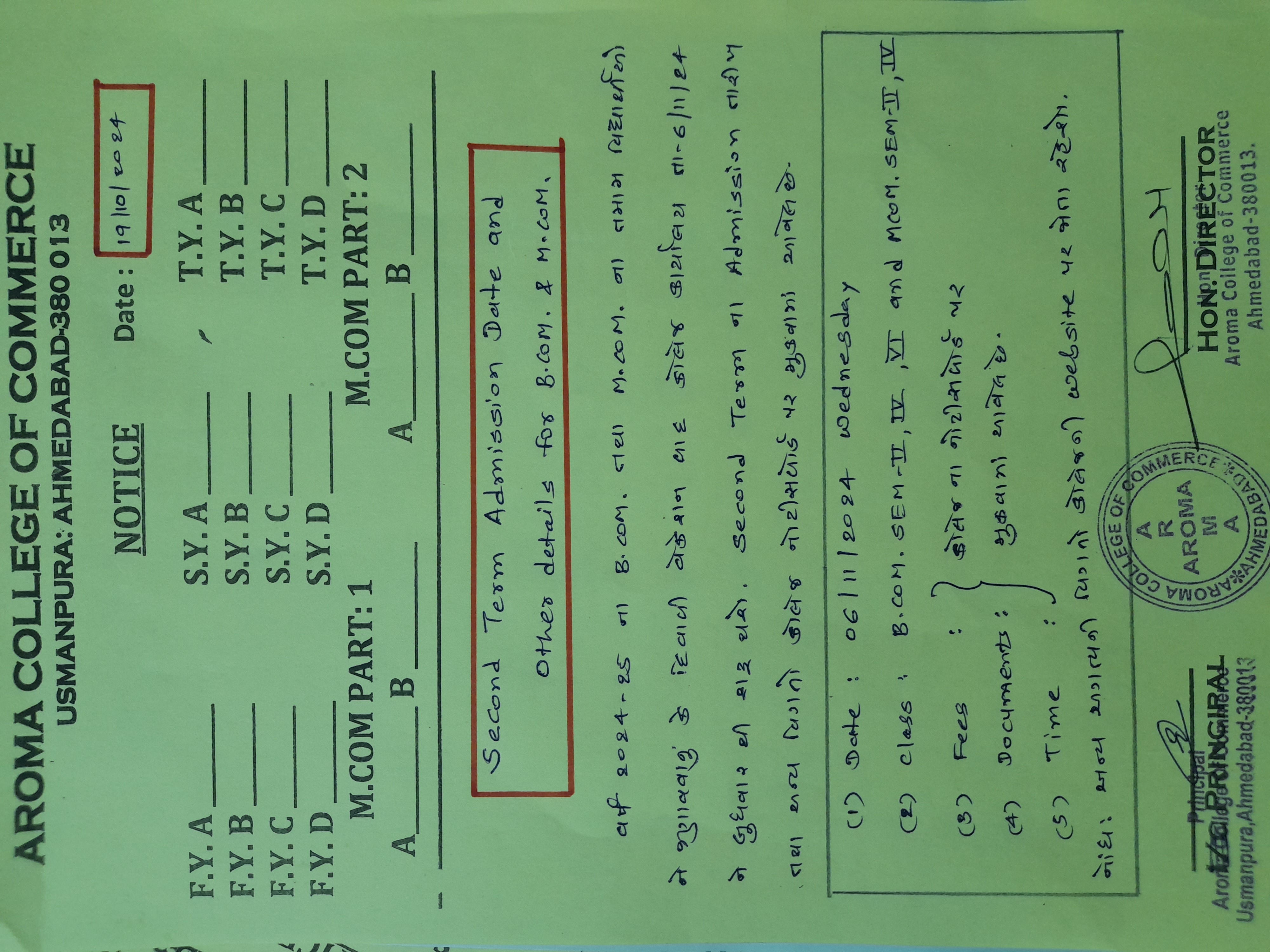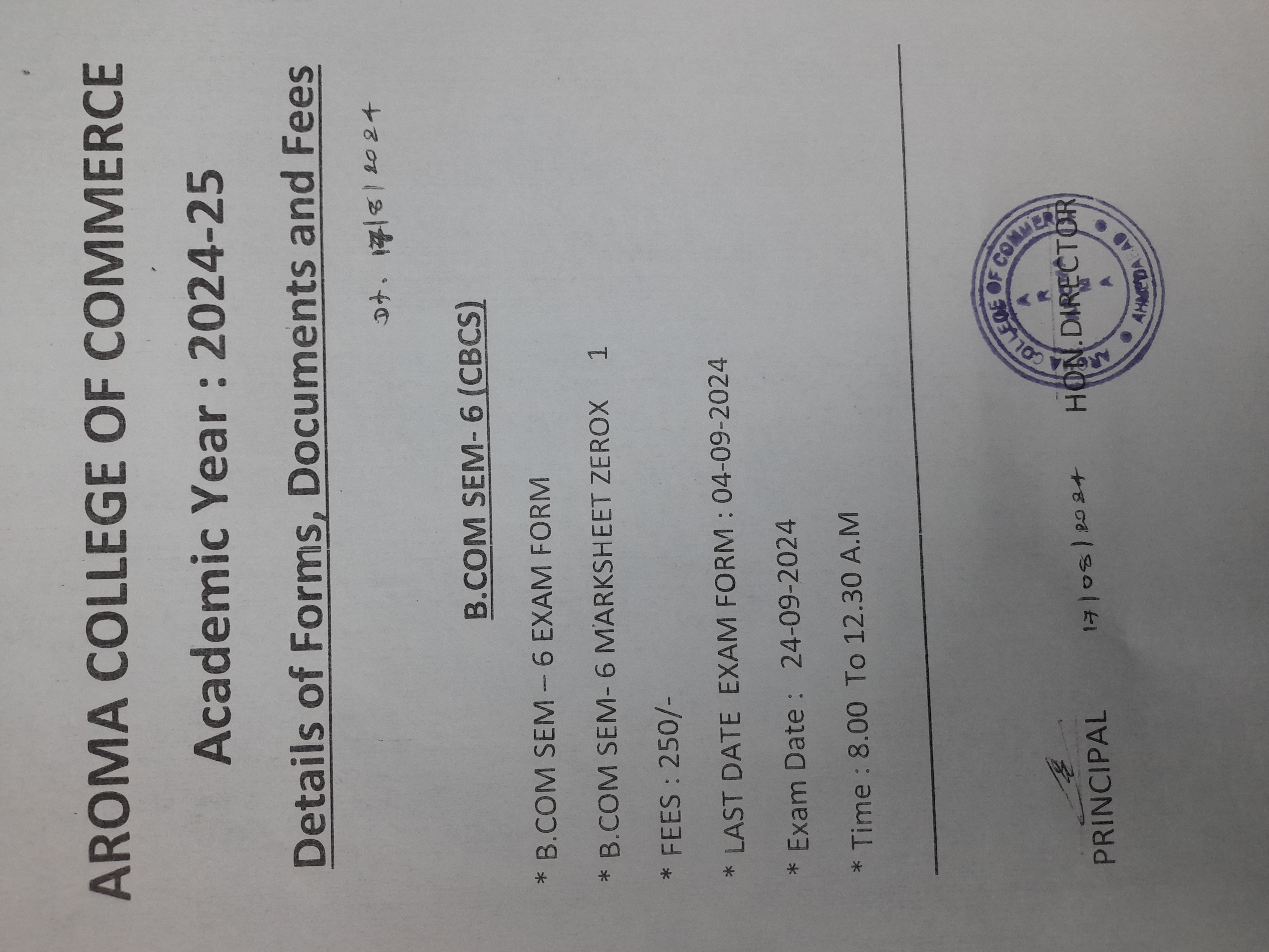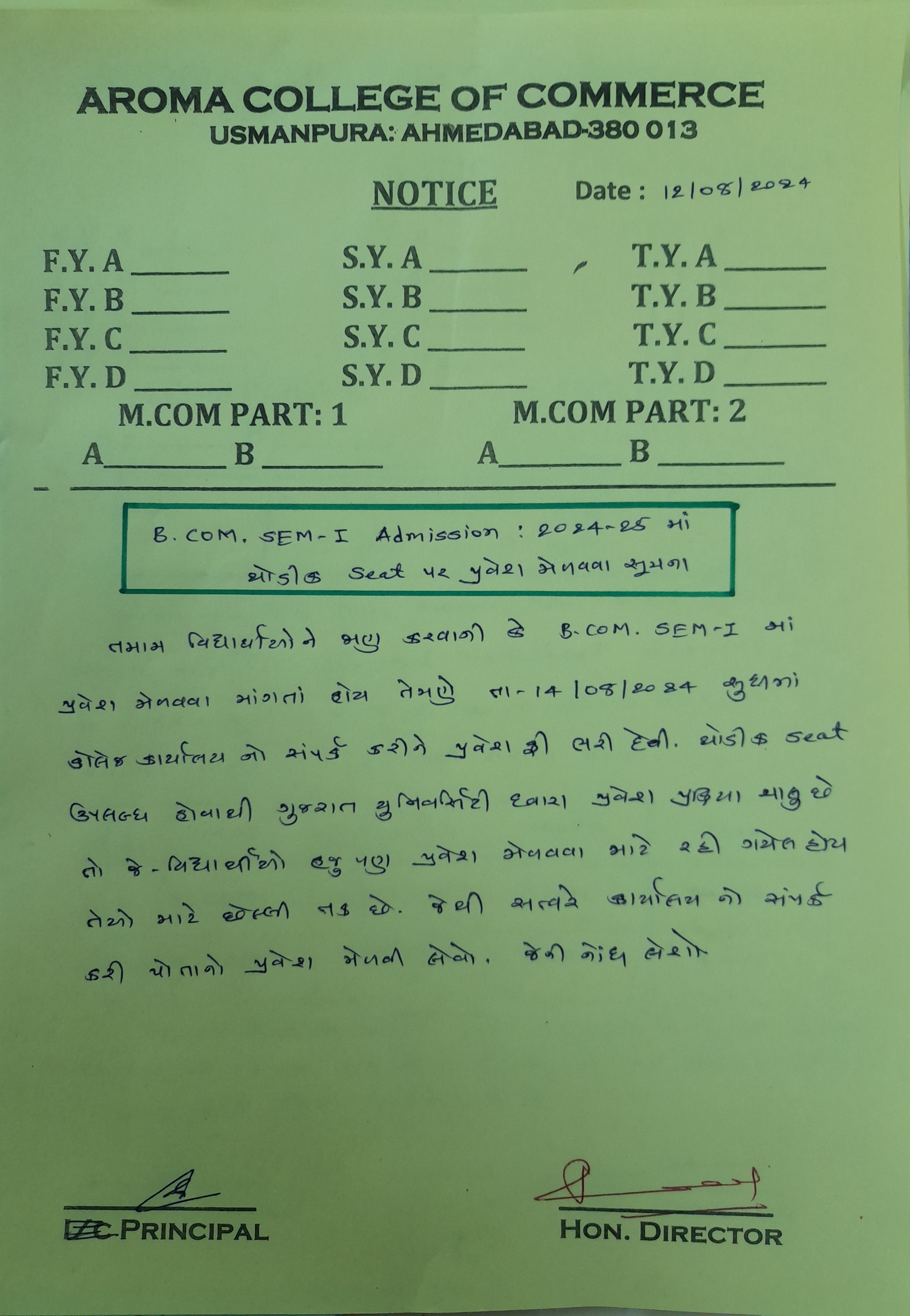 Important Notice: Last date for Admissions Forms and Term Fees with late fees for B.COM.SEM-3 ,B.COM SEM-5 and M.COM SEM-3 will be 02/09/2025 and Considered for Internal Exam starting from 15/09/2025.