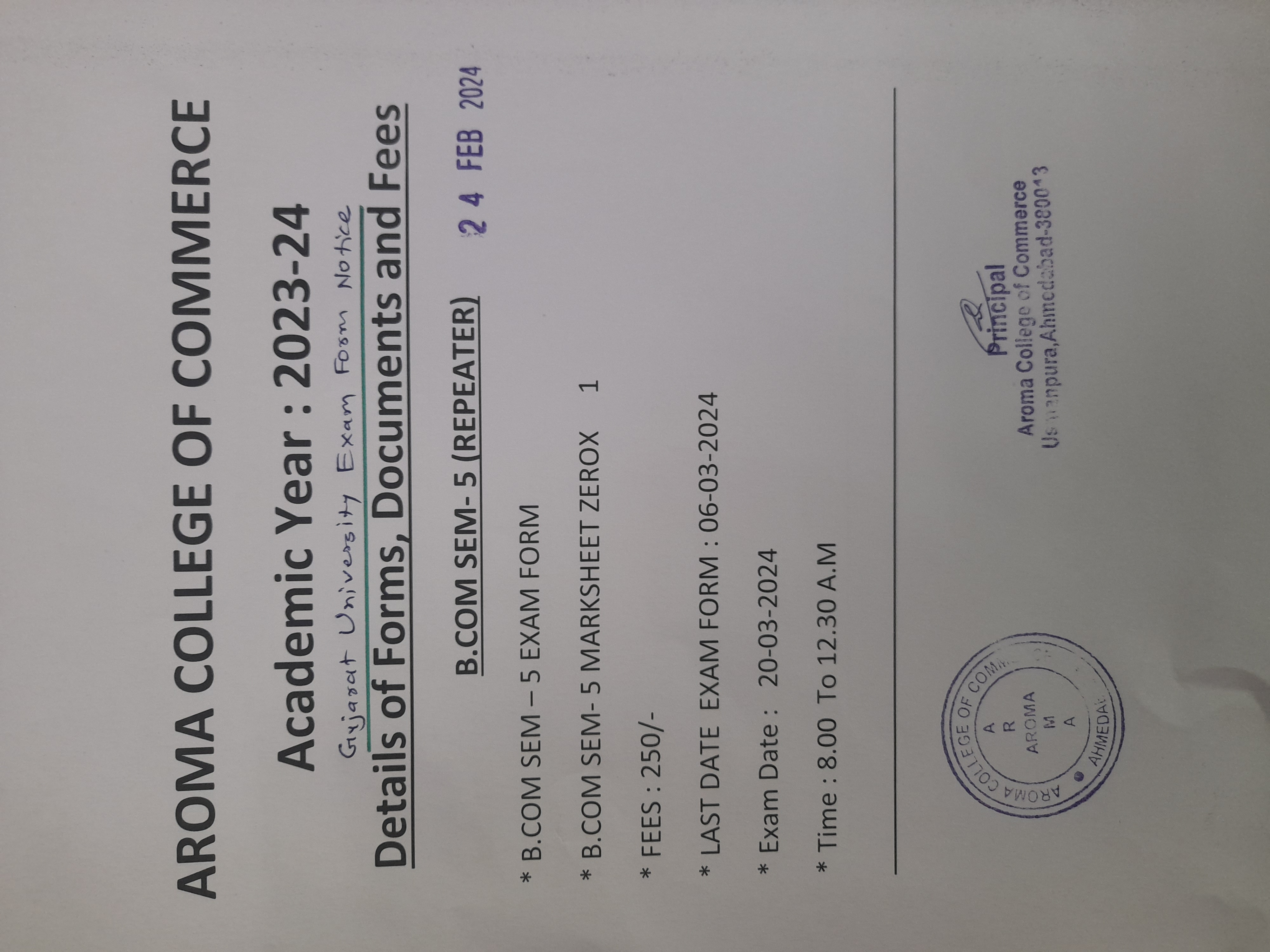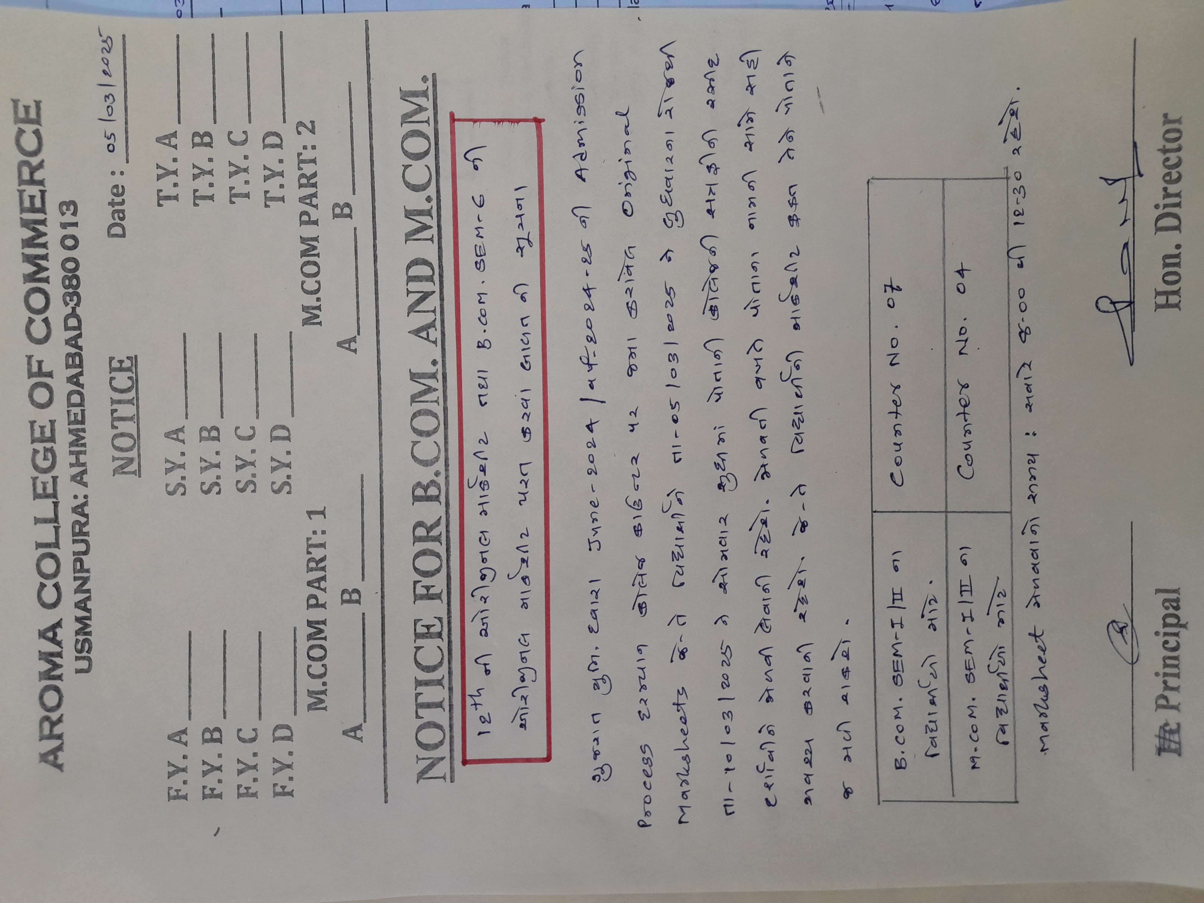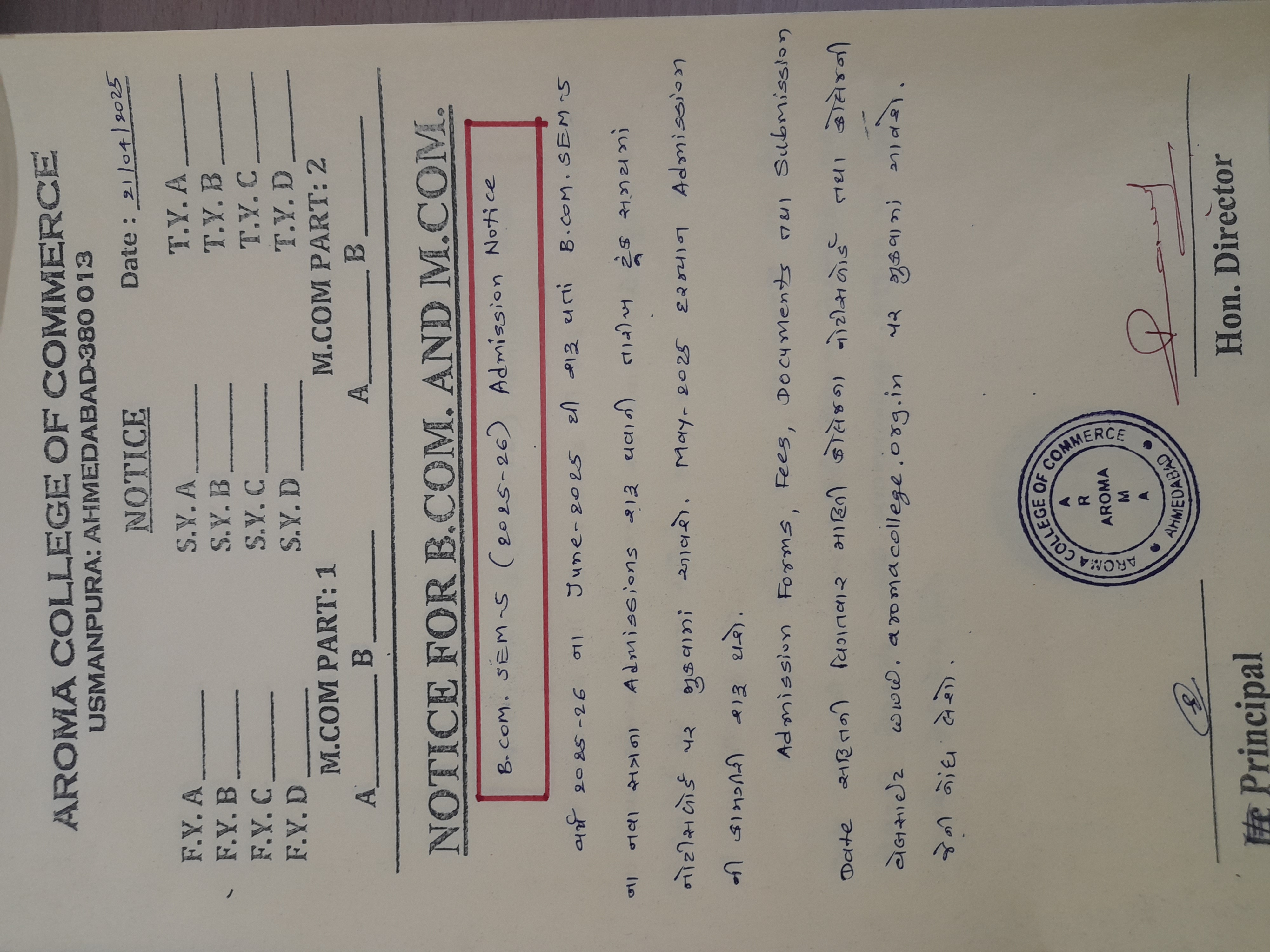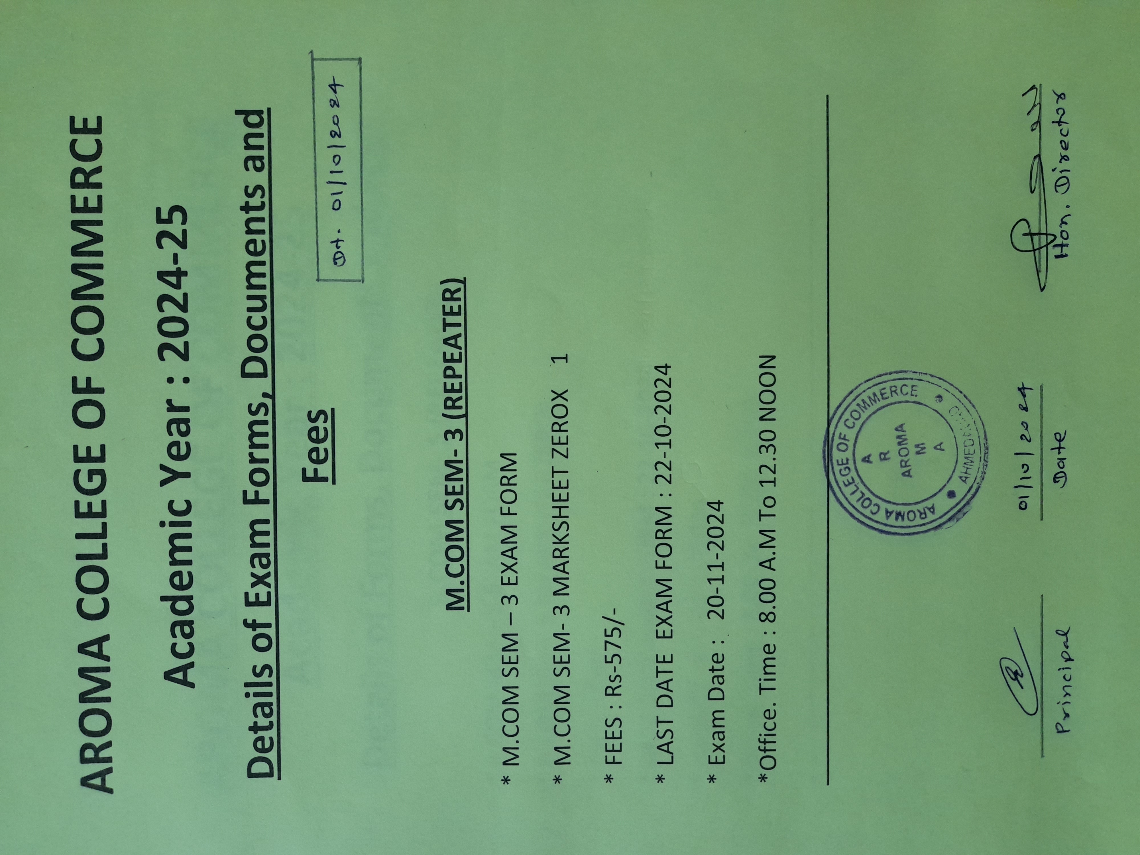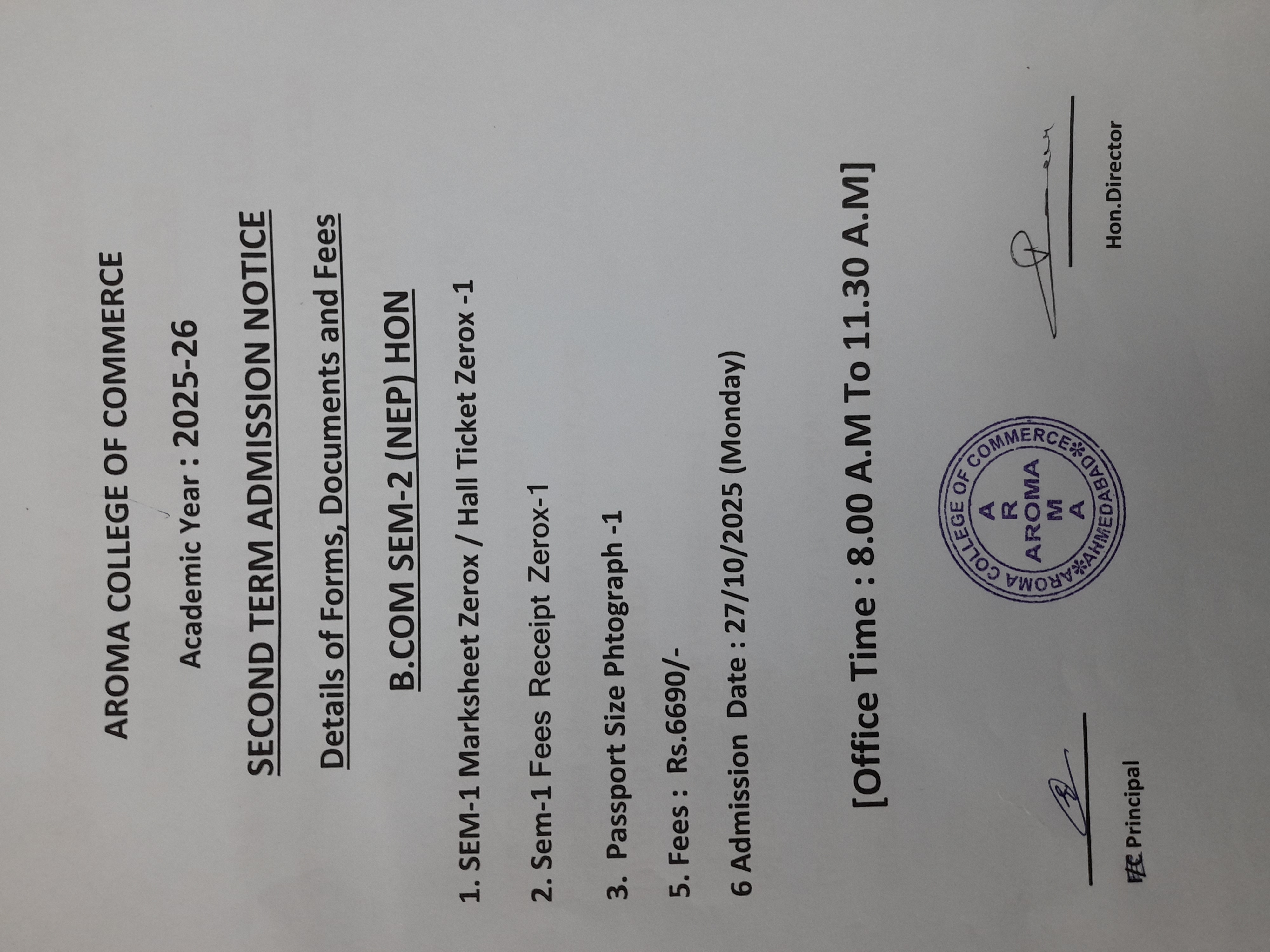 Important Notice: Last date for Admissions Forms and Term Fees with late fees for B.COM.SEM-3 ,B.COM SEM-5 and M.COM SEM-3 will be 02/09/2025 and Considered for Internal Exam starting from 15/09/2025.