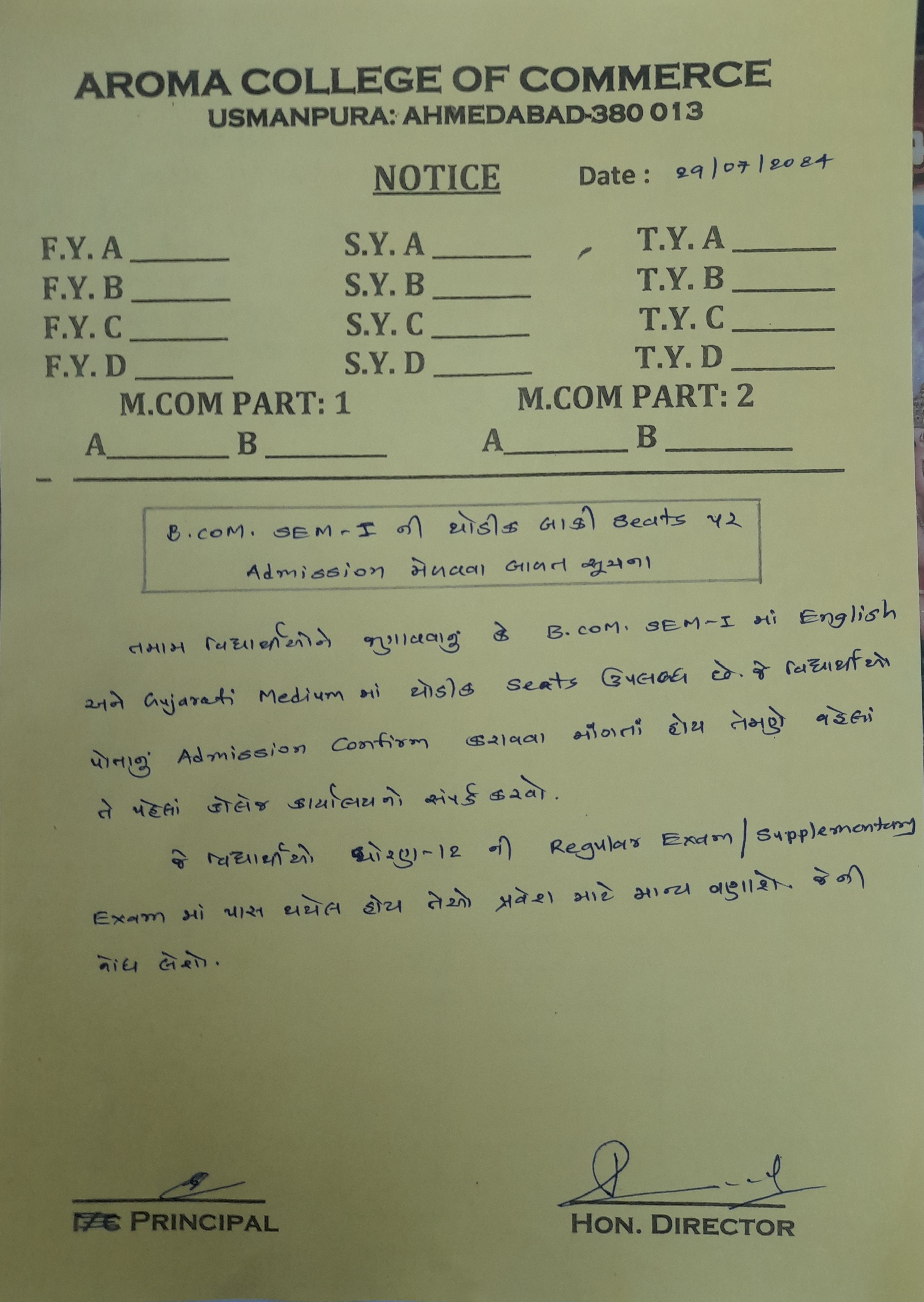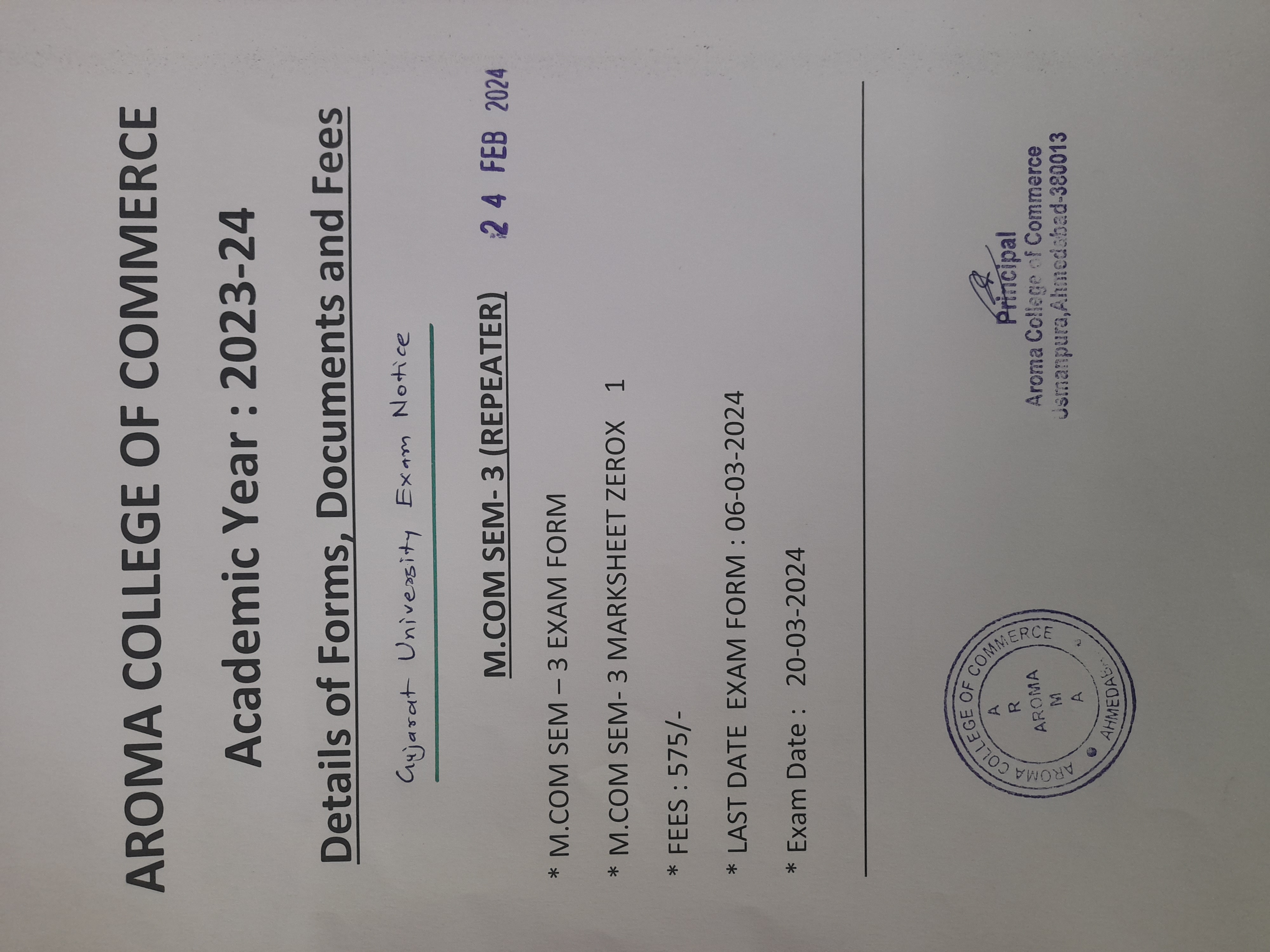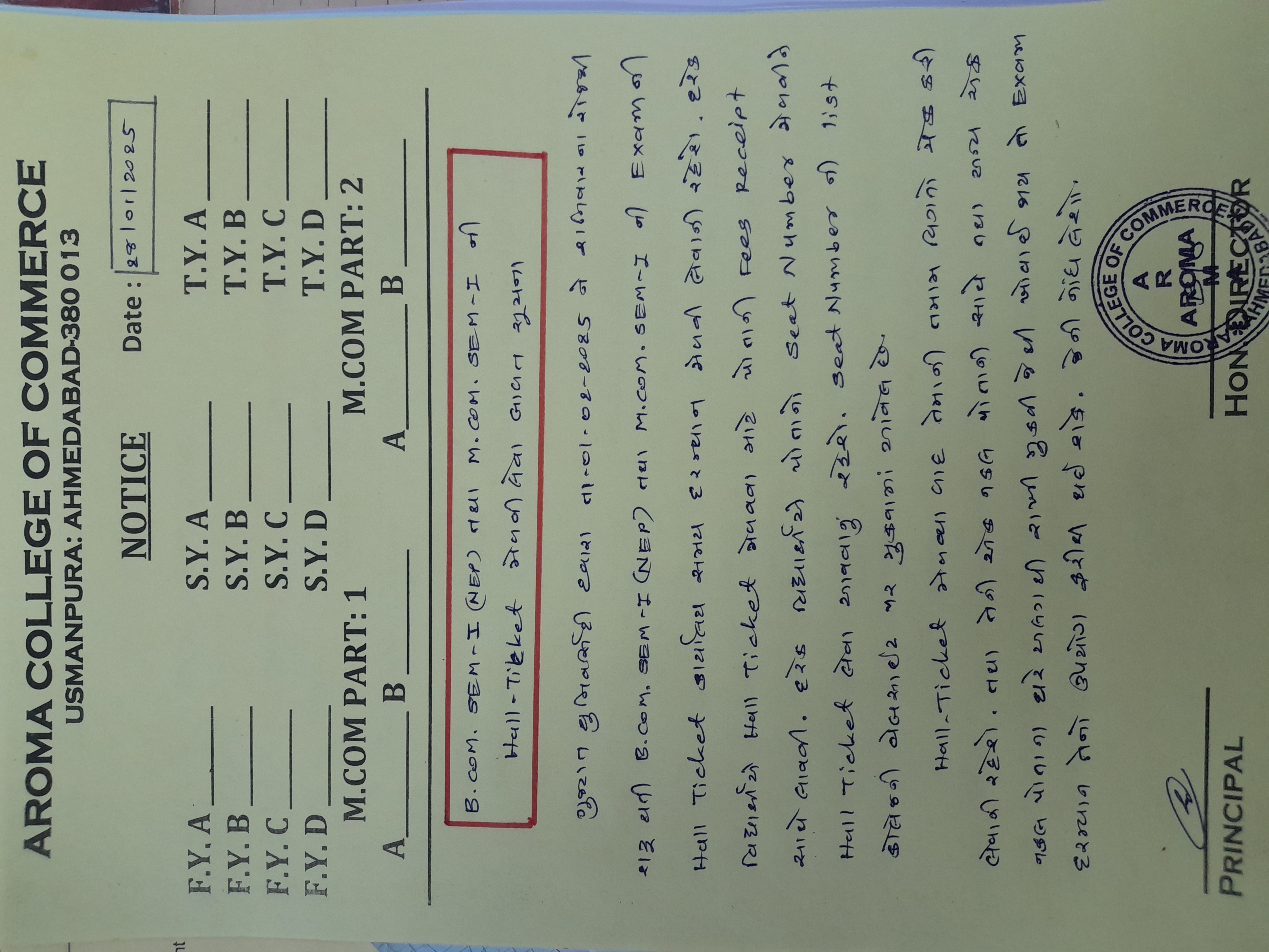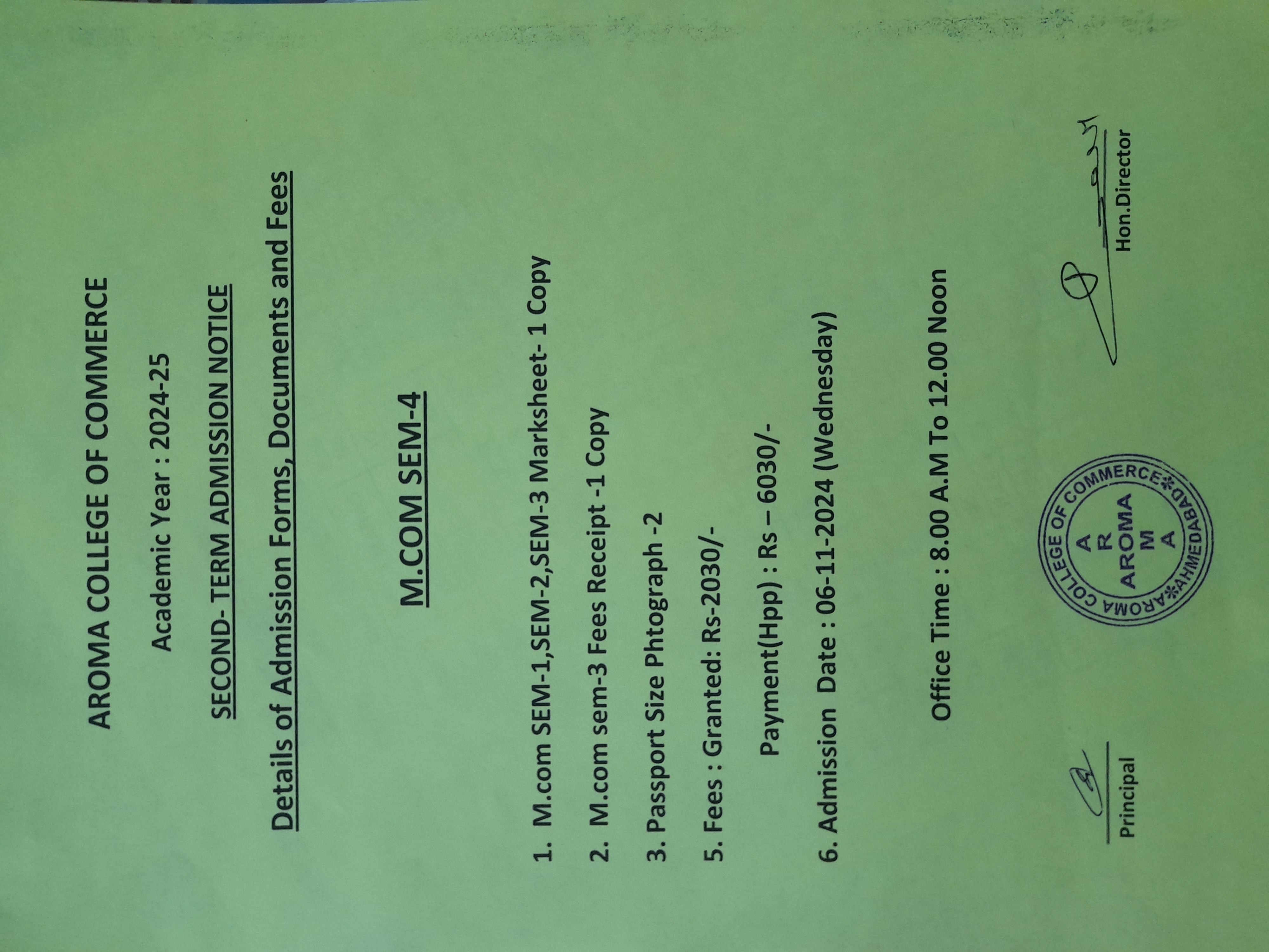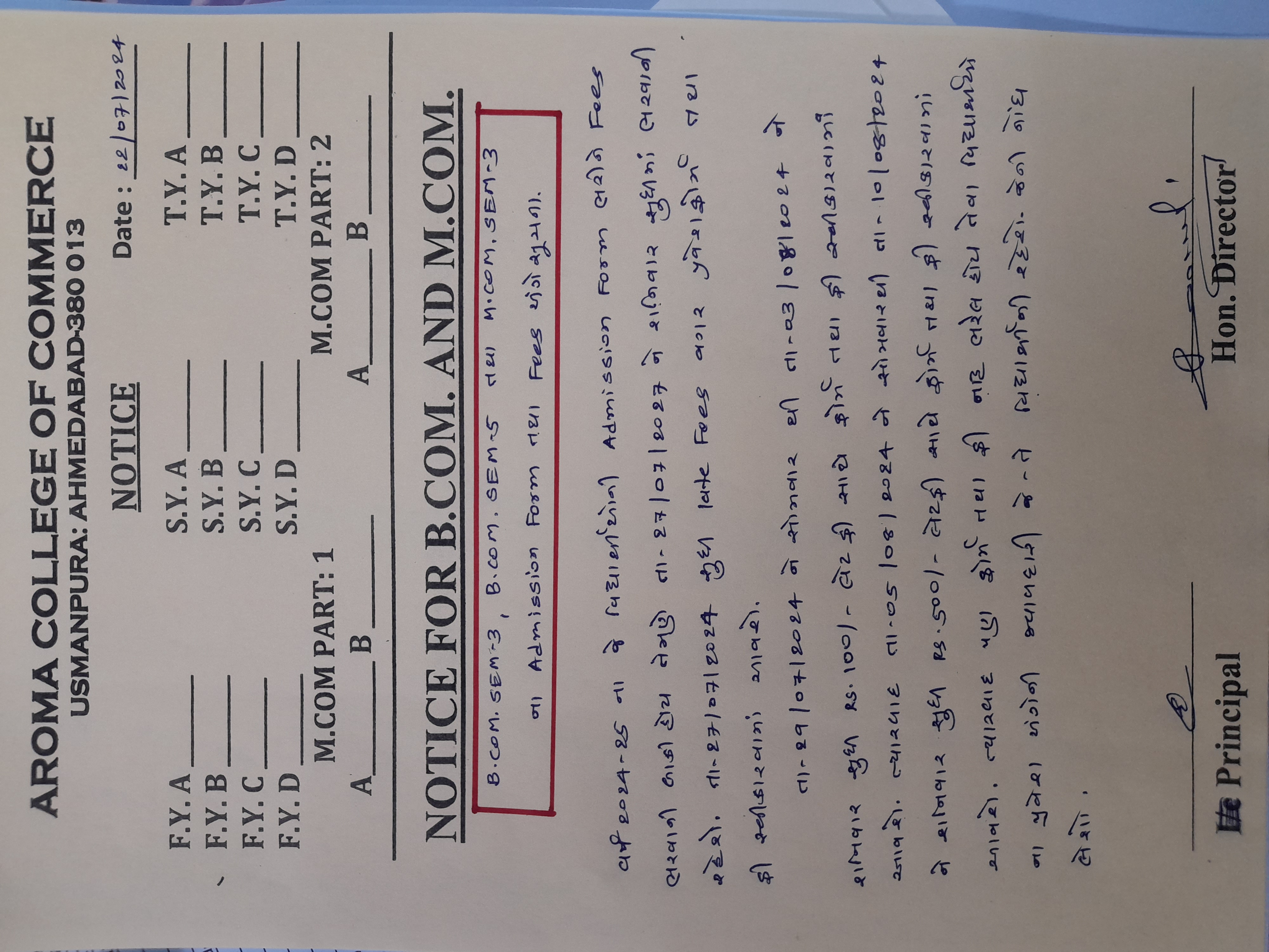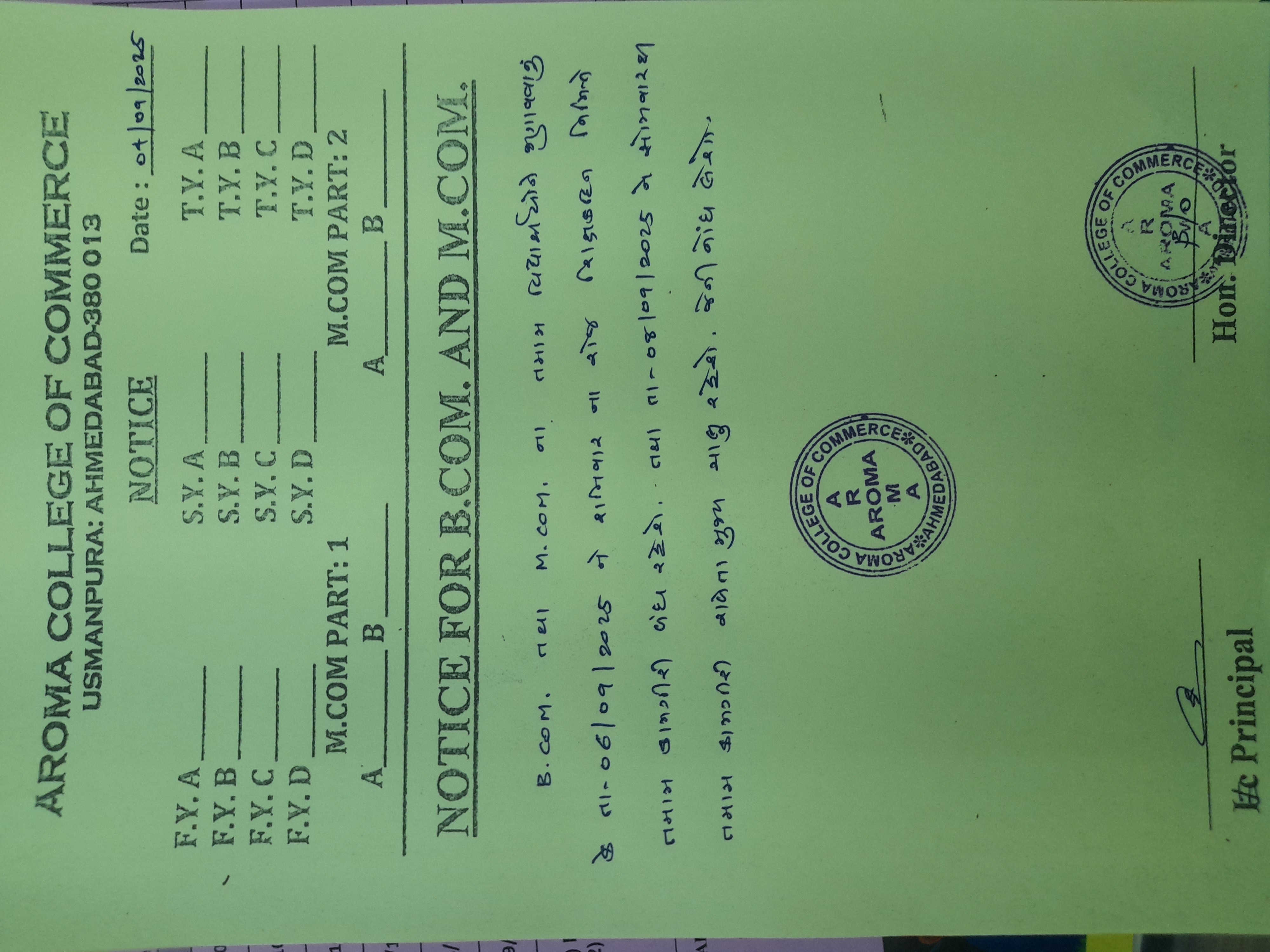 Important Notice: Last date for Admissions Forms and Term Fees with late fees for B.COM.SEM-3 ,B.COM SEM-5 and M.COM SEM-3 will be 02/09/2025 and Considered for Internal Exam starting from 15/09/2025.