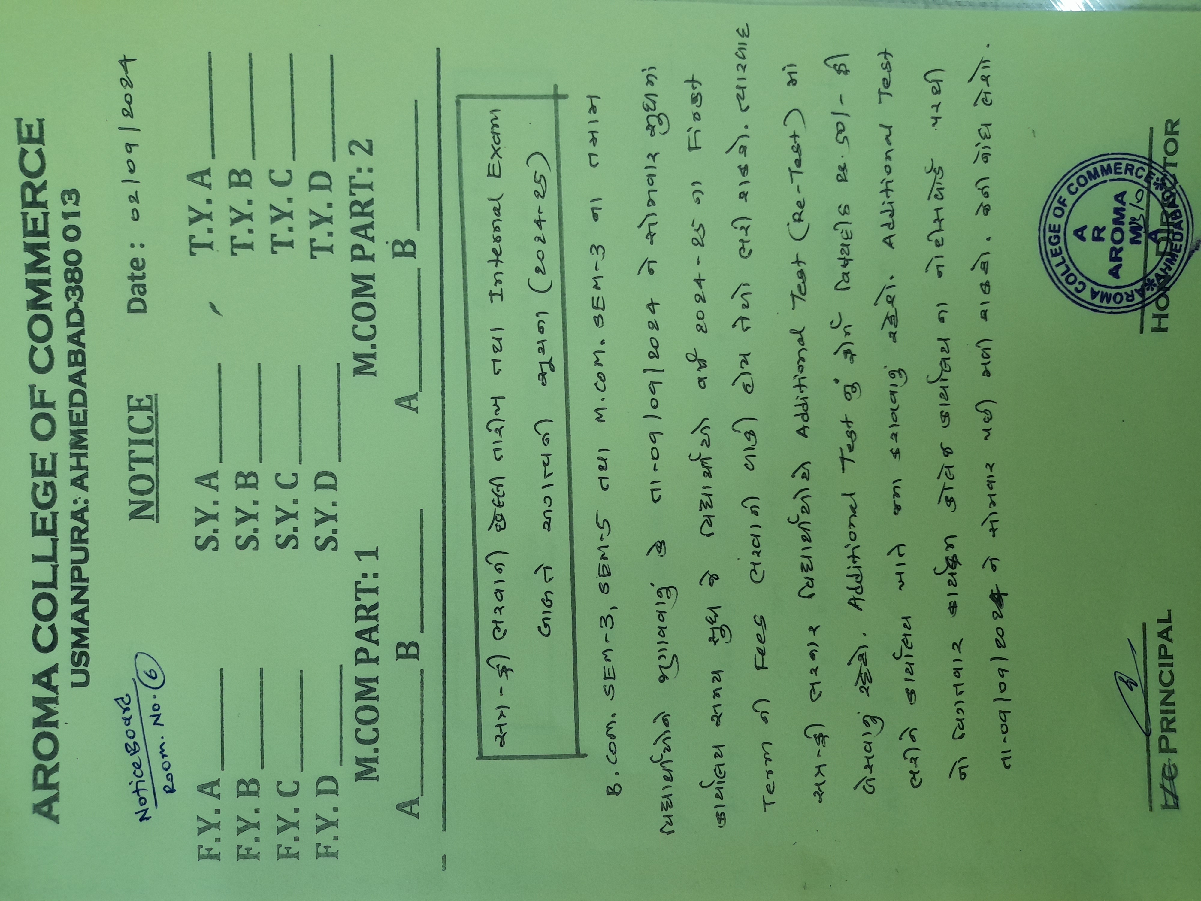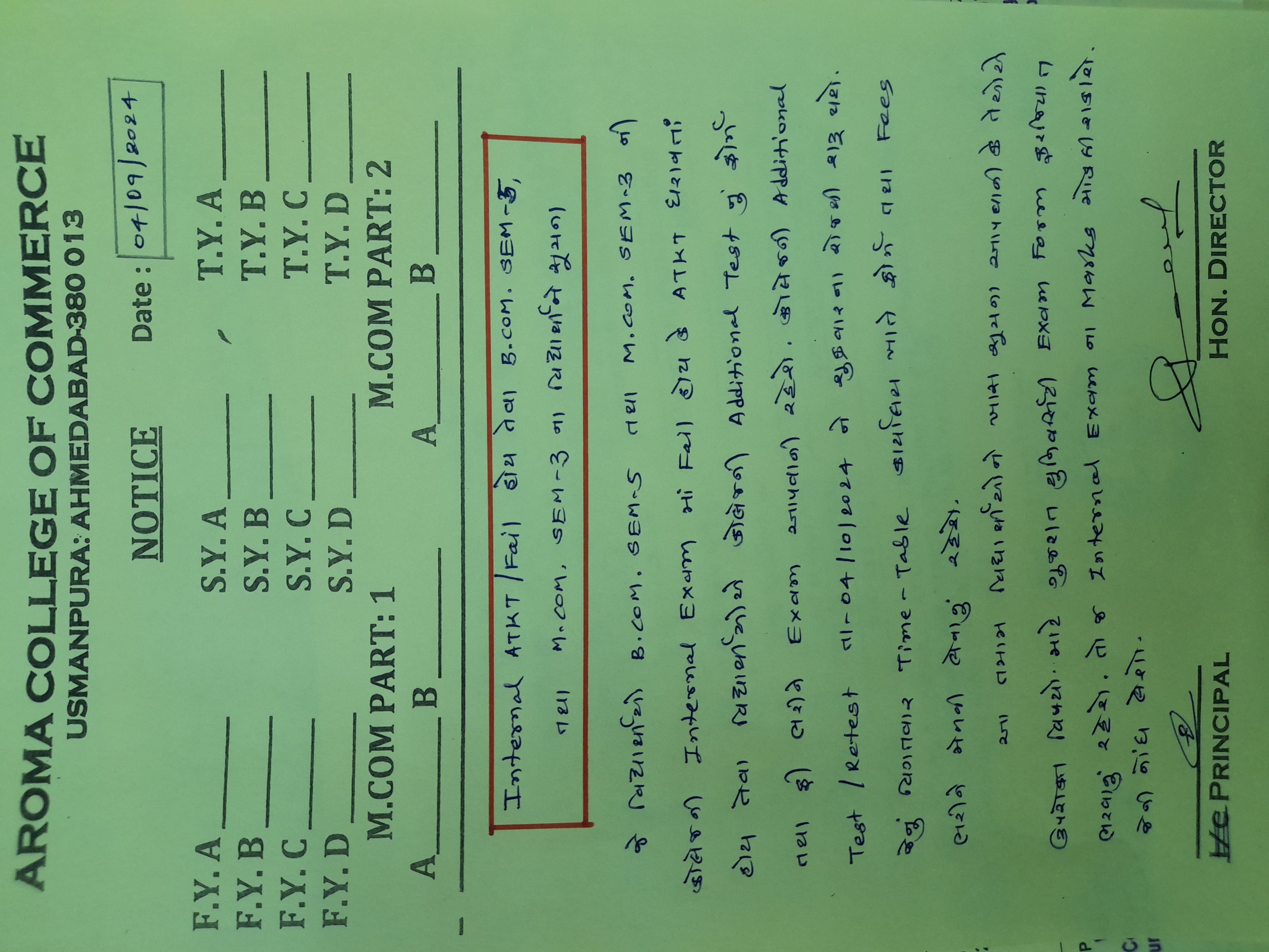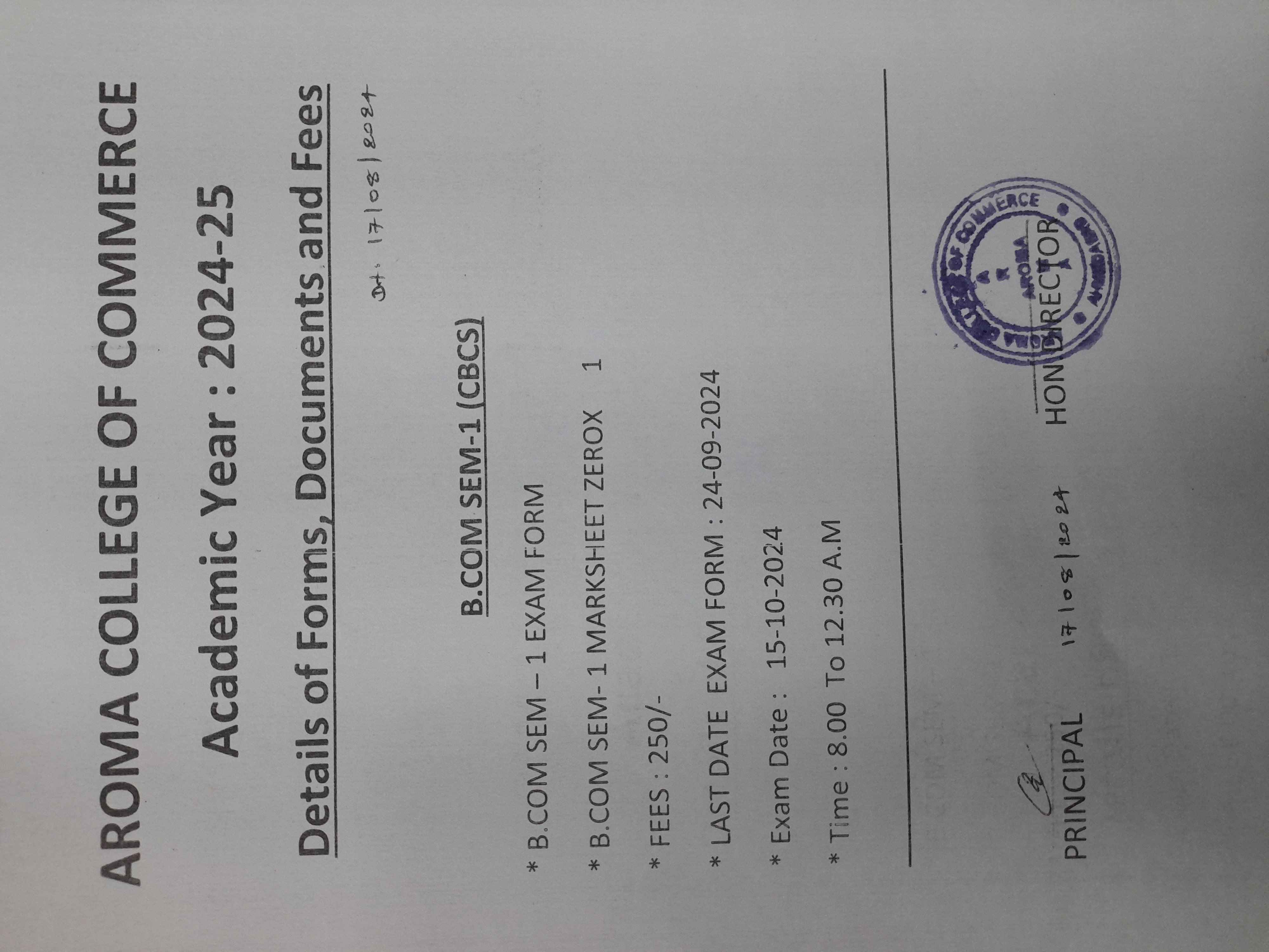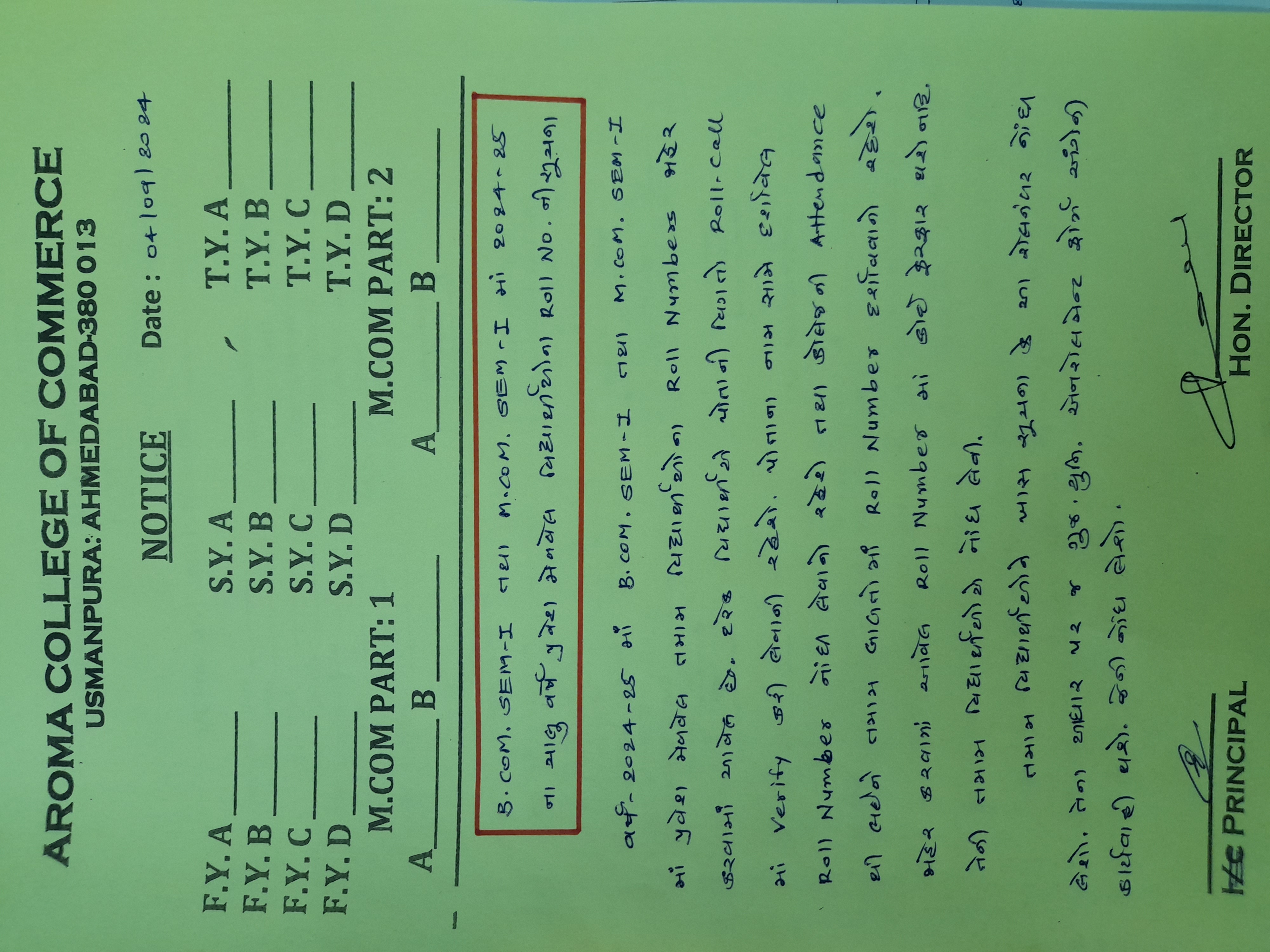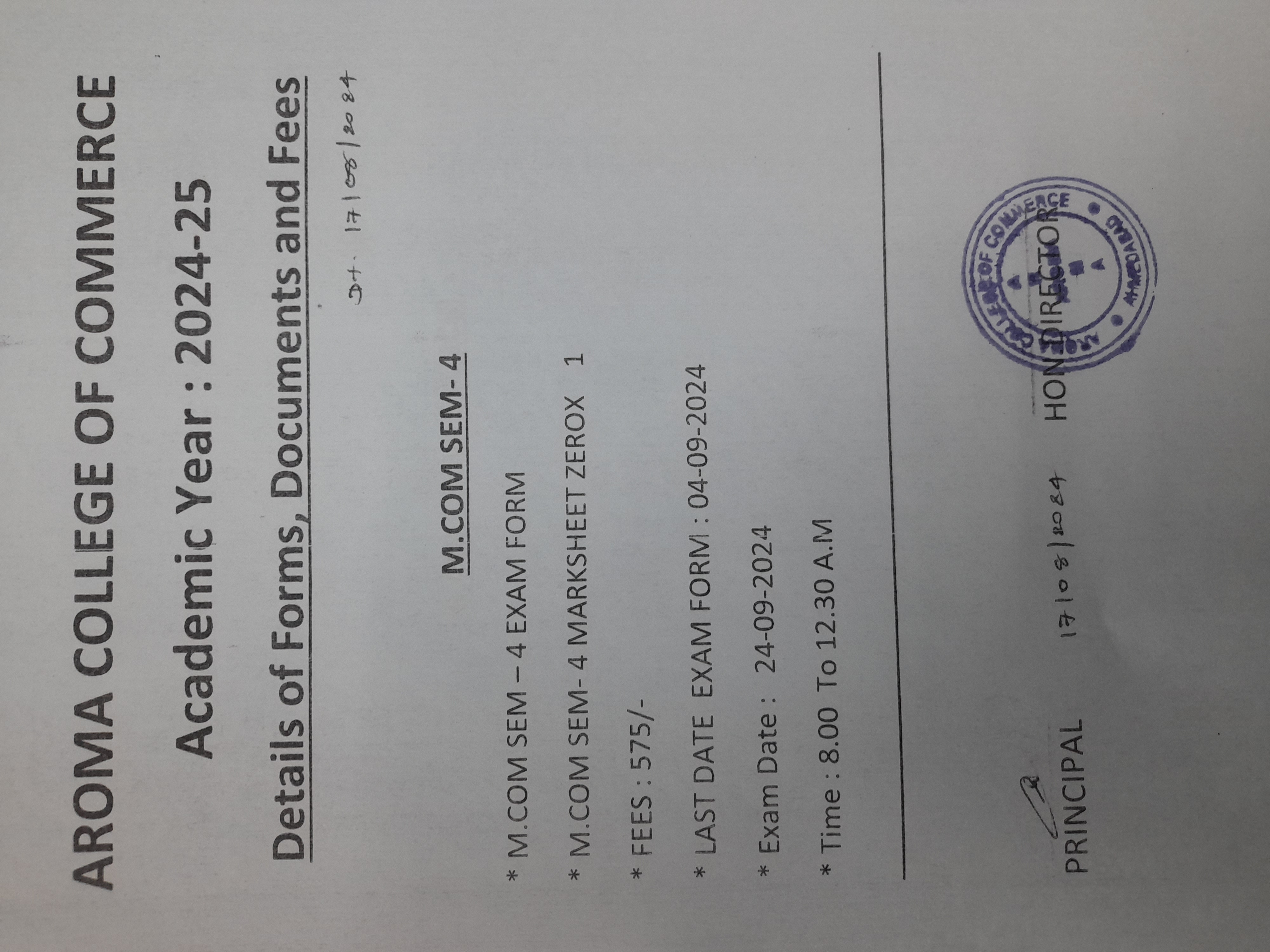 Important Notice: Last date for Admissions Forms and Term Fees with late fees for B.COM.SEM-3 ,B.COM SEM-5 and M.COM SEM-3 will be 02/09/2025 and Considered for Internal Exam starting from 15/09/2025.