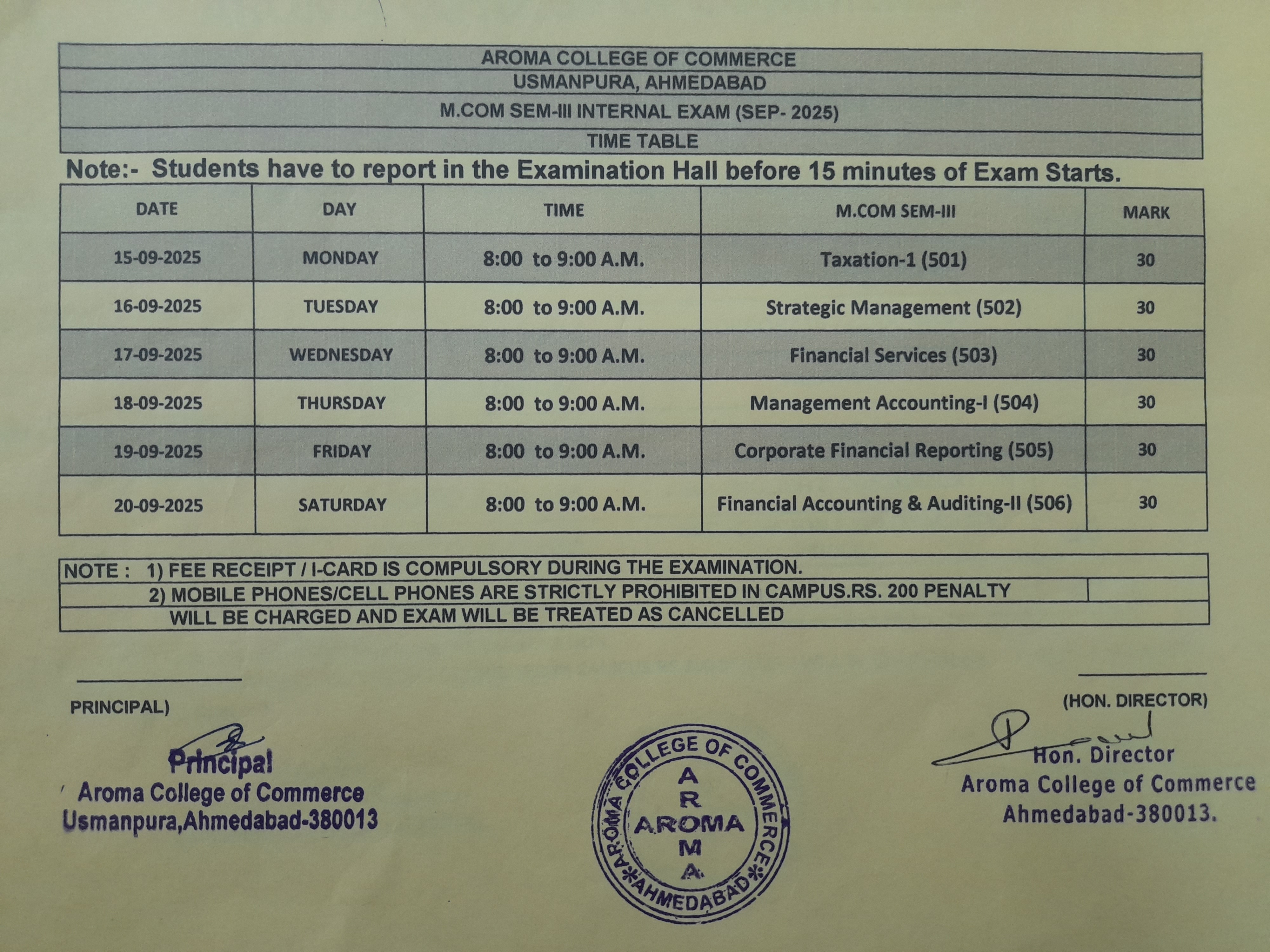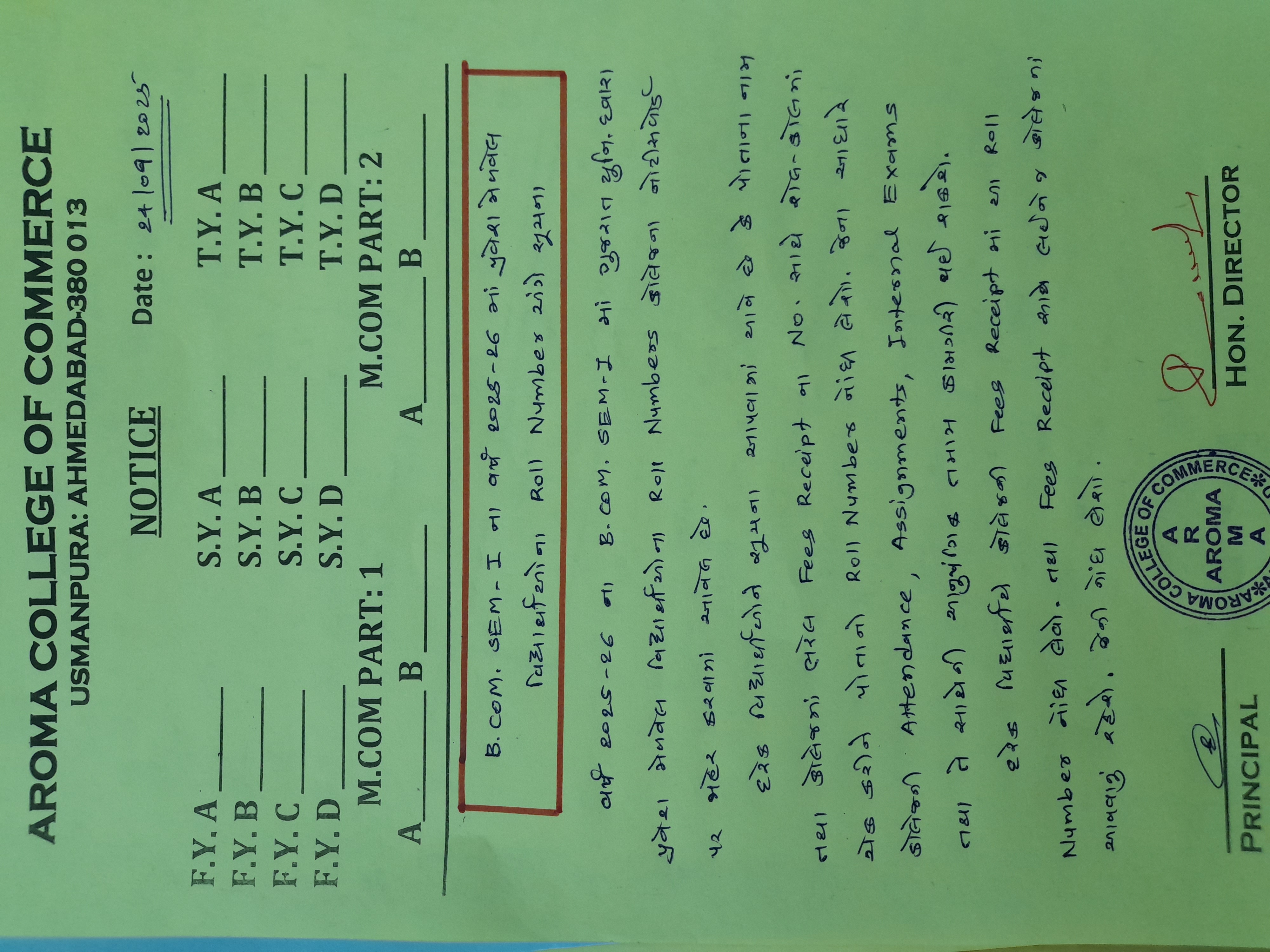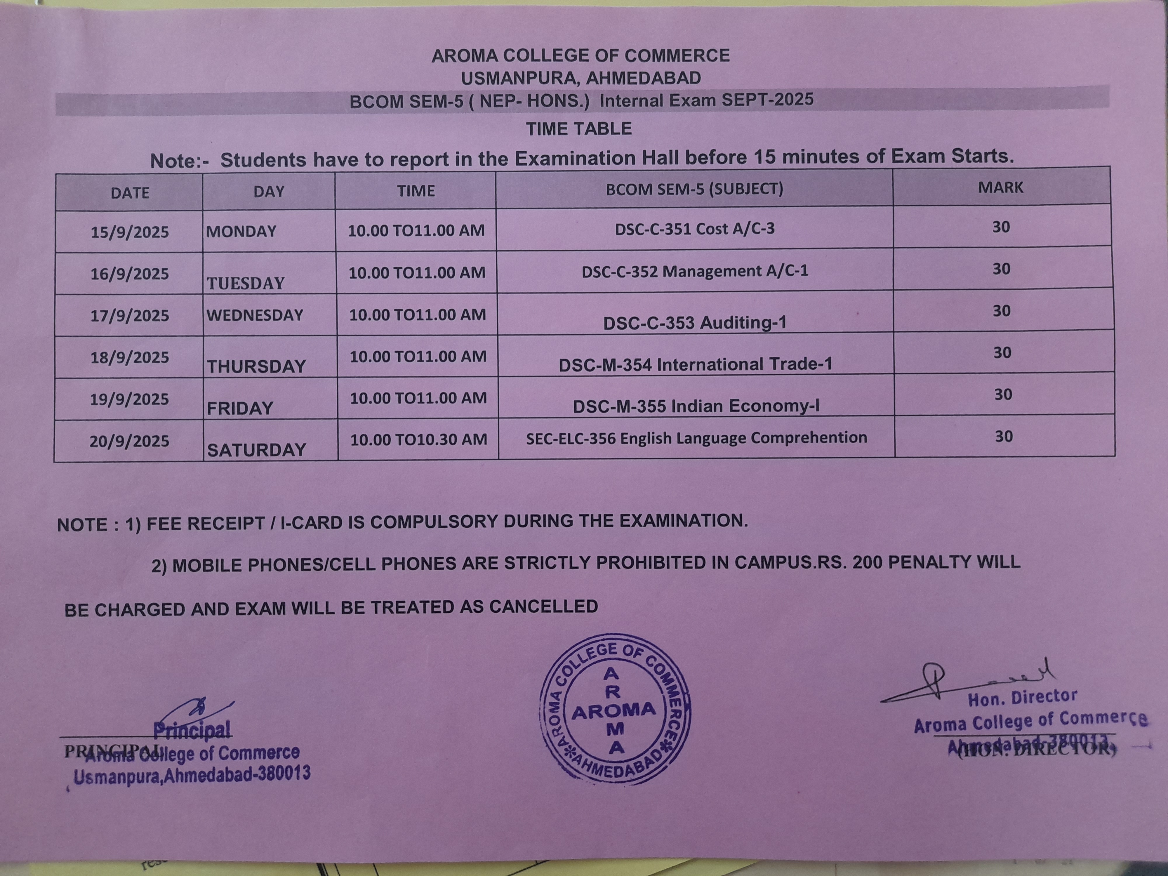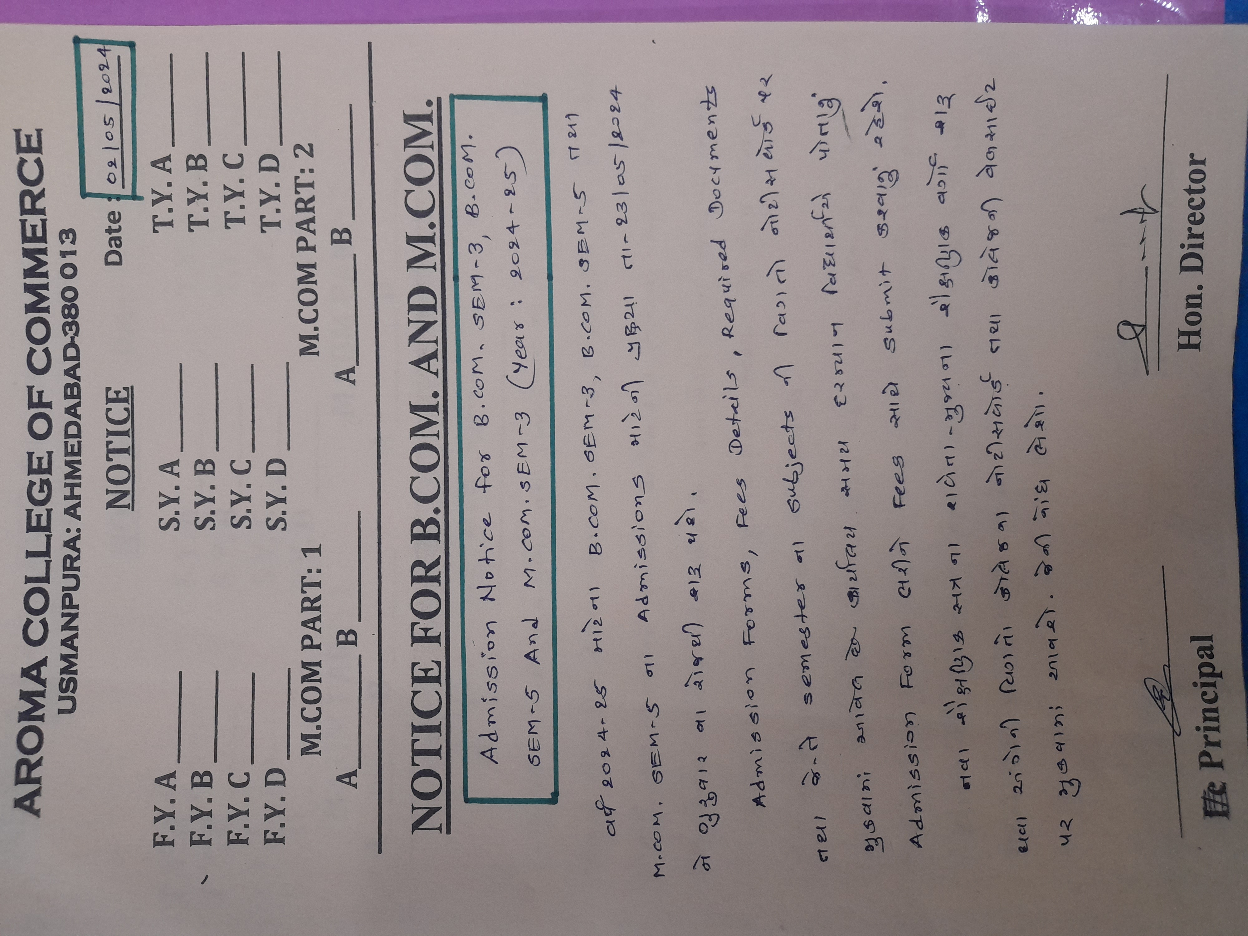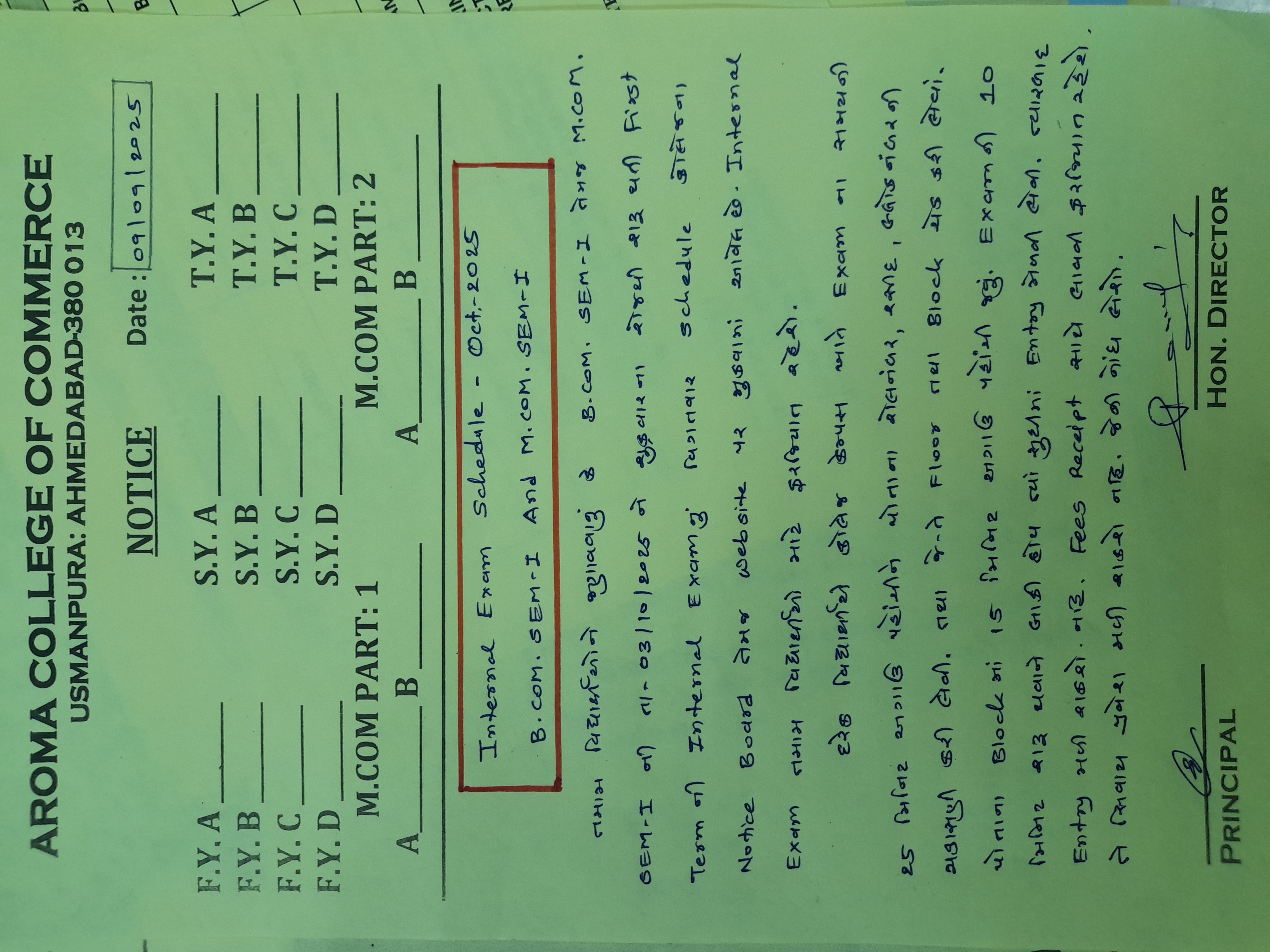 Important Notice: Last date for Admissions Forms and Term Fees with late fees for B.COM.SEM-3 ,B.COM SEM-5 and M.COM SEM-3 will be 02/09/2025 and Considered for Internal Exam starting from 15/09/2025.