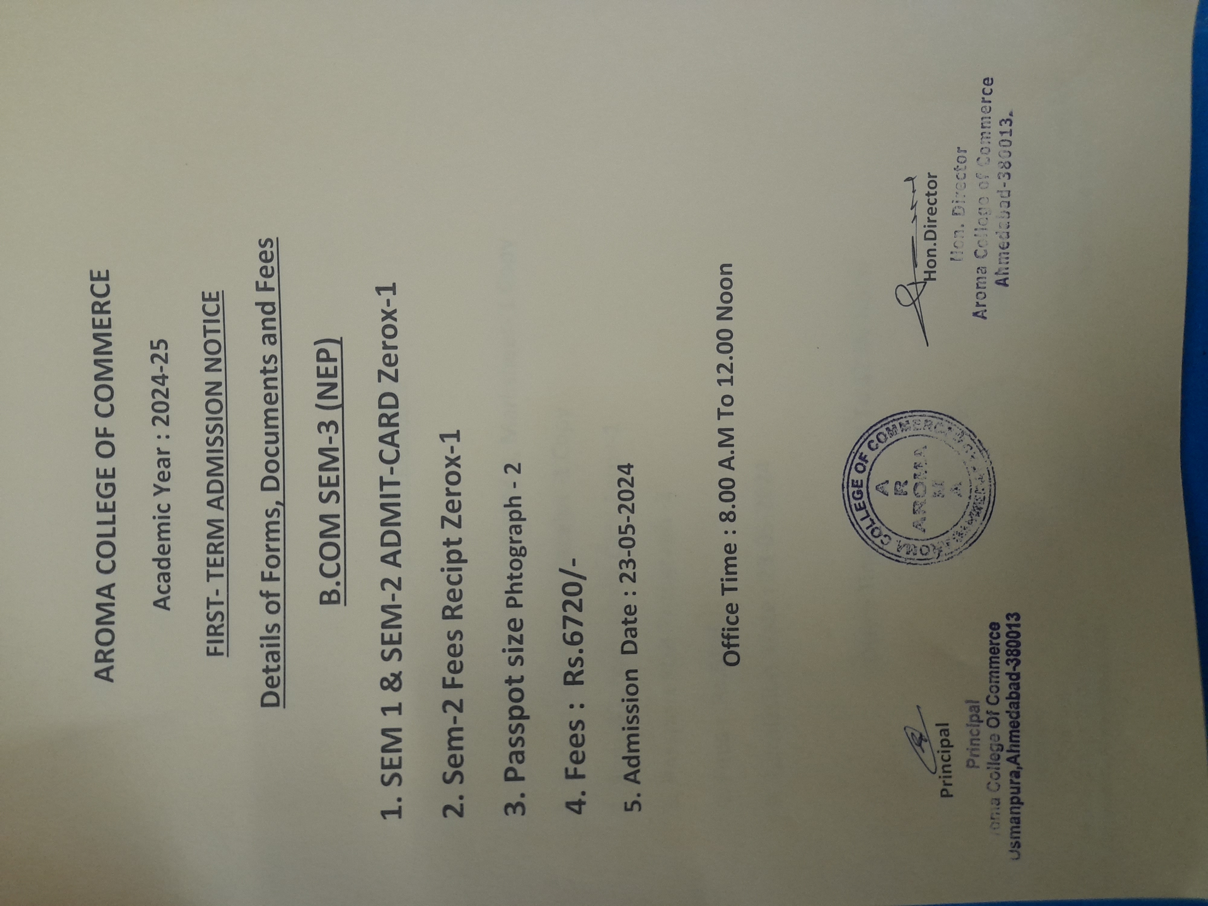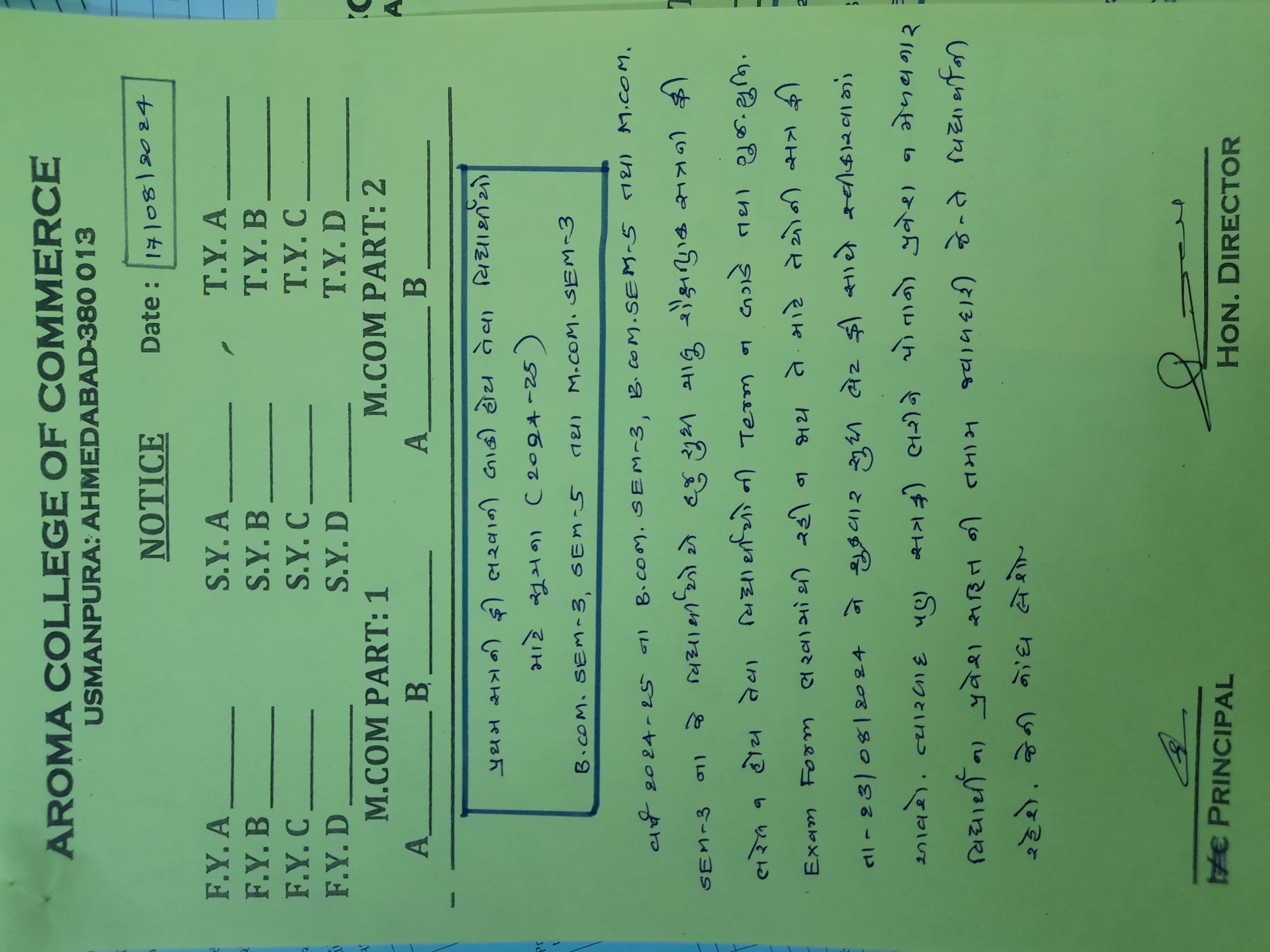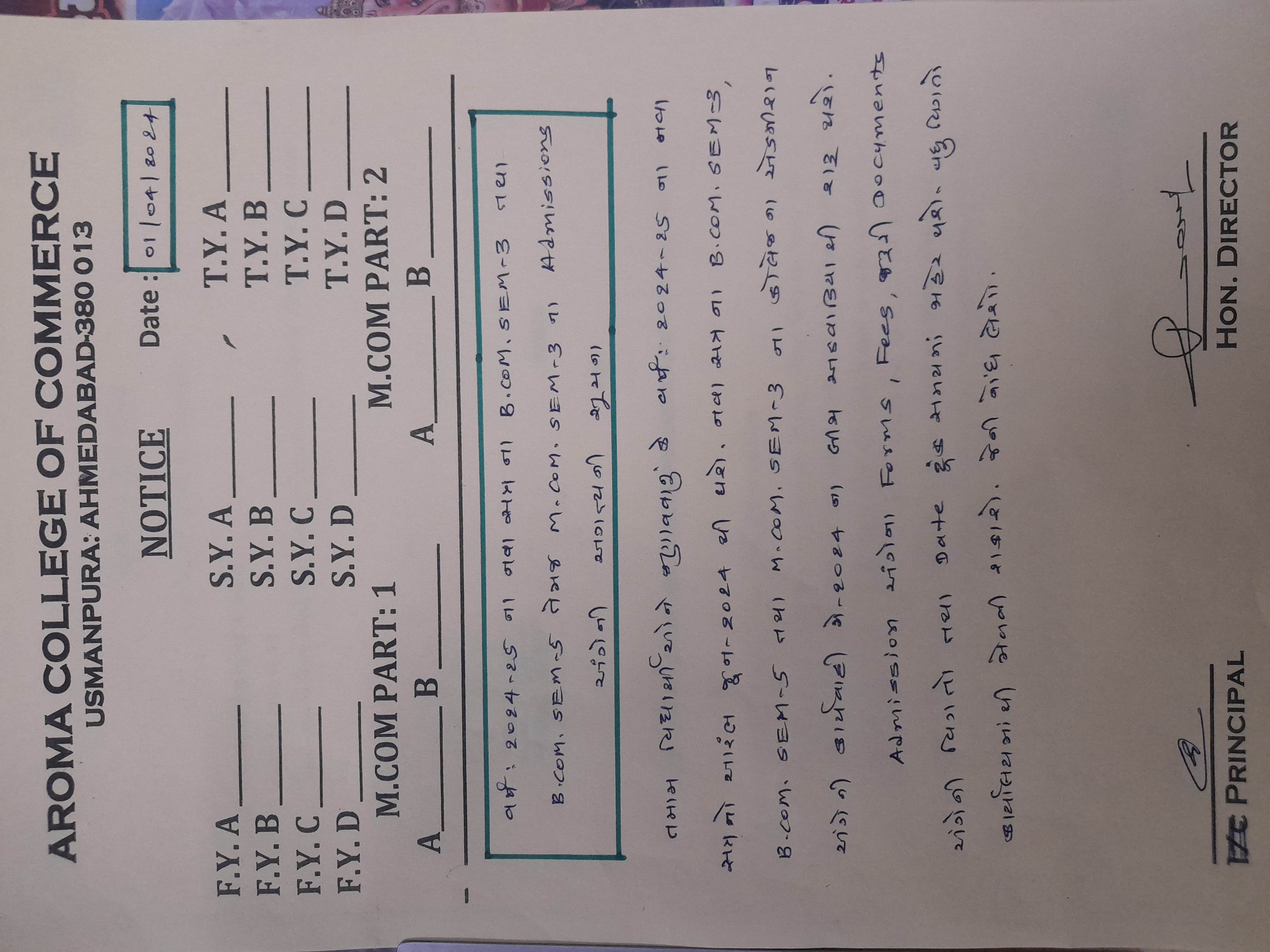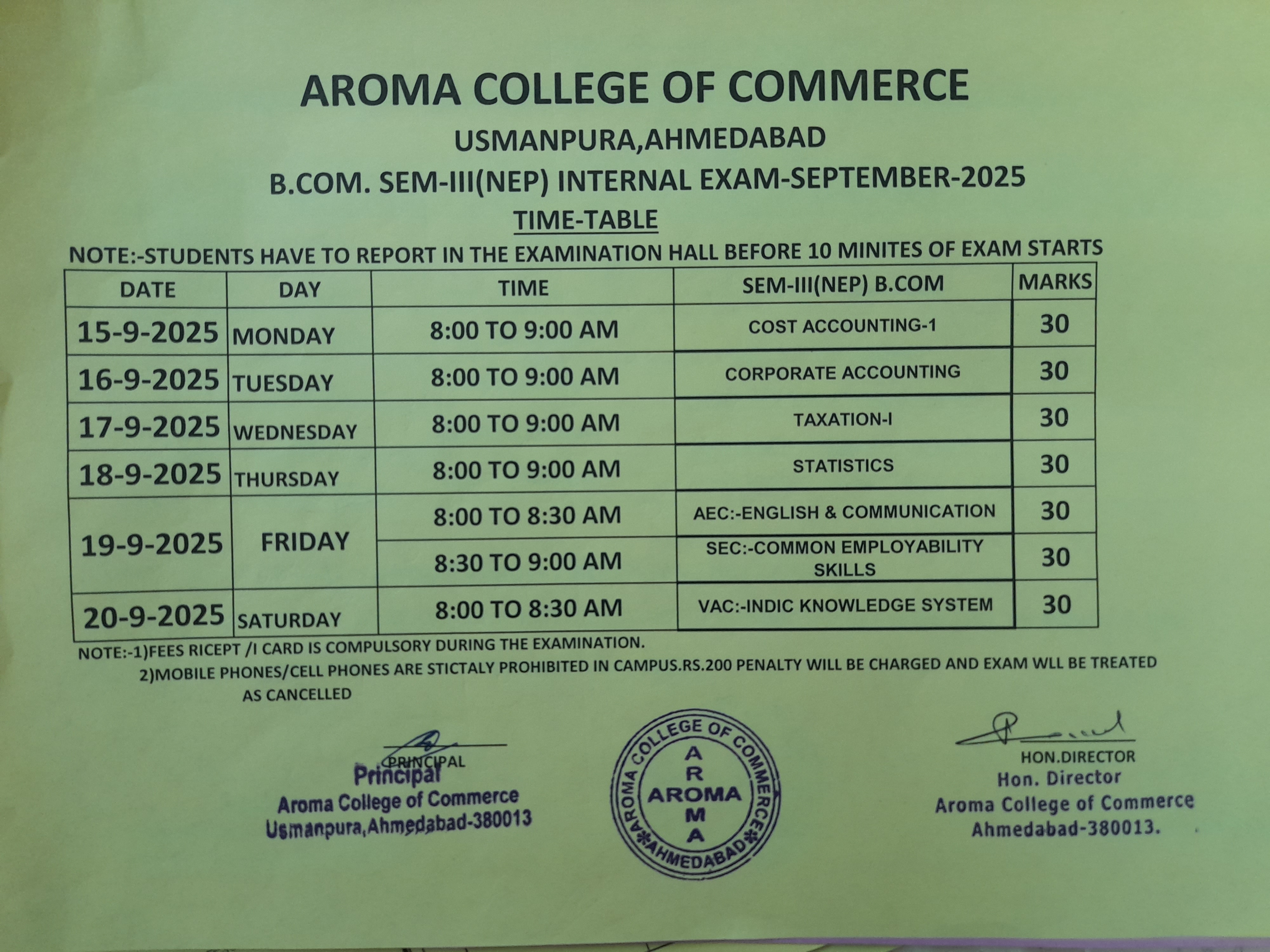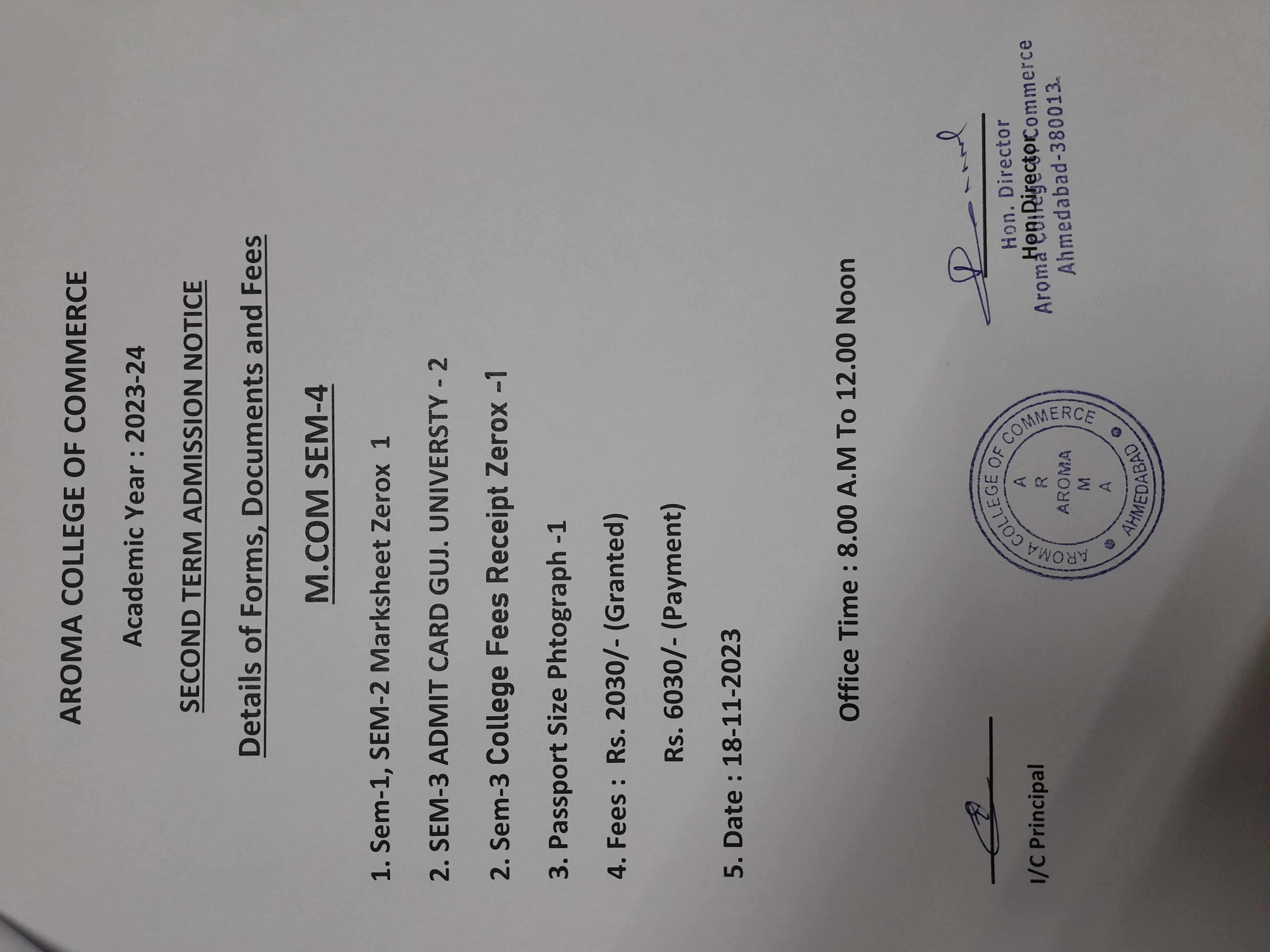 Important Notice: Last date for Admissions Forms and Term Fees with late fees for B.COM.SEM-3 ,B.COM SEM-5 and M.COM SEM-3 will be 02/09/2025 and Considered for Internal Exam starting from 15/09/2025.