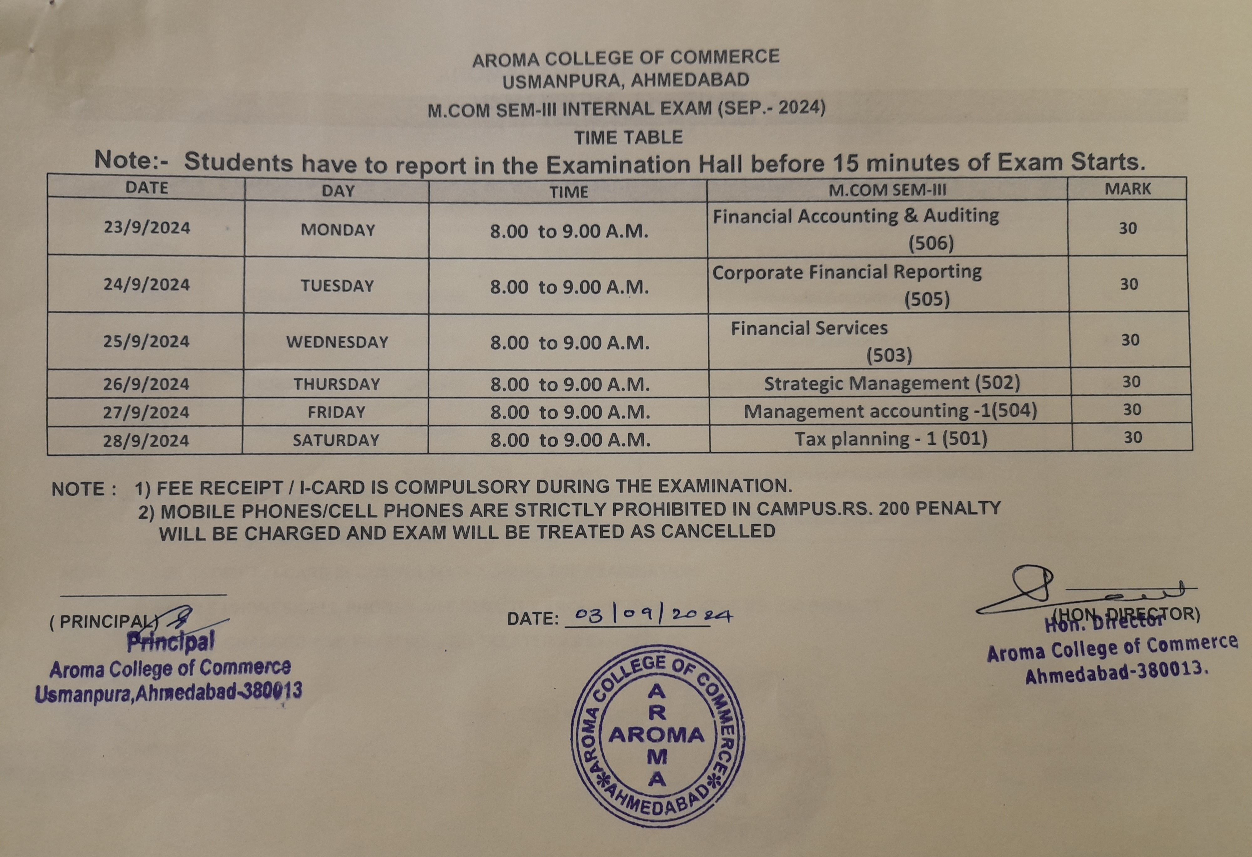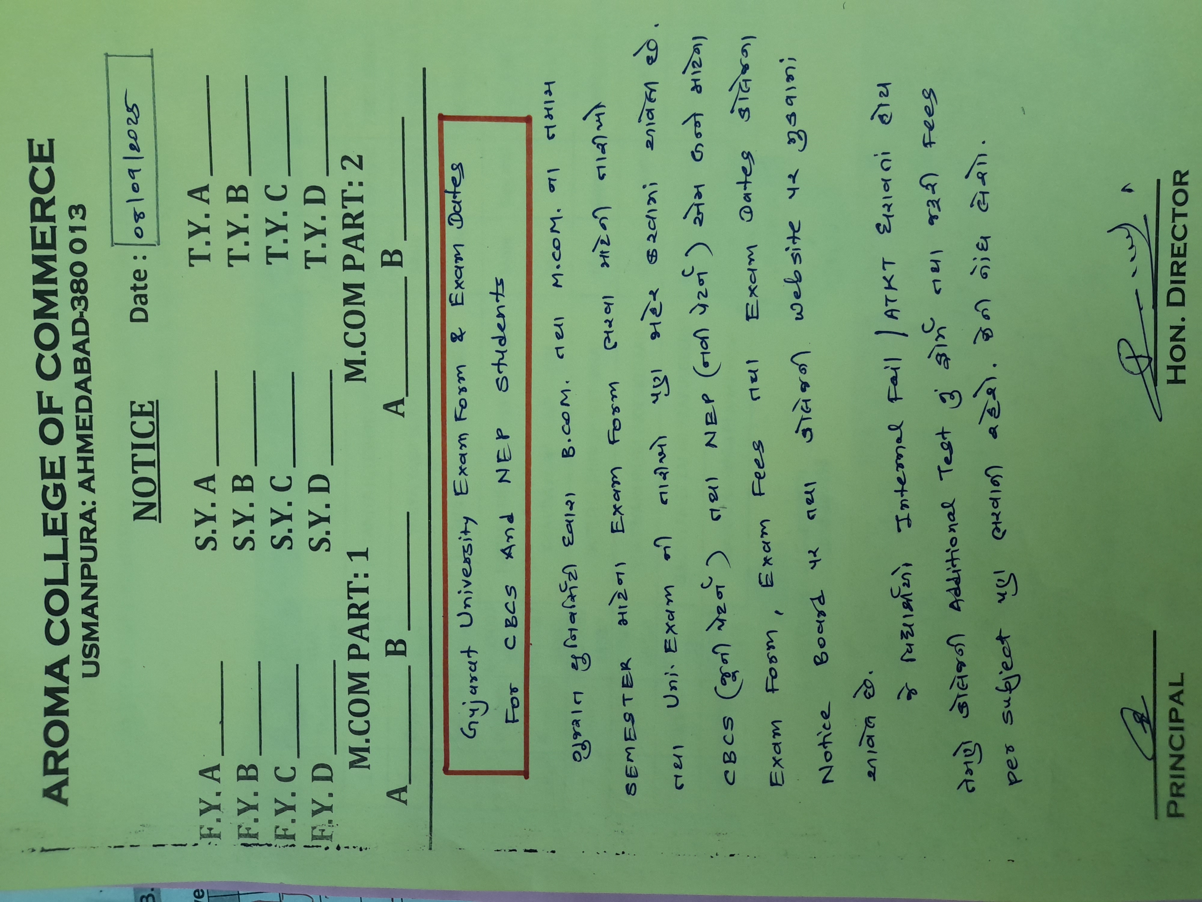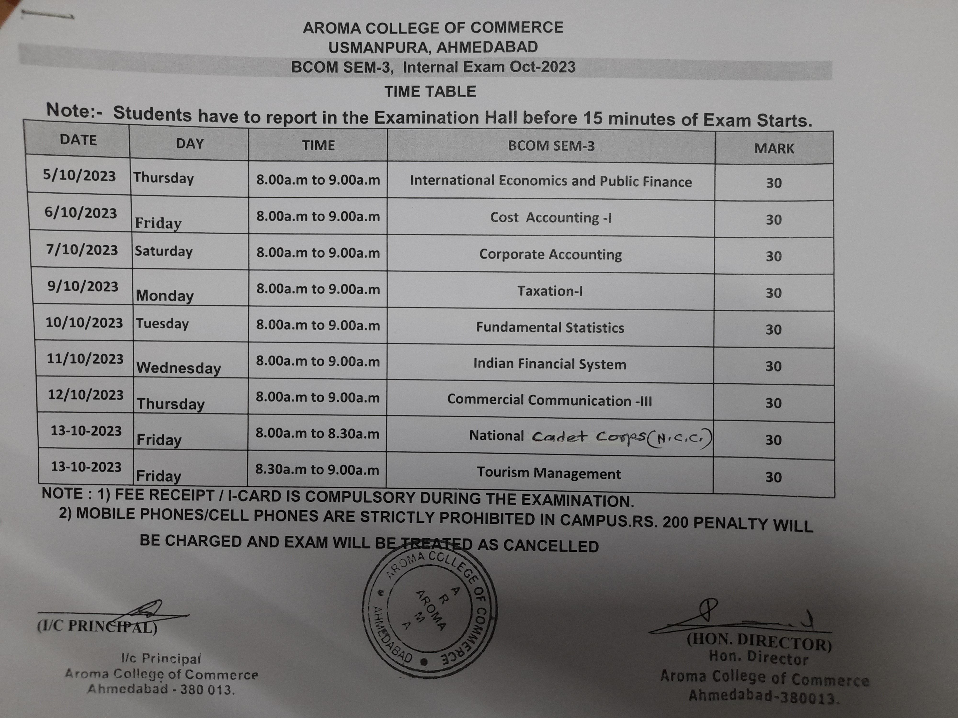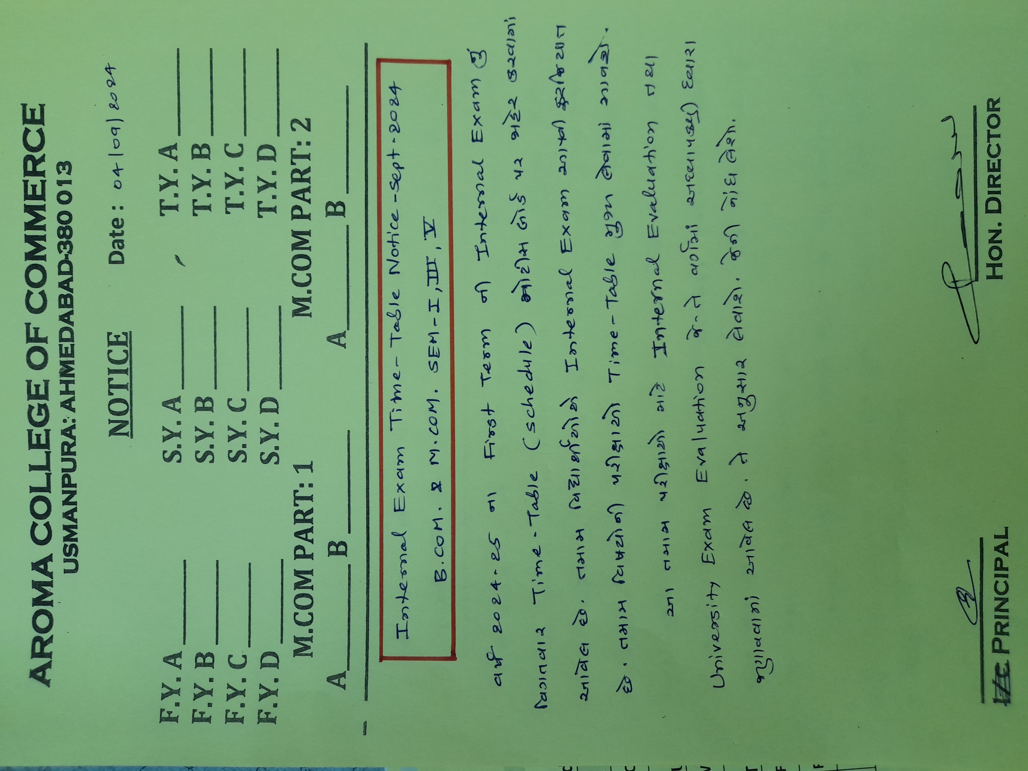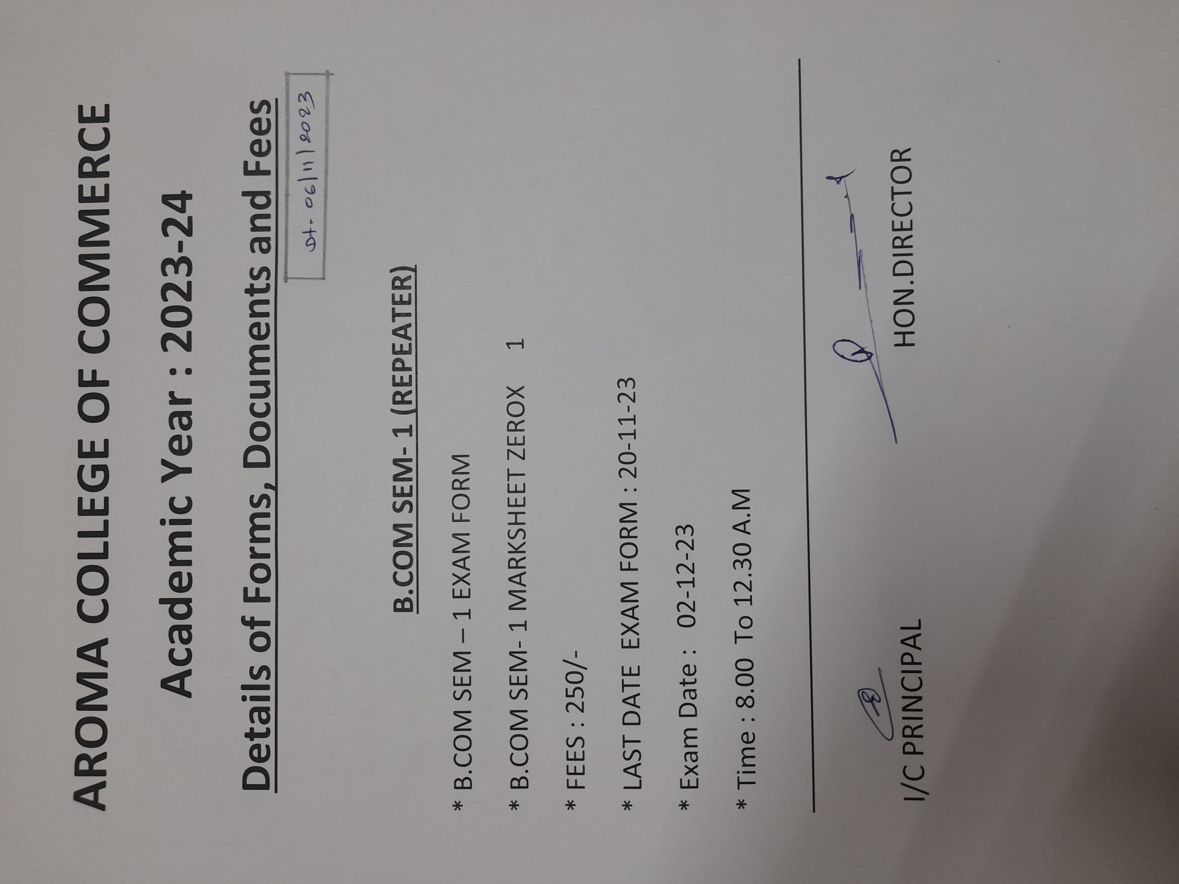 Important Notice: Last date for Admissions Forms and Term Fees with late fees for B.COM.SEM-3 ,B.COM SEM-5 and M.COM SEM-3 will be 02/09/2025 and Considered for Internal Exam starting from 15/09/2025.