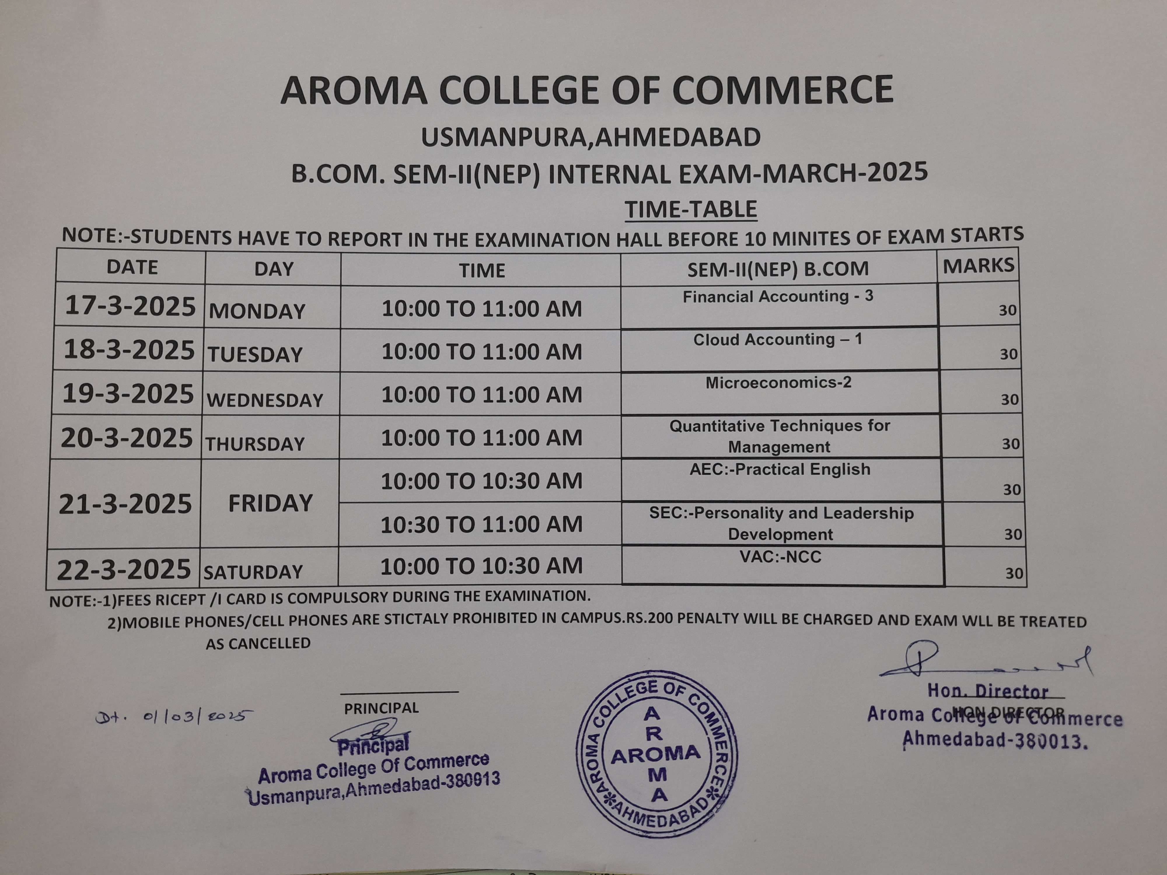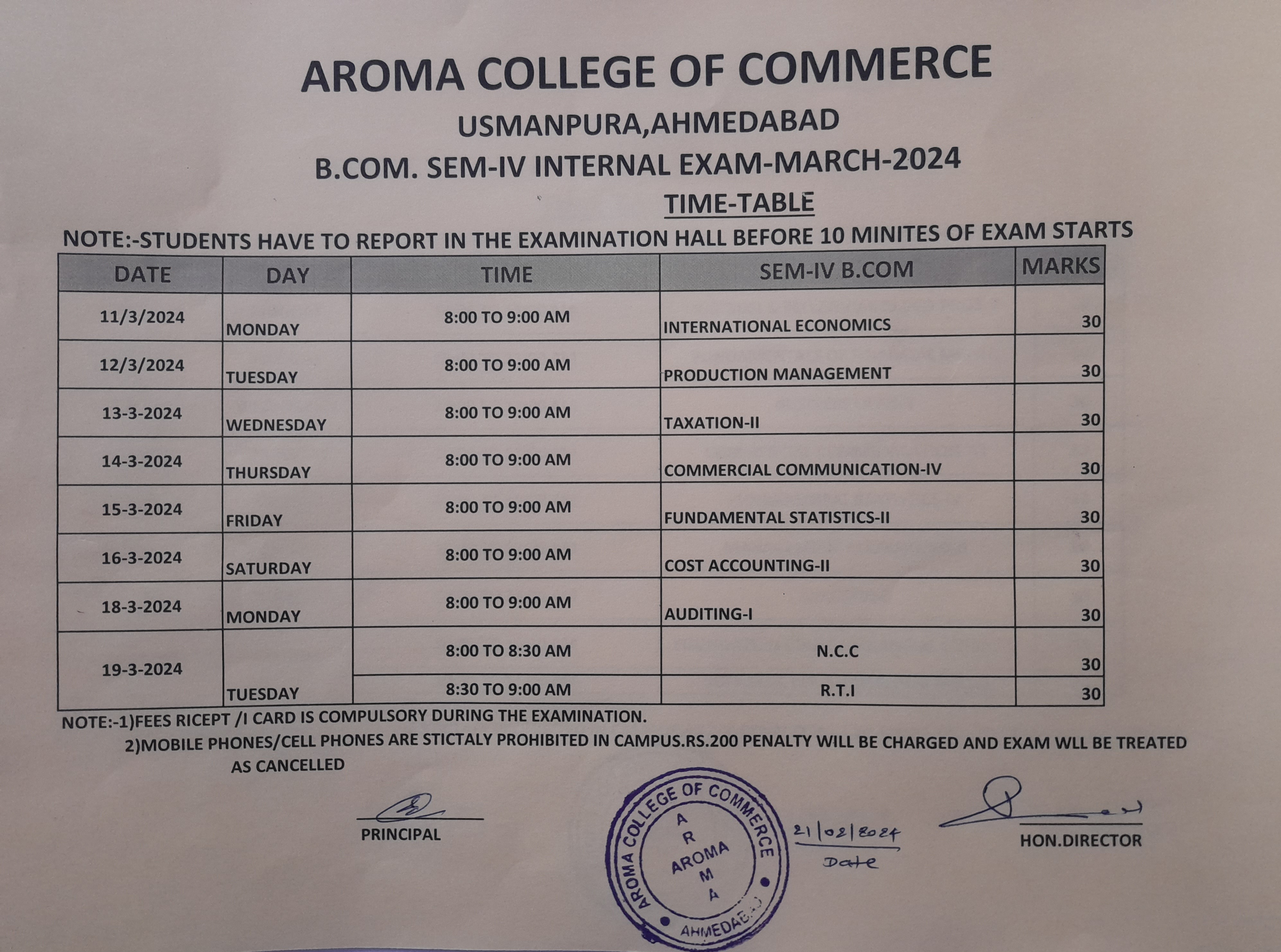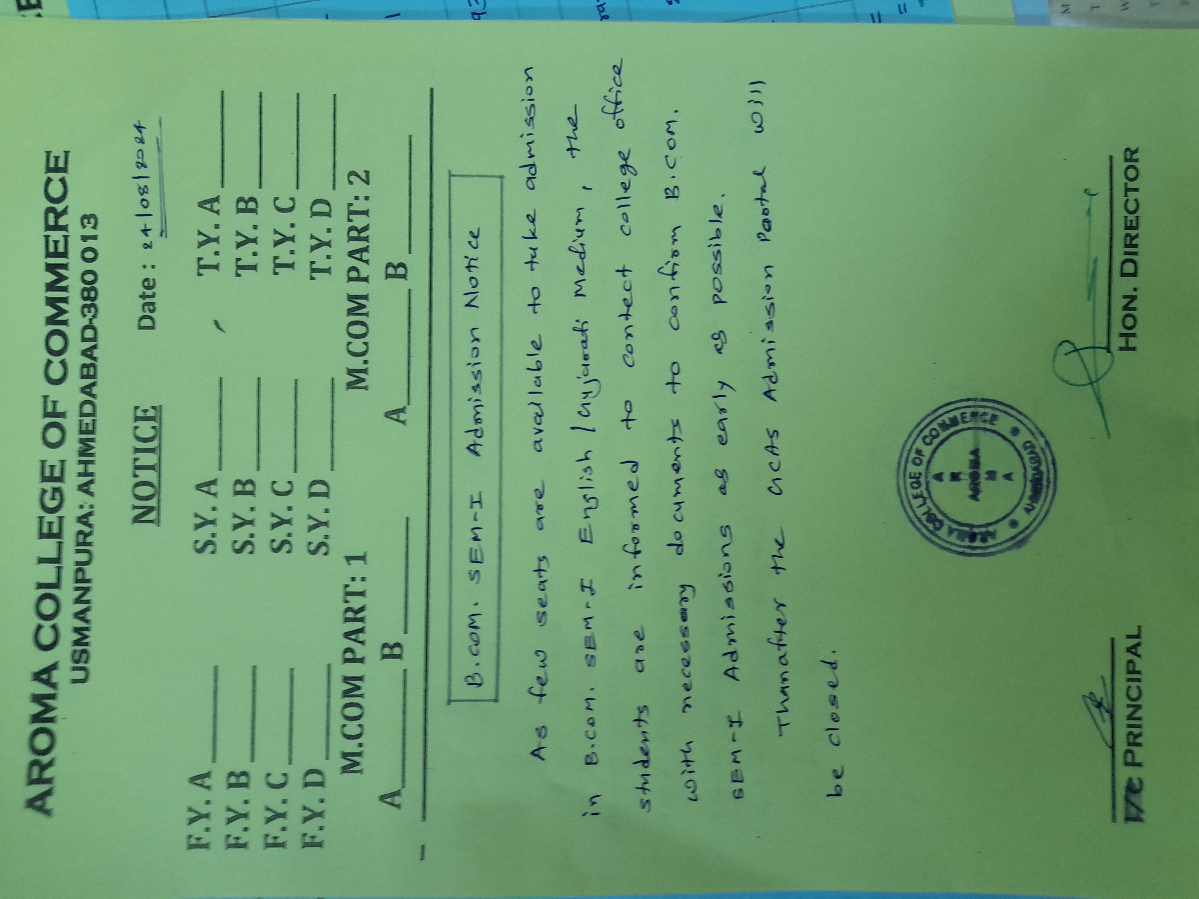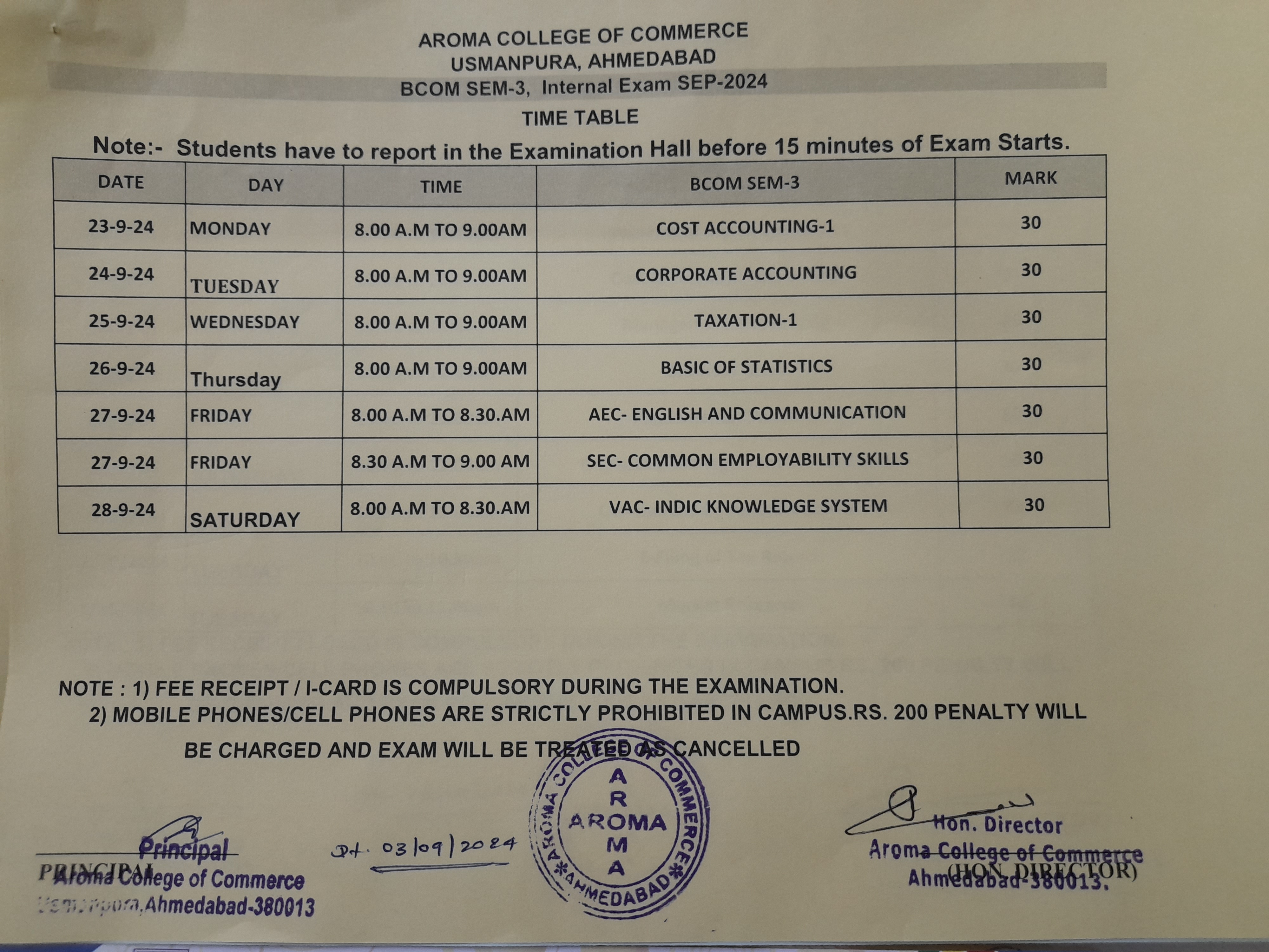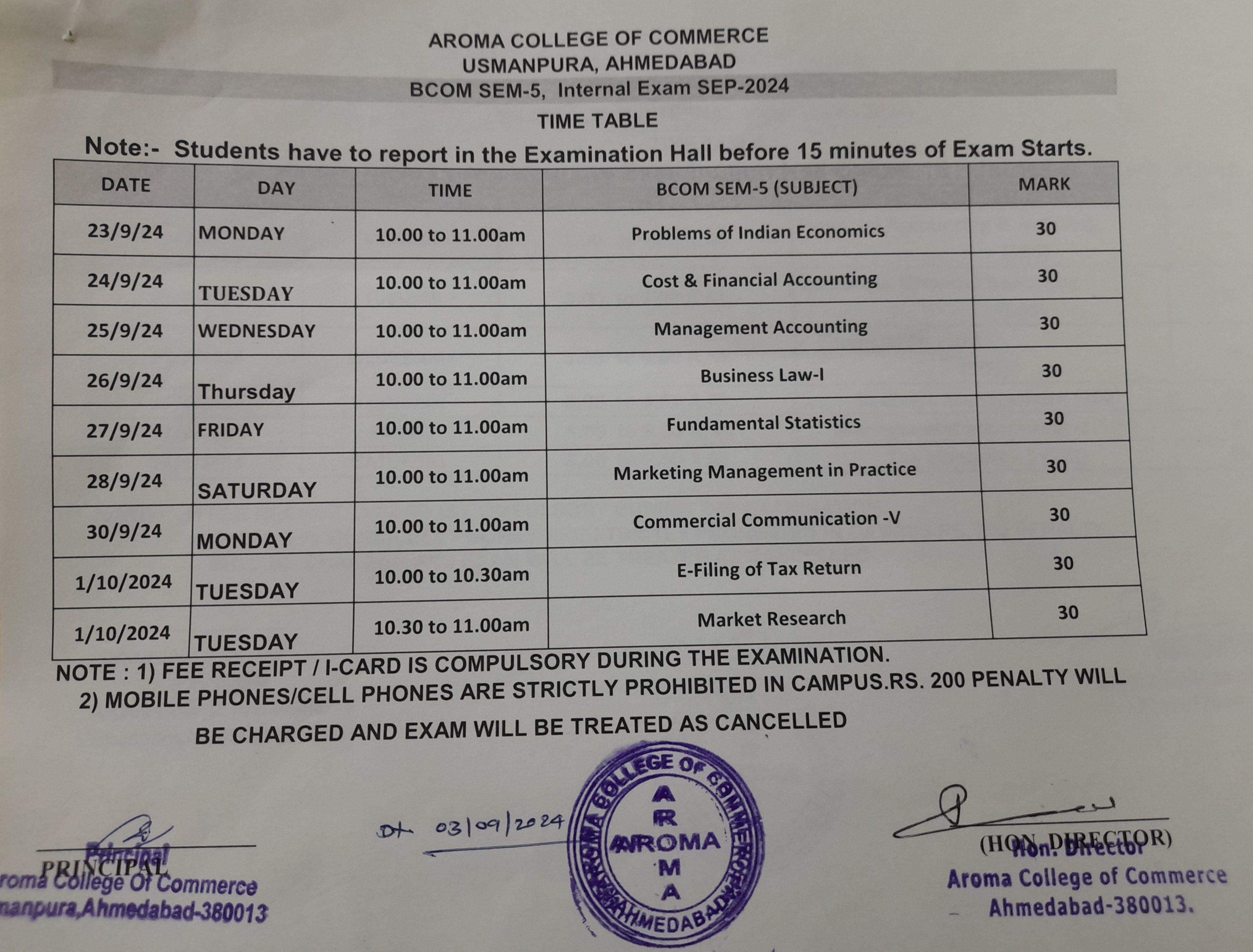 Important Notice: Last date for Admissions Forms and Term Fees with late fees for B.COM.SEM-3 ,B.COM SEM-5 and M.COM SEM-3 will be 02/09/2025 and Considered for Internal Exam starting from 15/09/2025.