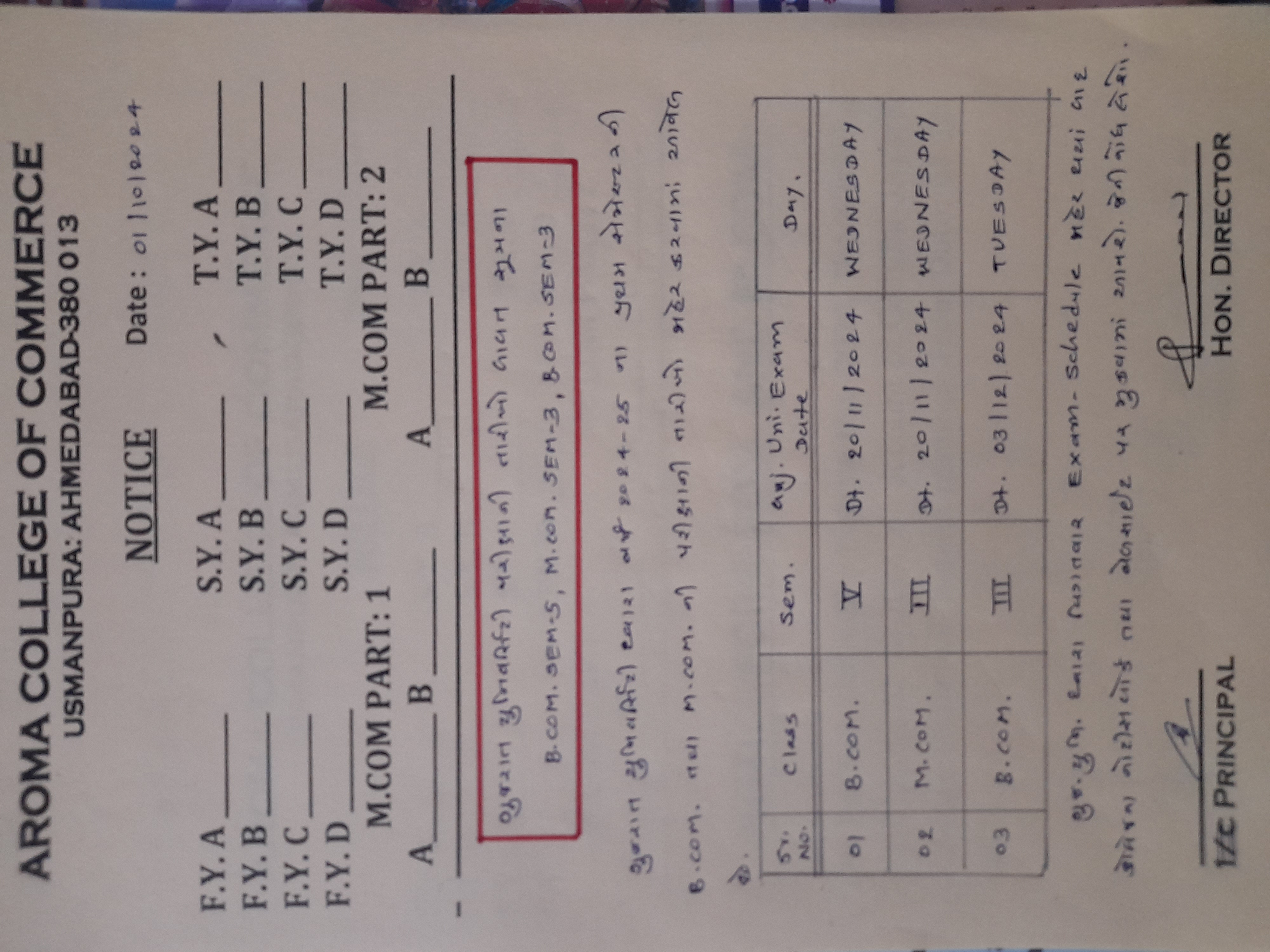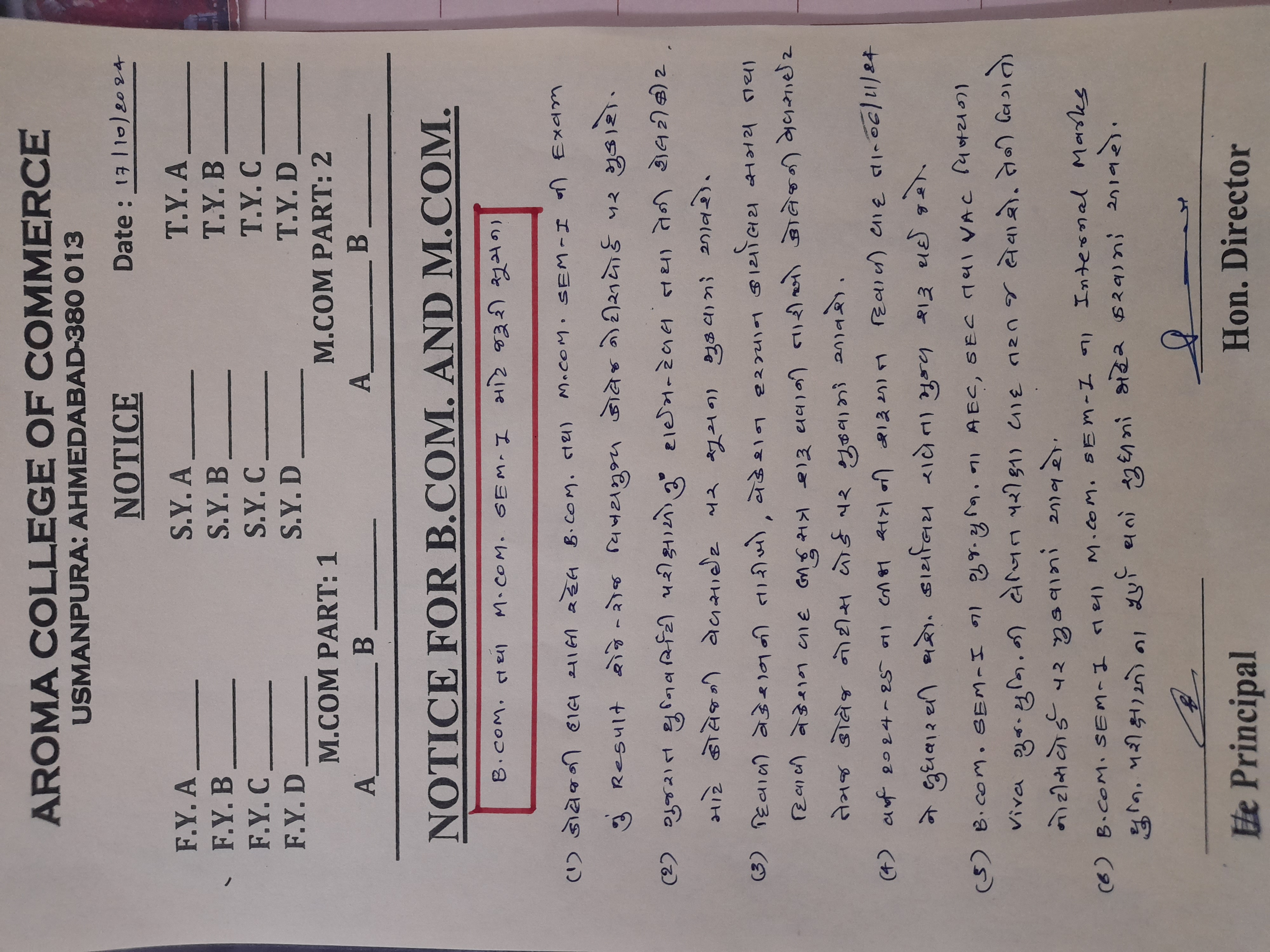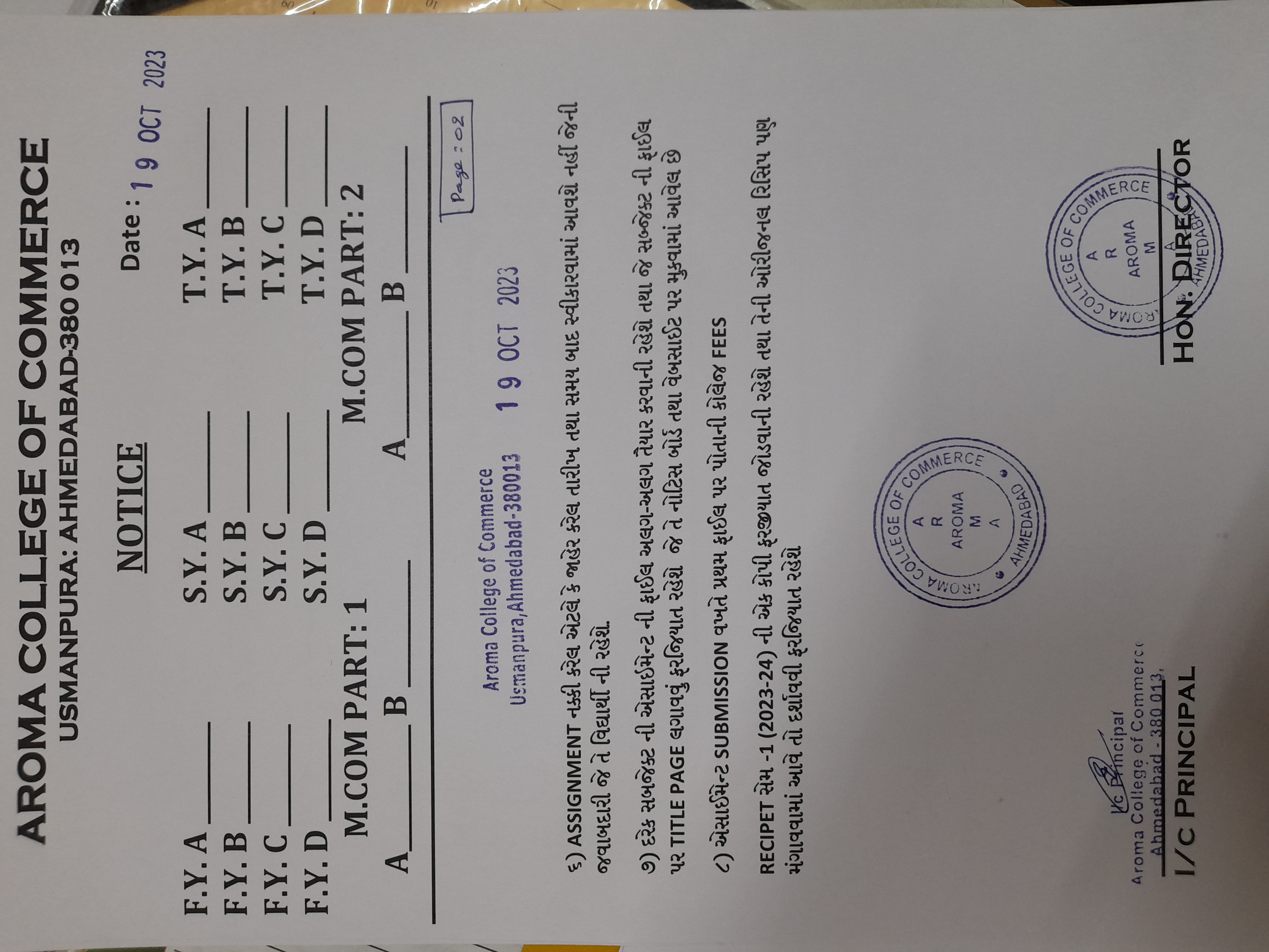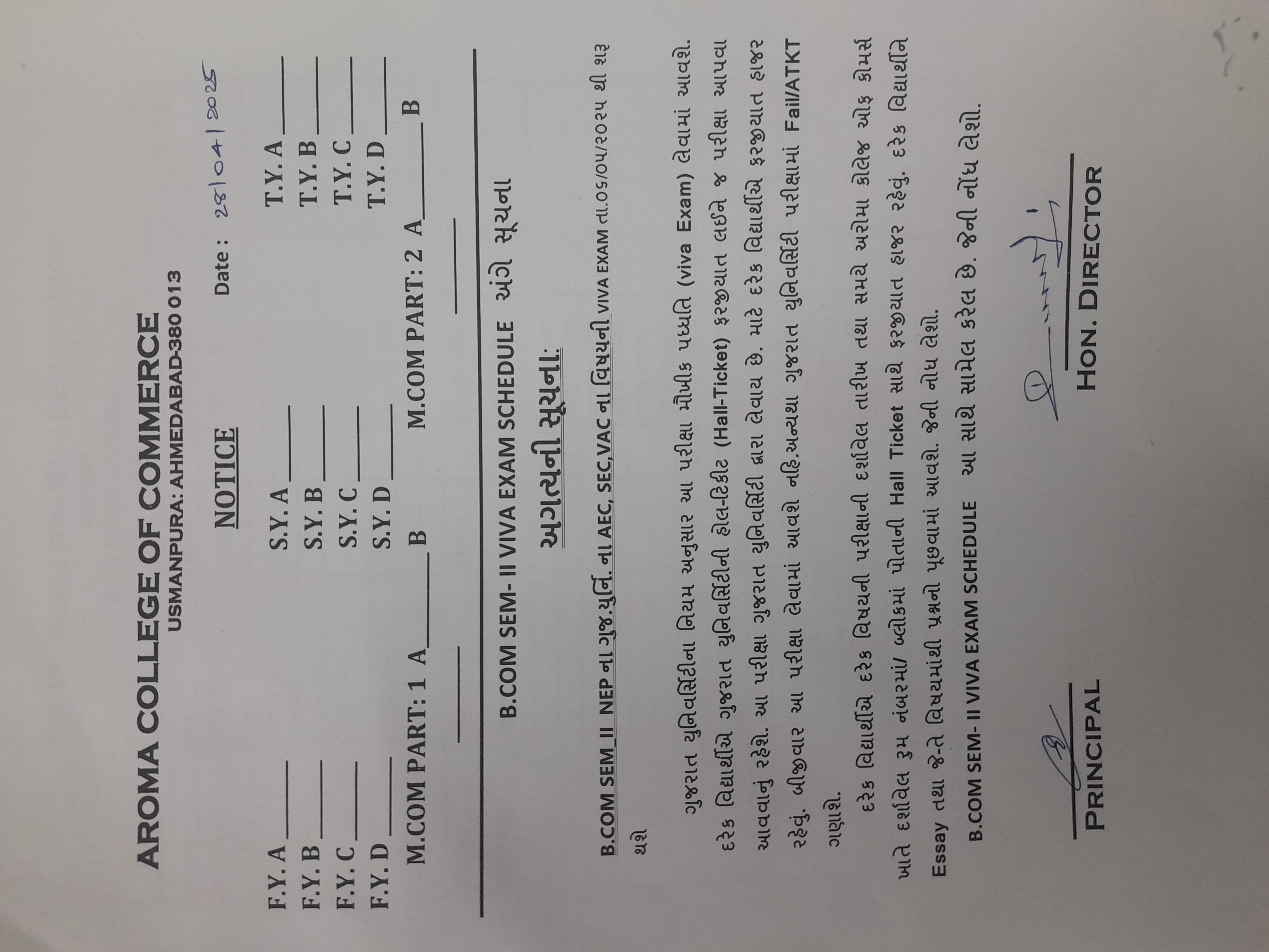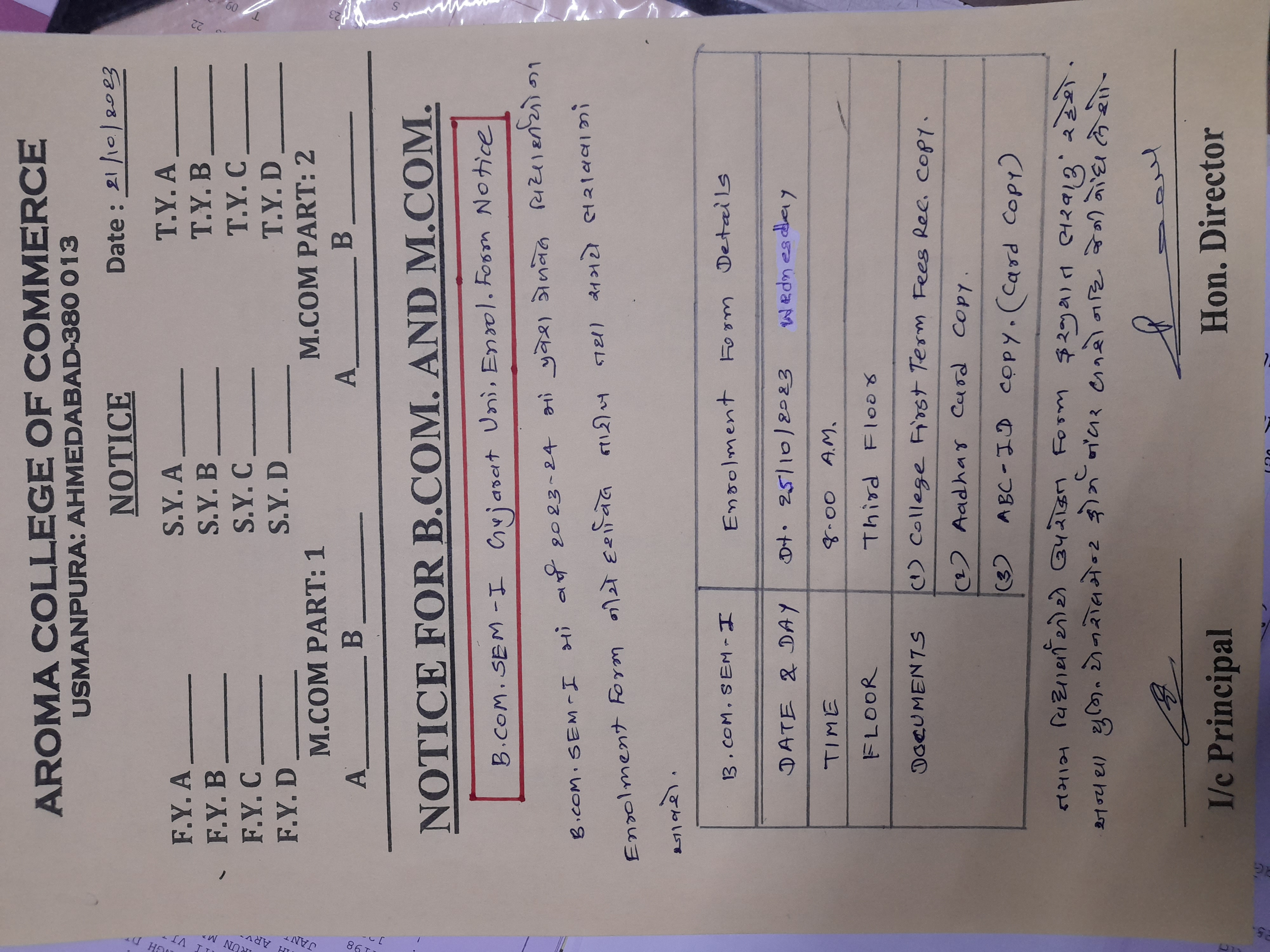 Important Notice: (1) B.com sem-1 Guj Uni Exam Forms for Regular and Repeater students will be declared on website as and when notified. (2)M.com sem-1 Guj Uni Exam Forms for Regular and Repeater students will also be declared on website as and when notified. (3)Assignments submission dates for B.com sem4 ,Bcom sem-6 and Mcom sem-4 will be declared shortly. (4)Do attend online classes regularly. (5) Admission Forms and fees process will complete in current month with late fees.