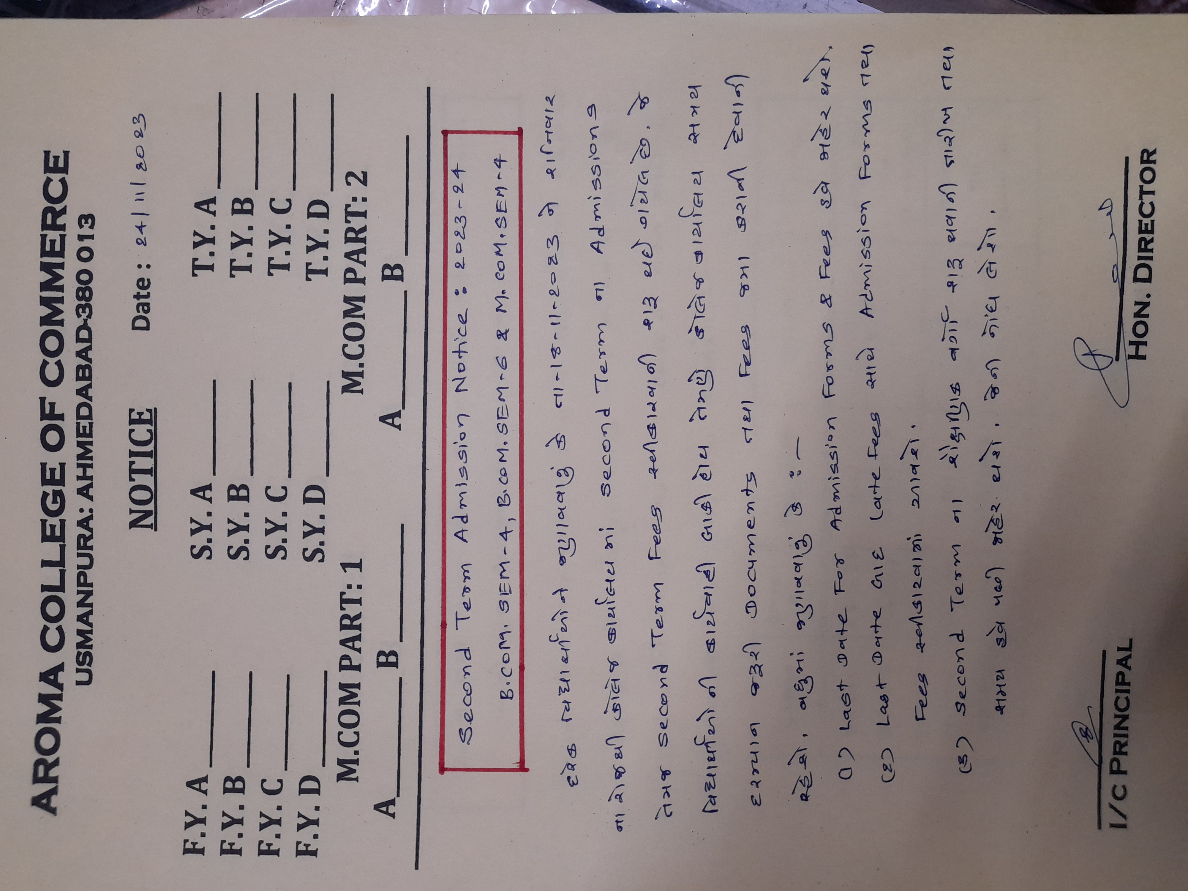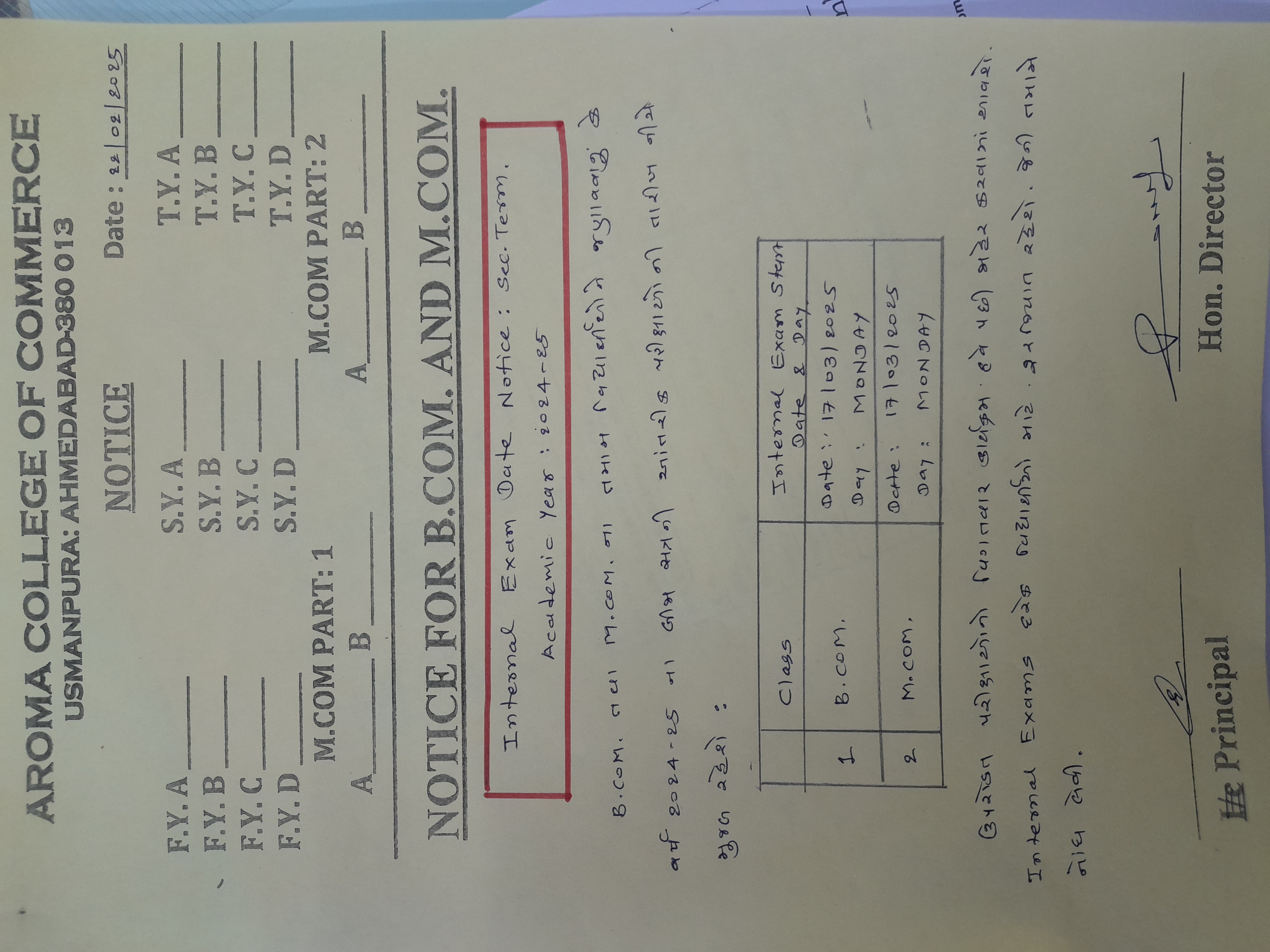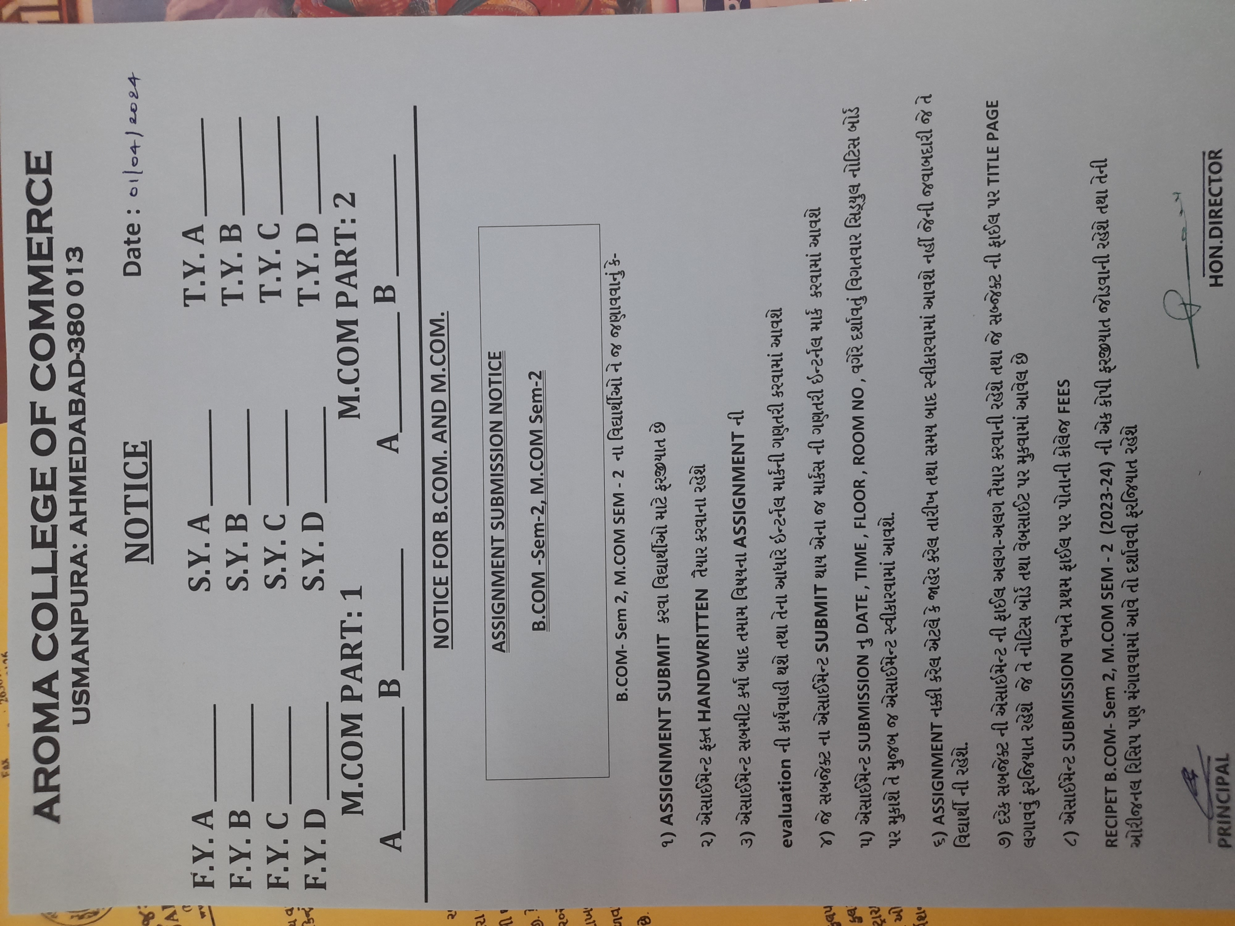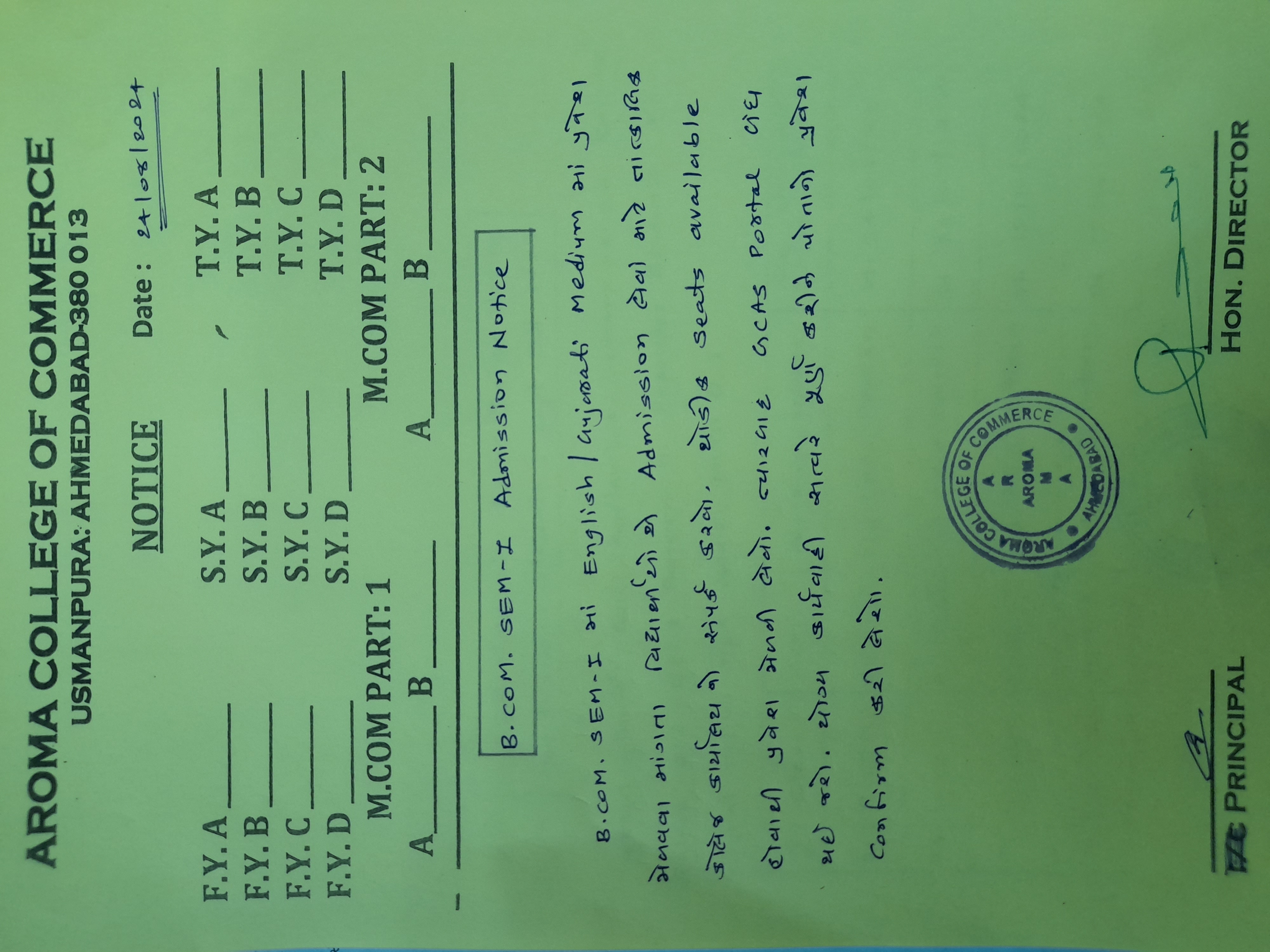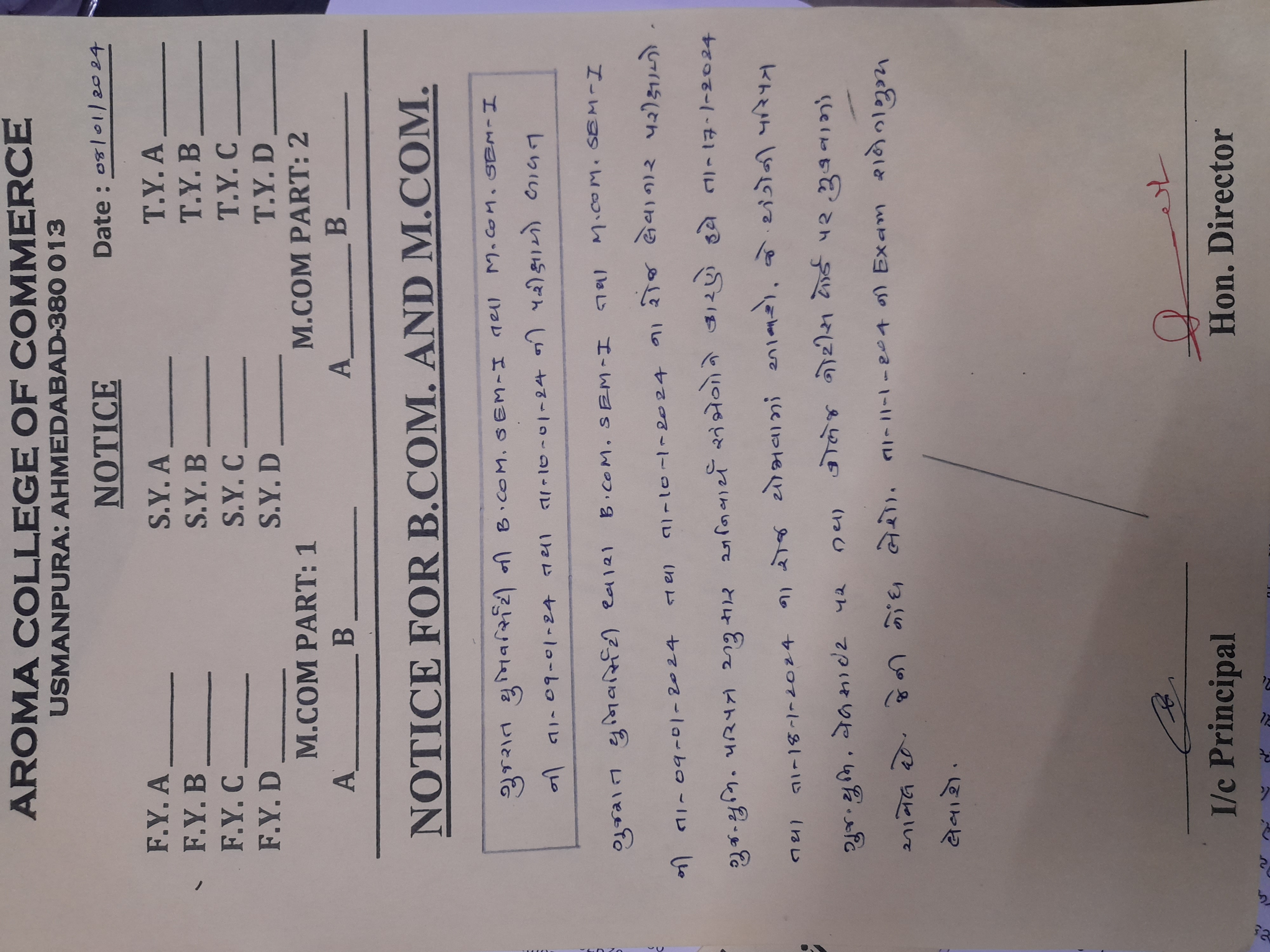 Important Notice: (1) B.com sem-1 Guj Uni Exam Forms for Regular and Repeater students will be declared on website as and when notified. (2)M.com sem-1 Guj Uni Exam Forms for Regular and Repeater students will also be declared on website as and when notified. (3)Assignments submission dates for B.com sem4 ,Bcom sem-6 and Mcom sem-4 will be declared shortly. (4)Do attend online classes regularly. (5) Admission Forms and fees process will complete in current month with late fees.