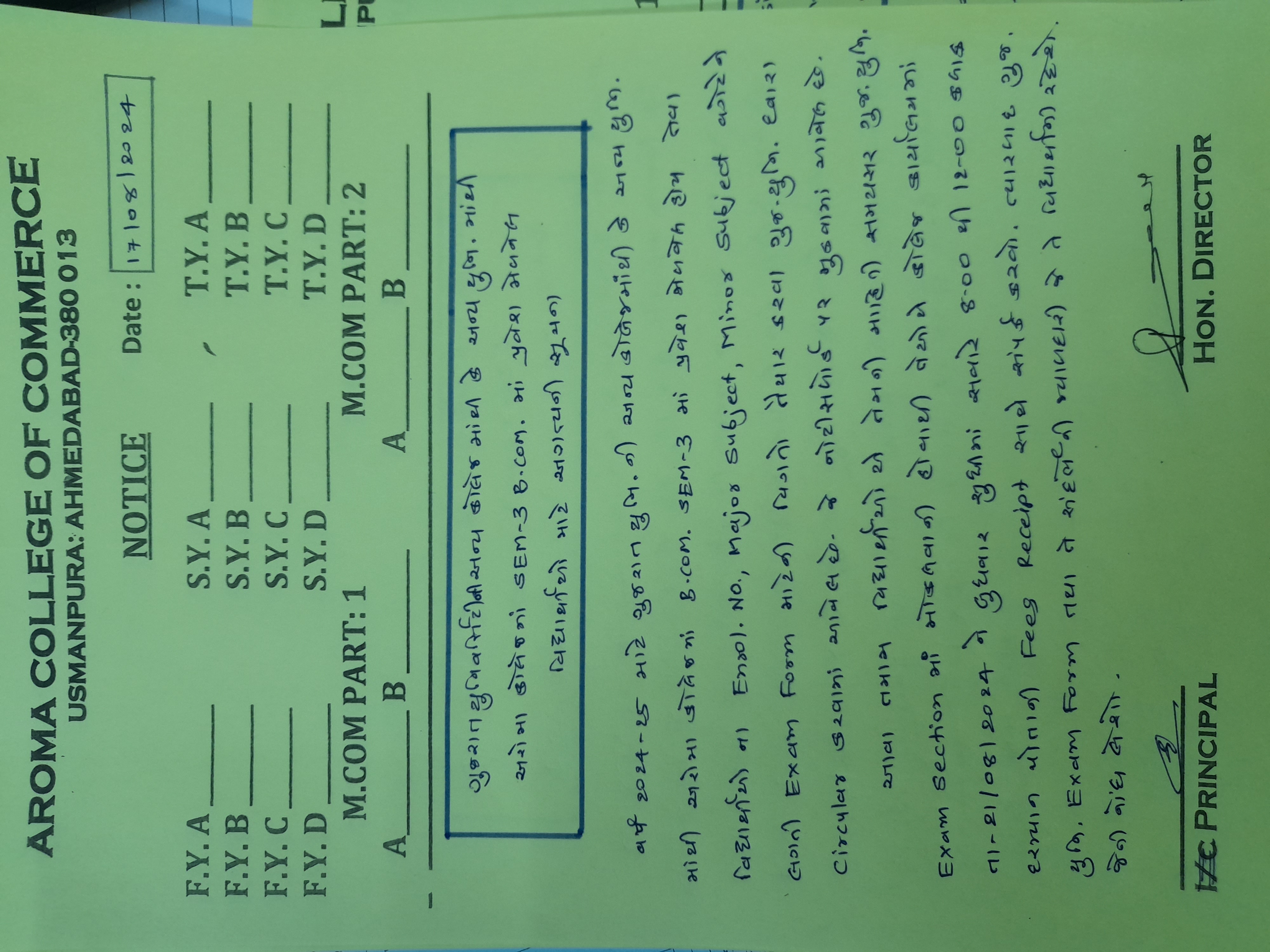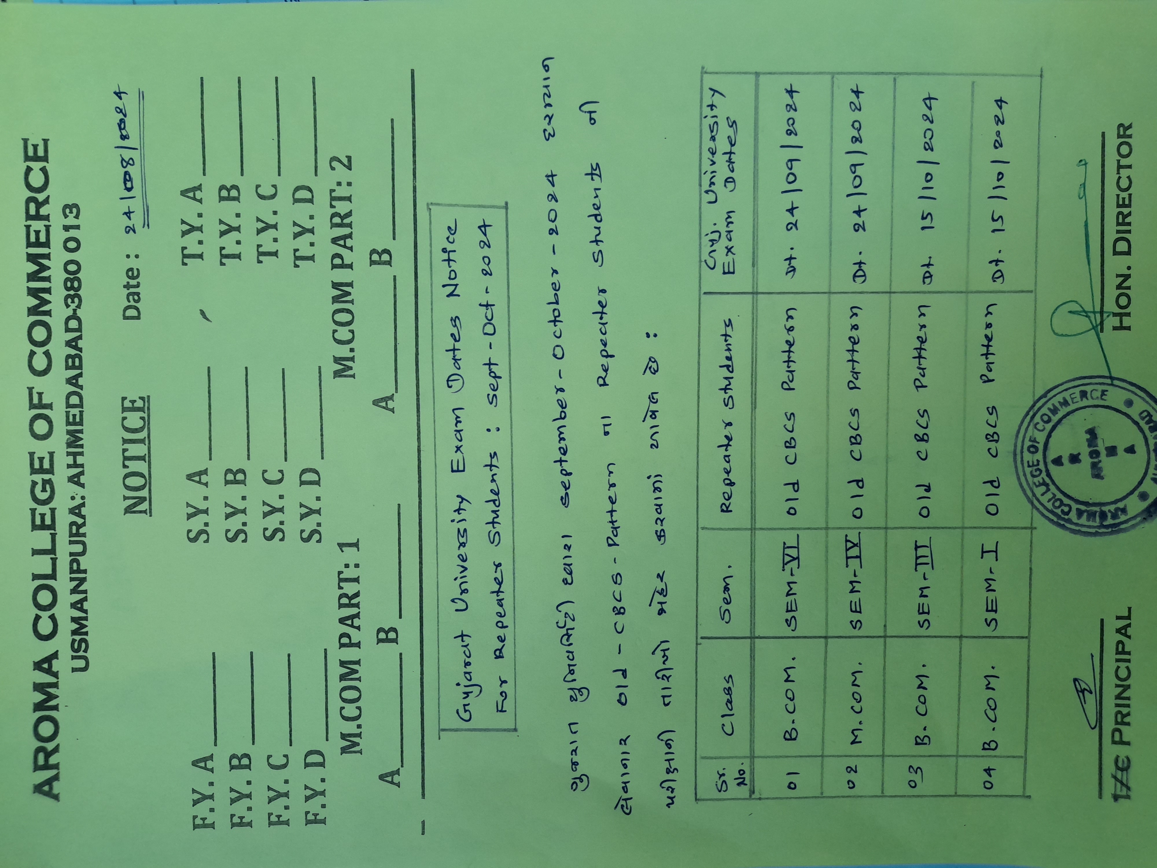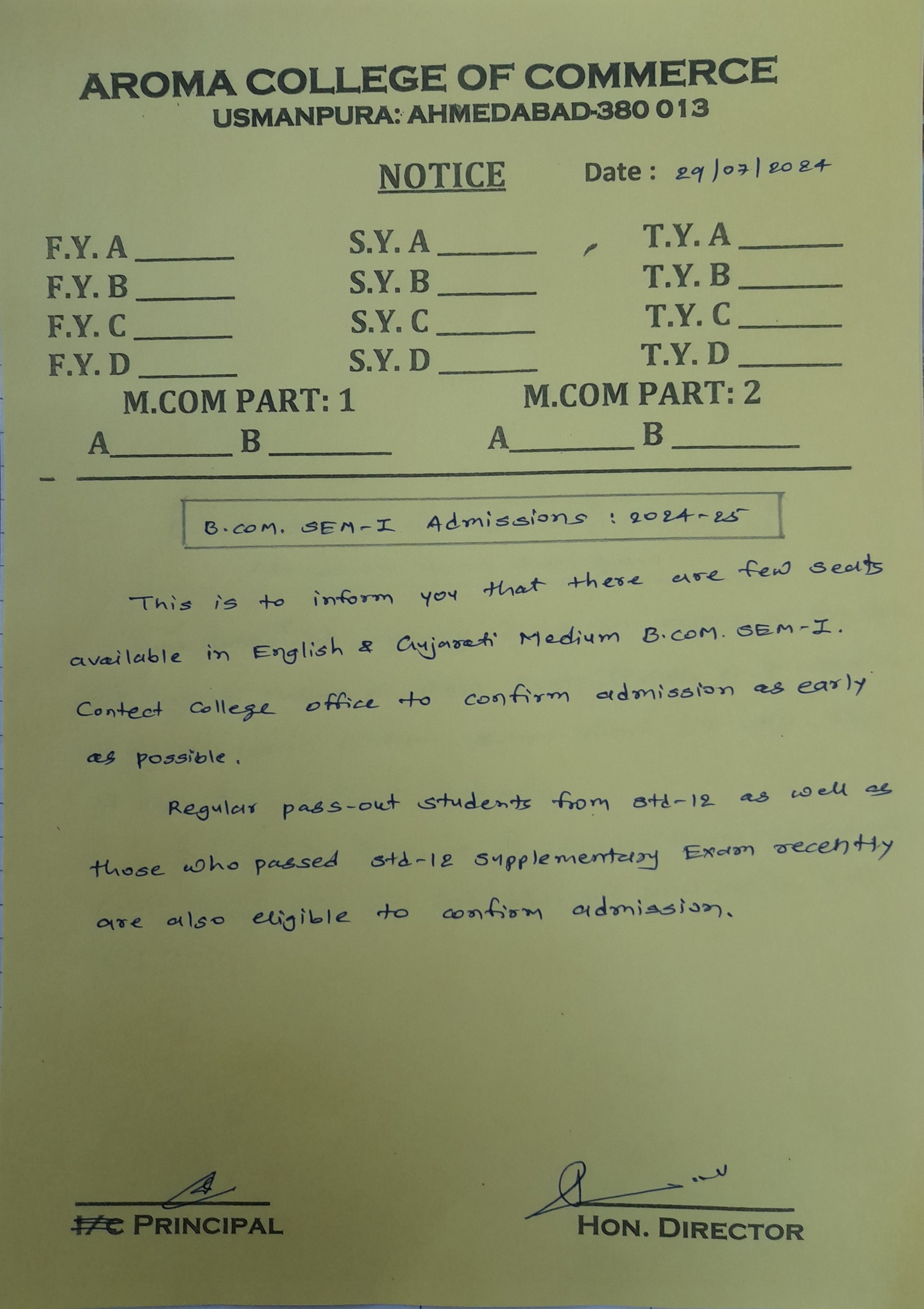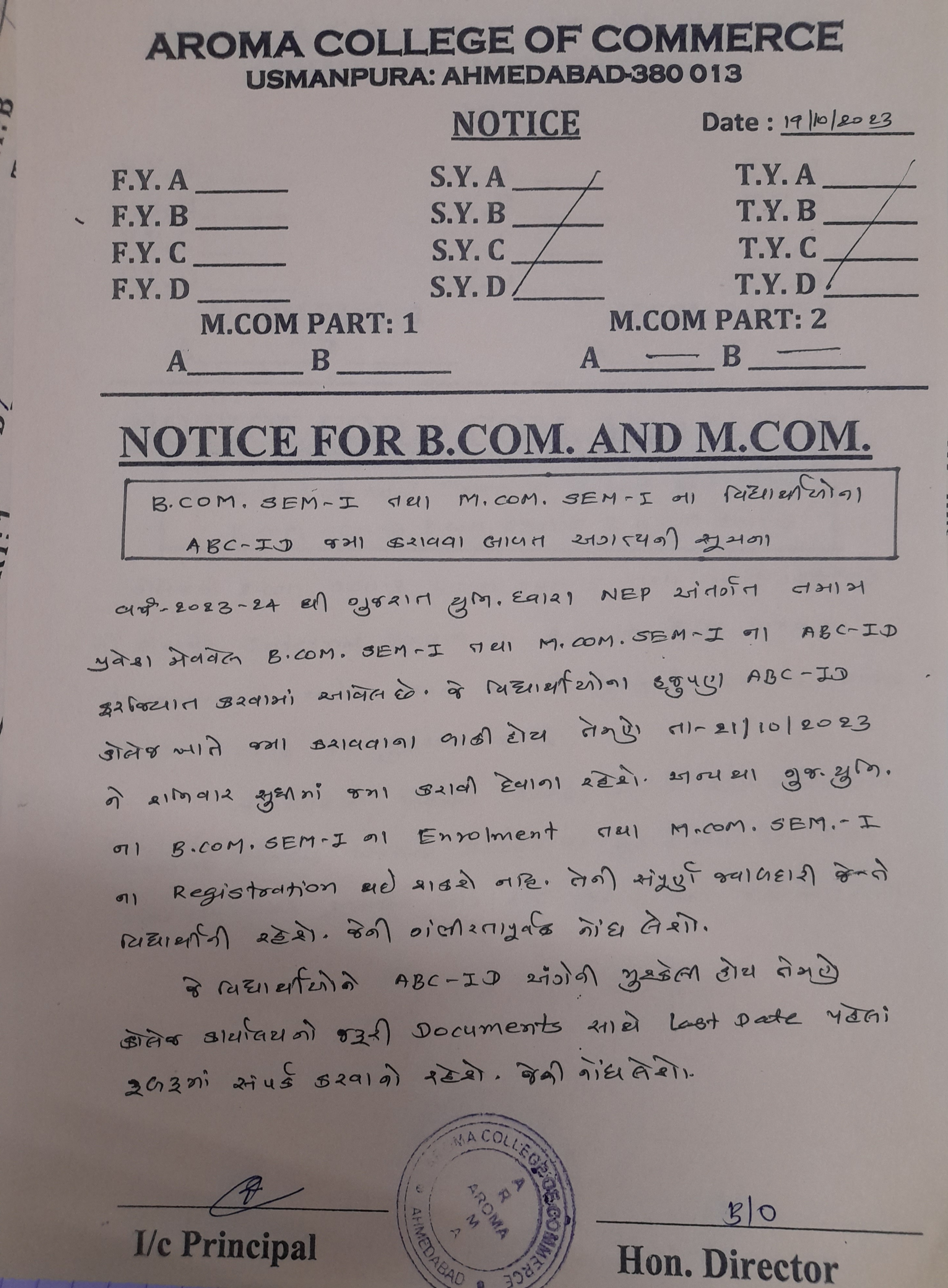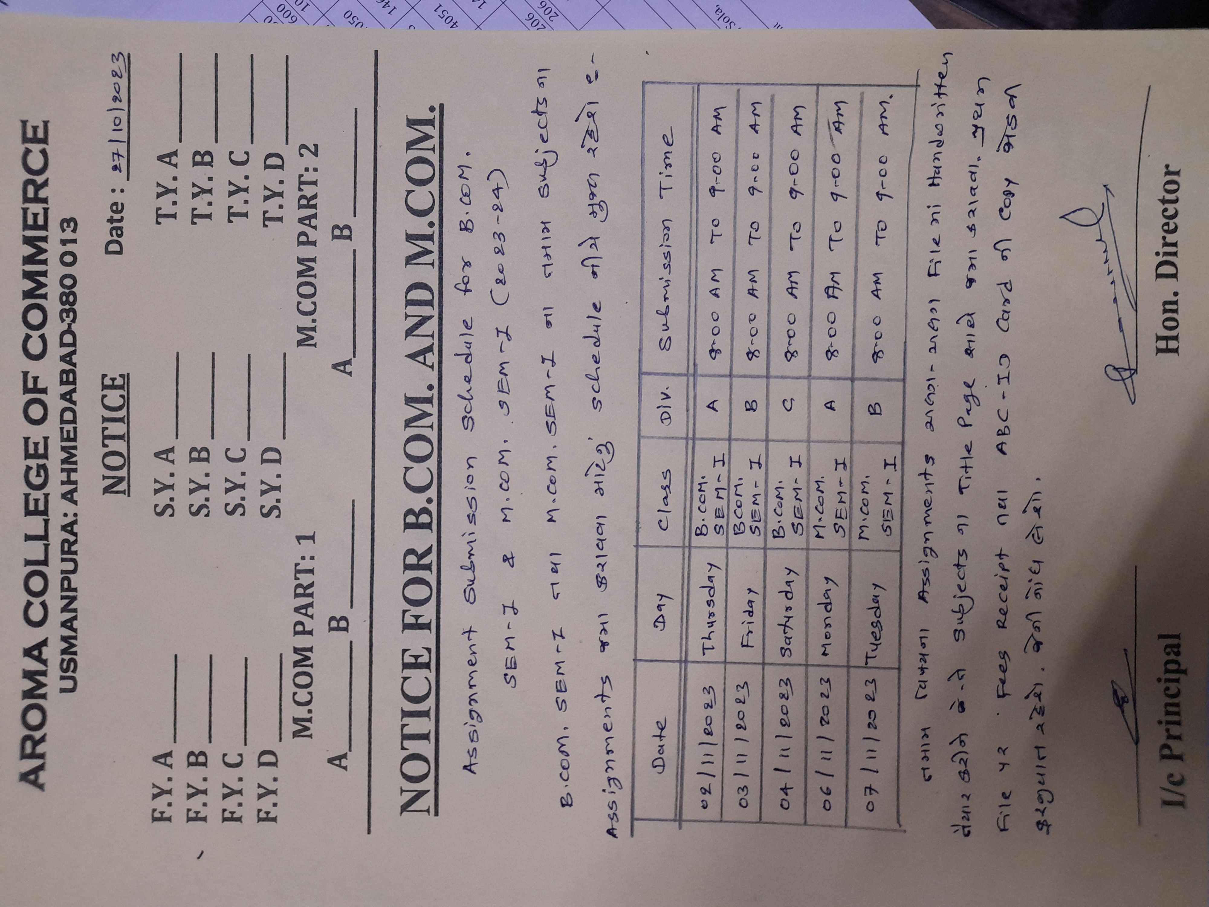 Important Notice: (1) B.com sem-1 Guj Uni Exam Forms for Regular and Repeater students will be declared on website as and when notified. (2)M.com sem-1 Guj Uni Exam Forms for Regular and Repeater students will also be declared on website as and when notified. (3)Assignments submission dates for B.com sem4 ,Bcom sem-6 and Mcom sem-4 will be declared shortly. (4)Do attend online classes regularly. (5) Admission Forms and fees process will complete in current month with late fees.