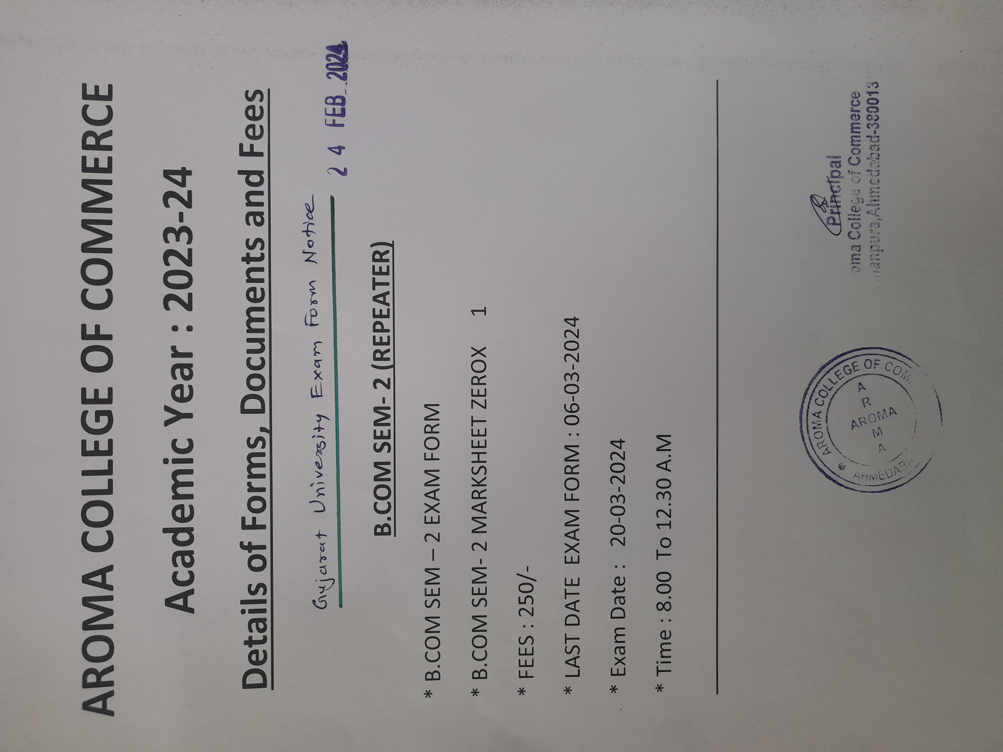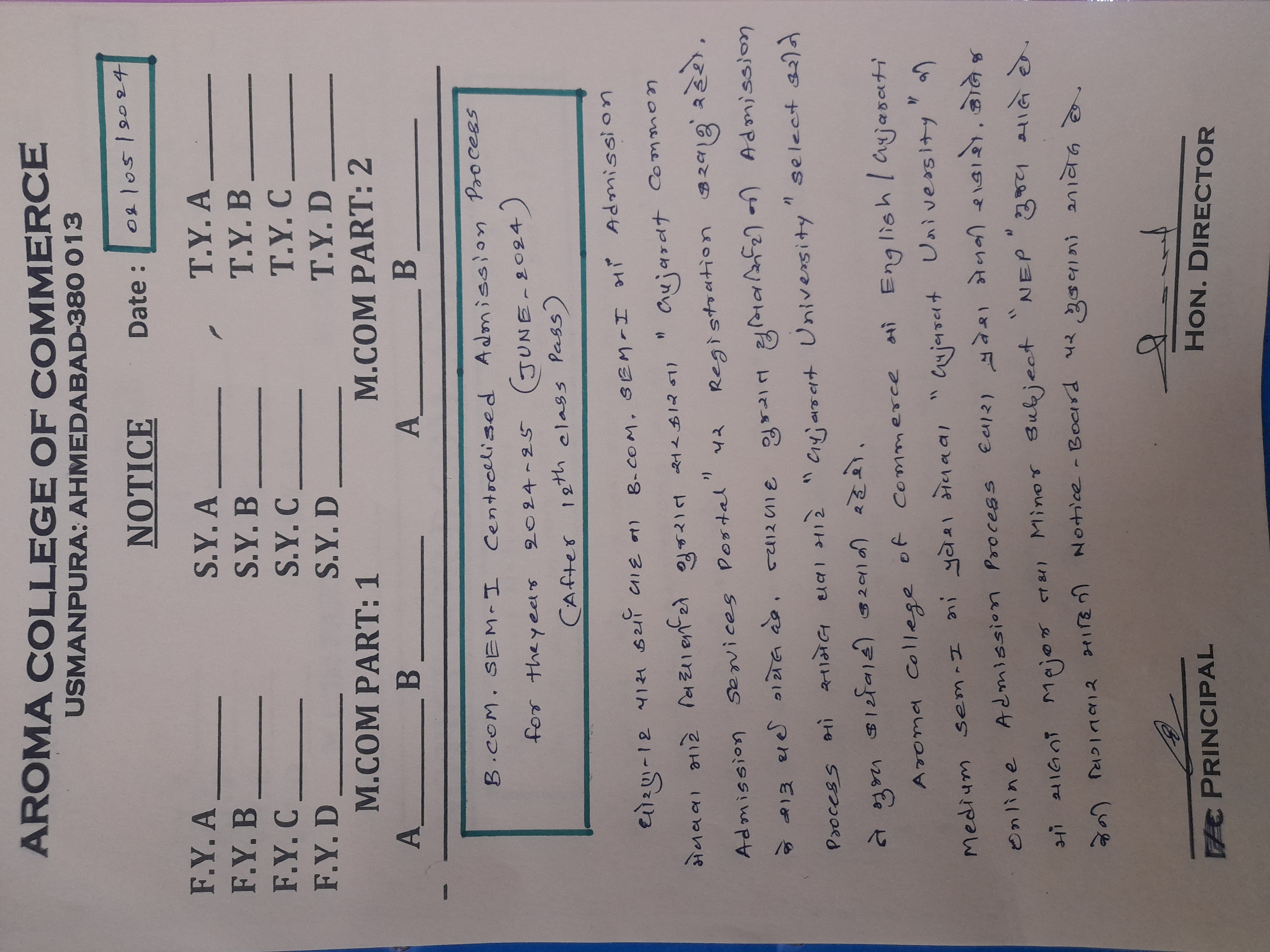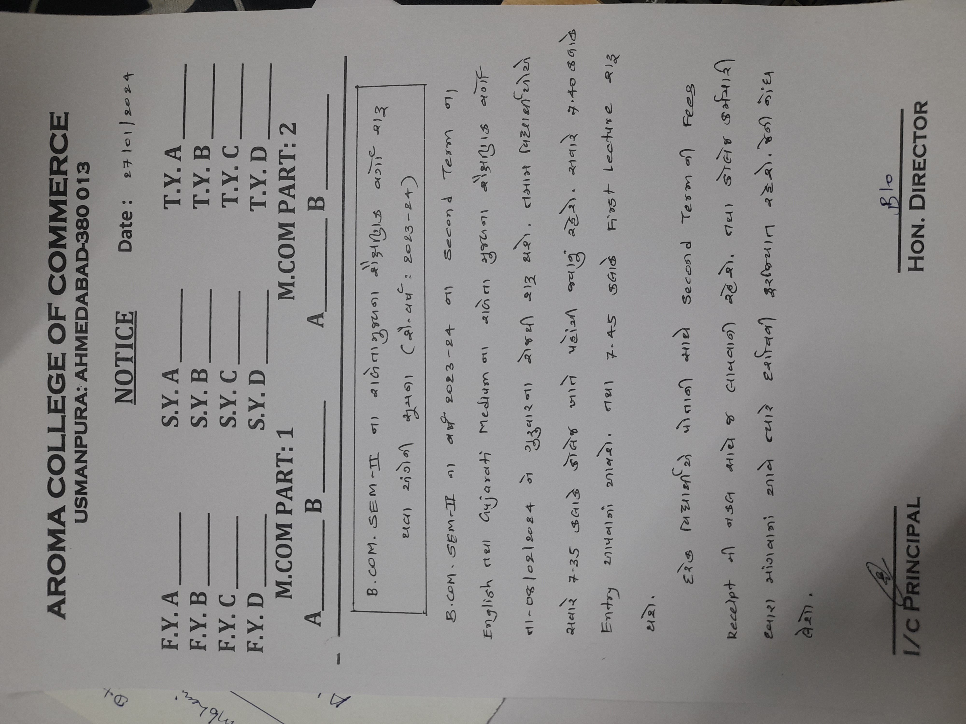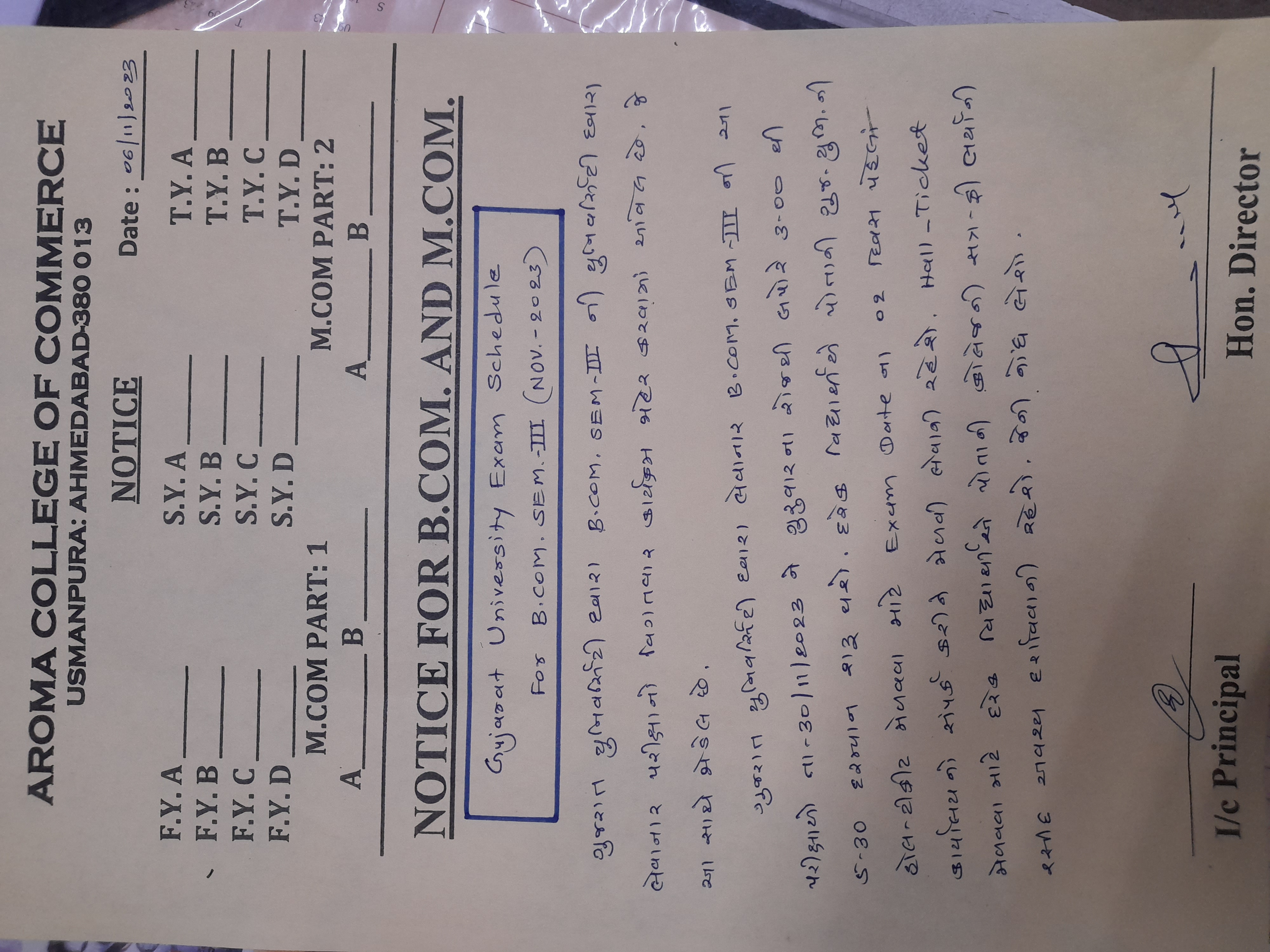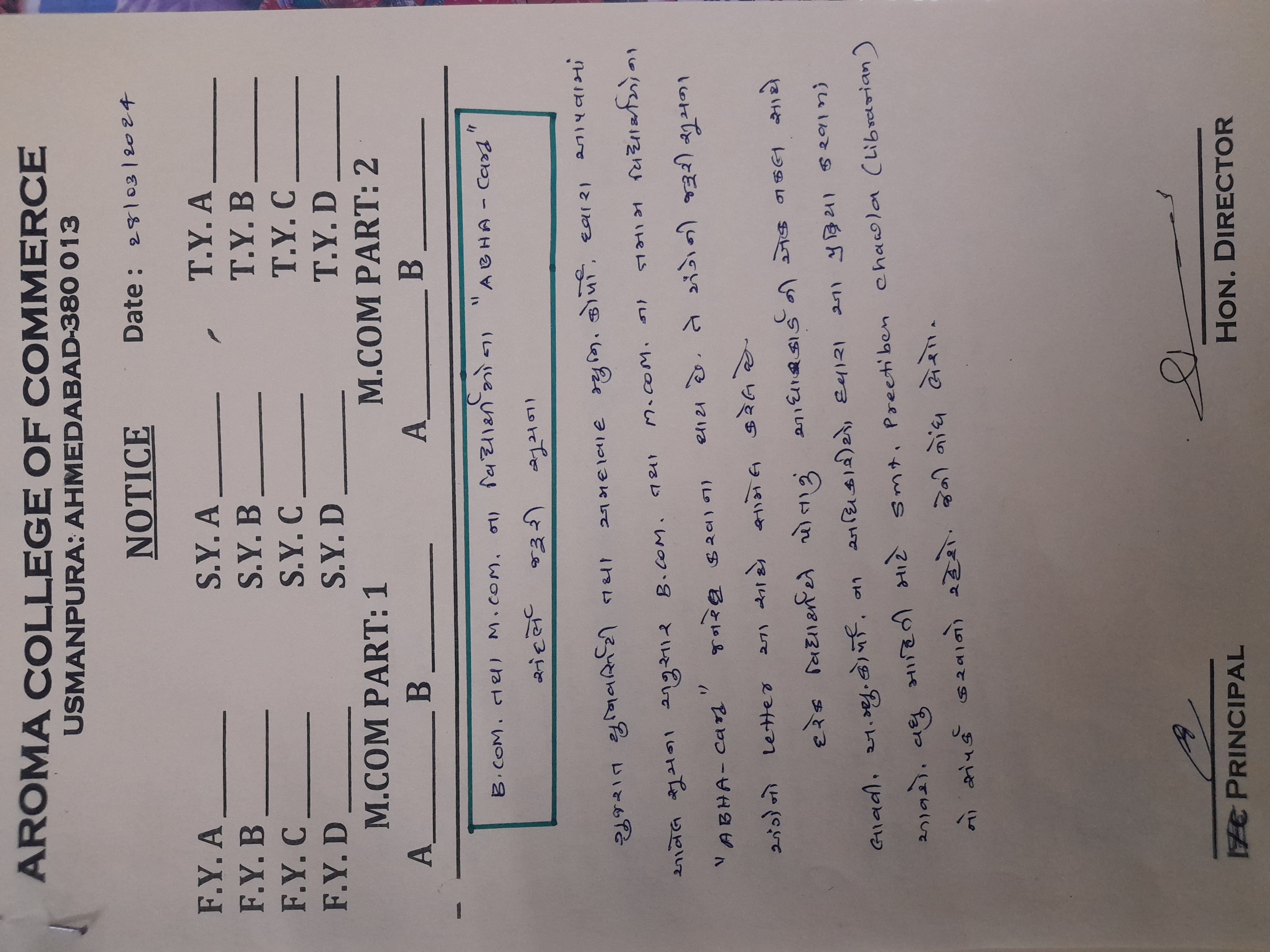 Important Notice: (1) B.com sem-1 Guj Uni Exam Forms for Regular and Repeater students will be declared on website as and when notified. (2)M.com sem-1 Guj Uni Exam Forms for Regular and Repeater students will also be declared on website as and when notified. (3)Assignments submission dates for B.com sem4 ,Bcom sem-6 and Mcom sem-4 will be declared shortly. (4)Do attend online classes regularly. (5) Admission Forms and fees process will complete in current month with late fees.