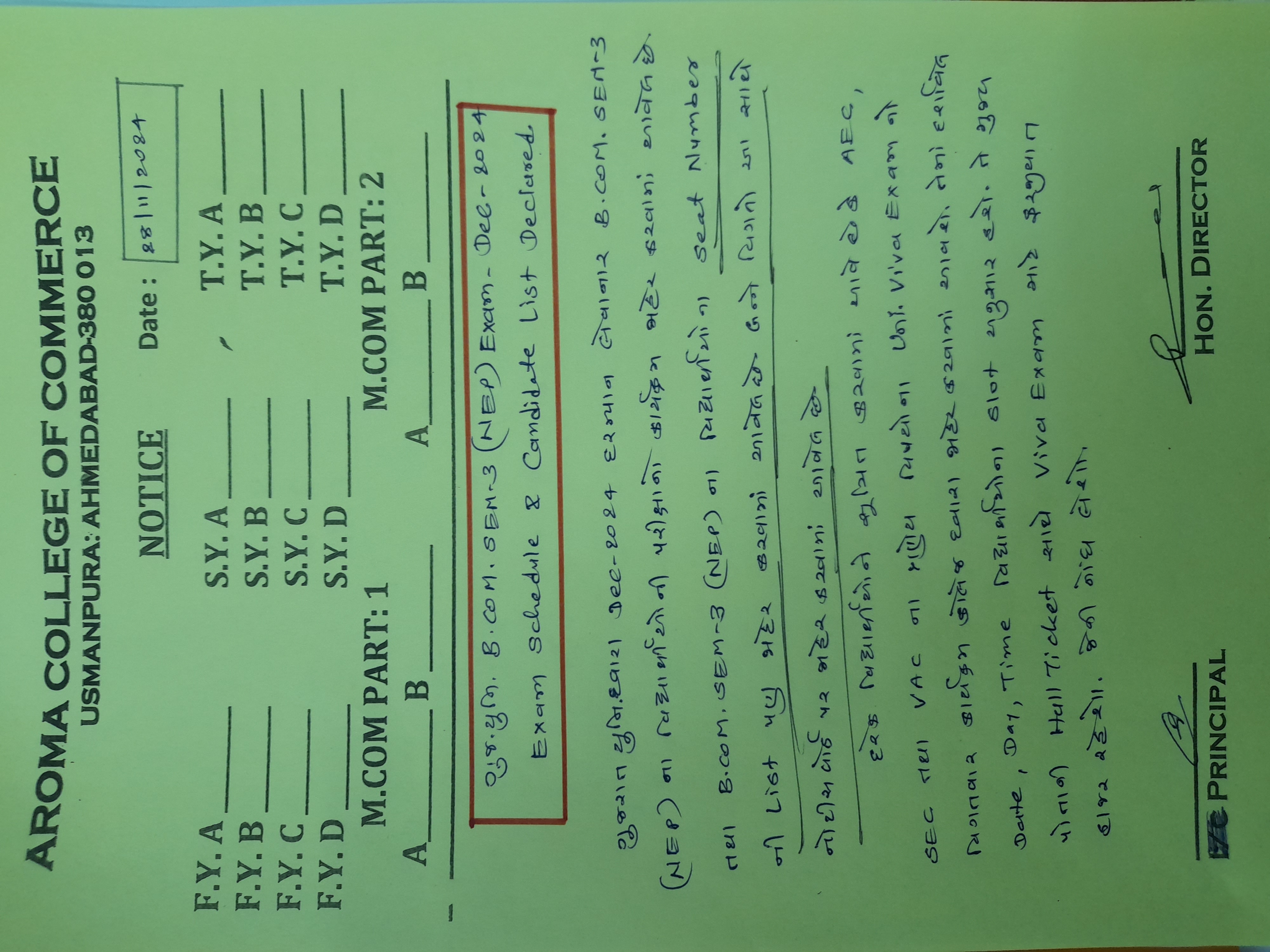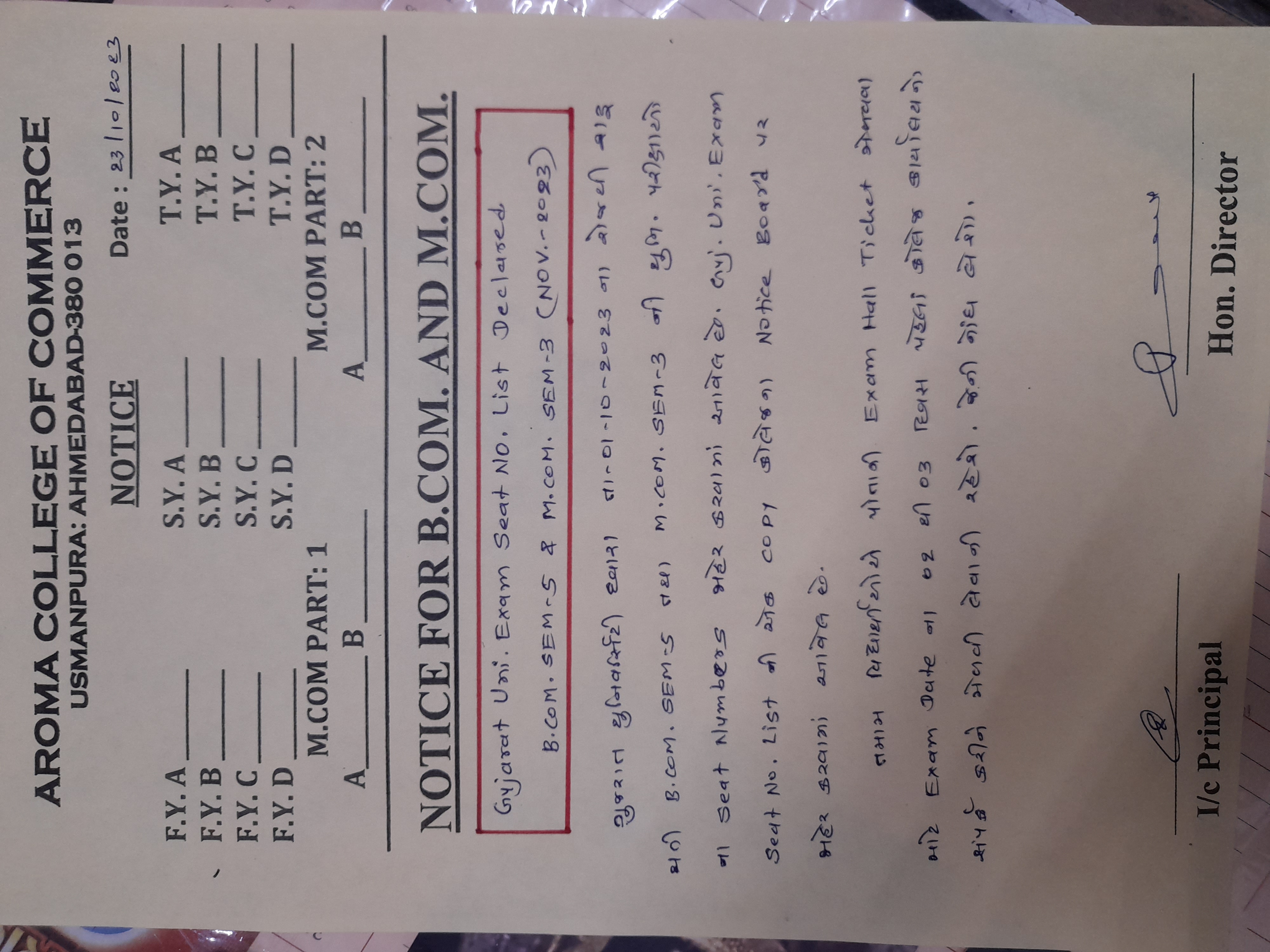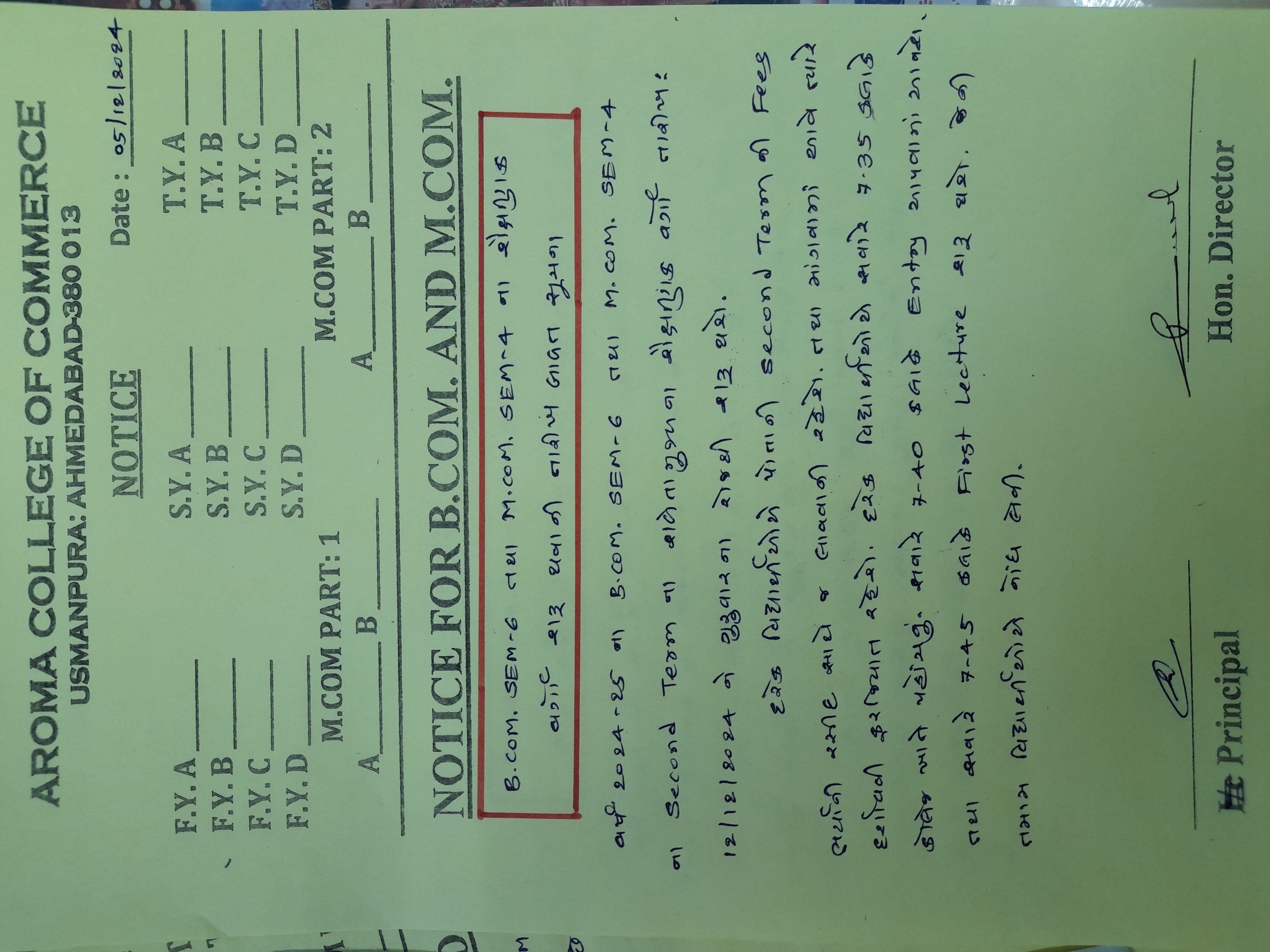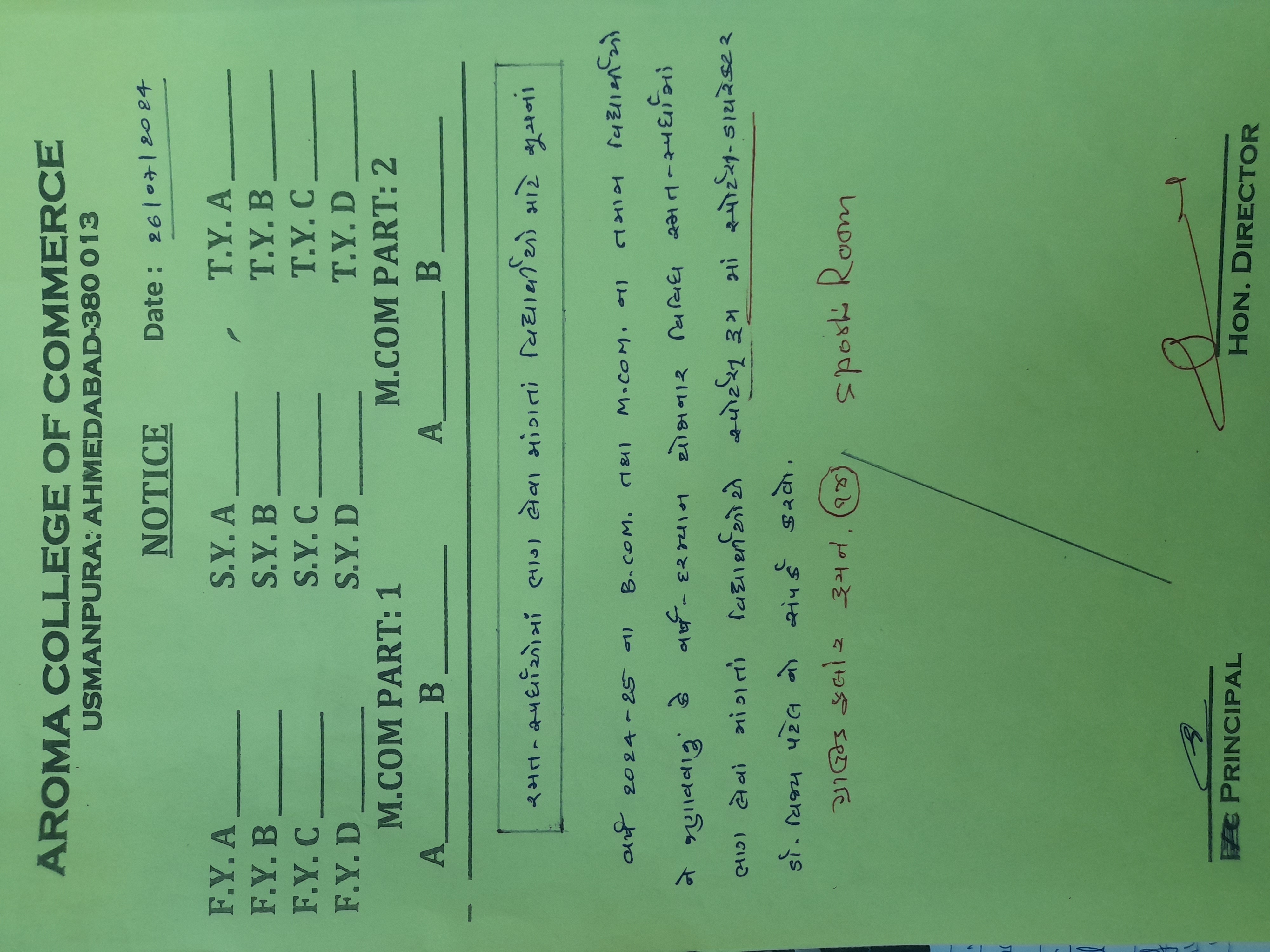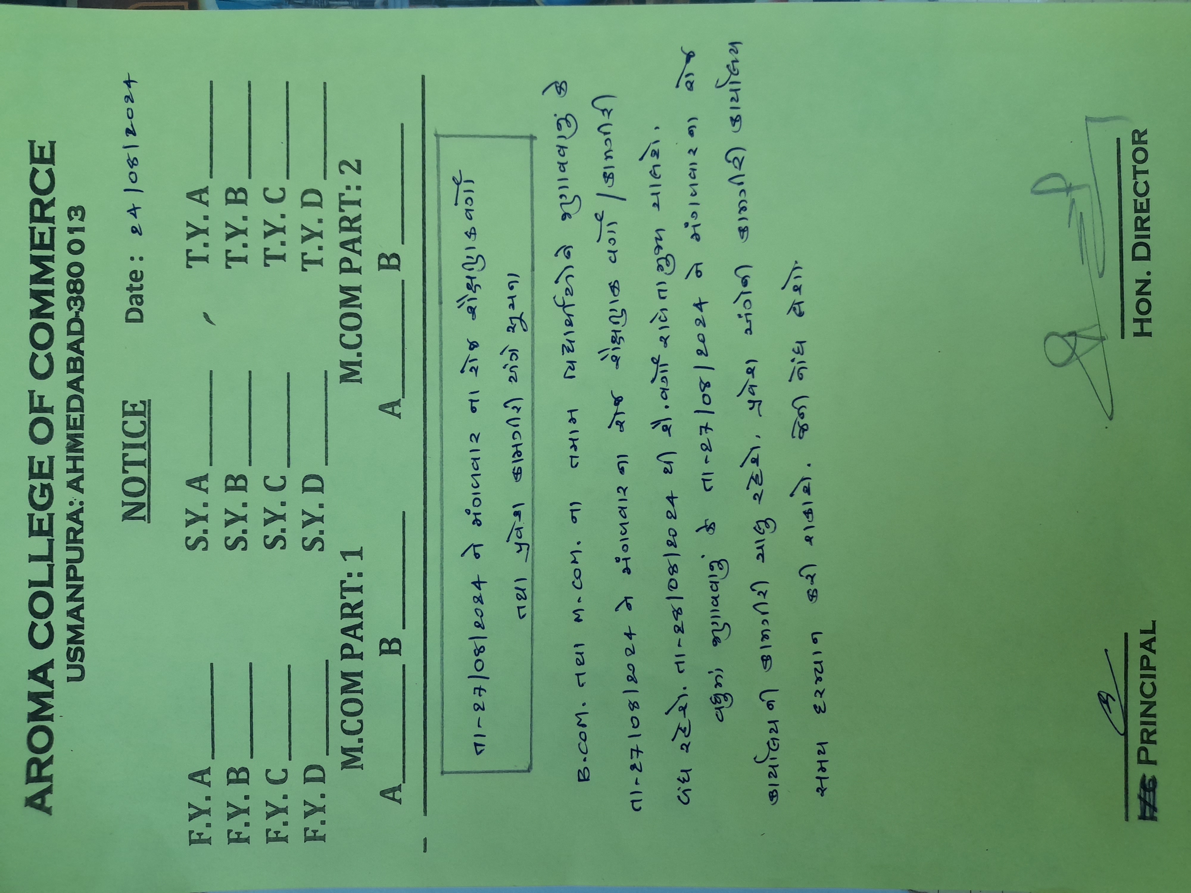 Important Notice: (1) B.com sem-1 Guj Uni Exam Forms for Regular and Repeater students will be declared on website as and when notified. (2)M.com sem-1 Guj Uni Exam Forms for Regular and Repeater students will also be declared on website as and when notified. (3)Assignments submission dates for B.com sem4 ,Bcom sem-6 and Mcom sem-4 will be declared shortly. (4)Do attend online classes regularly. (5) Admission Forms and fees process will complete in current month with late fees.