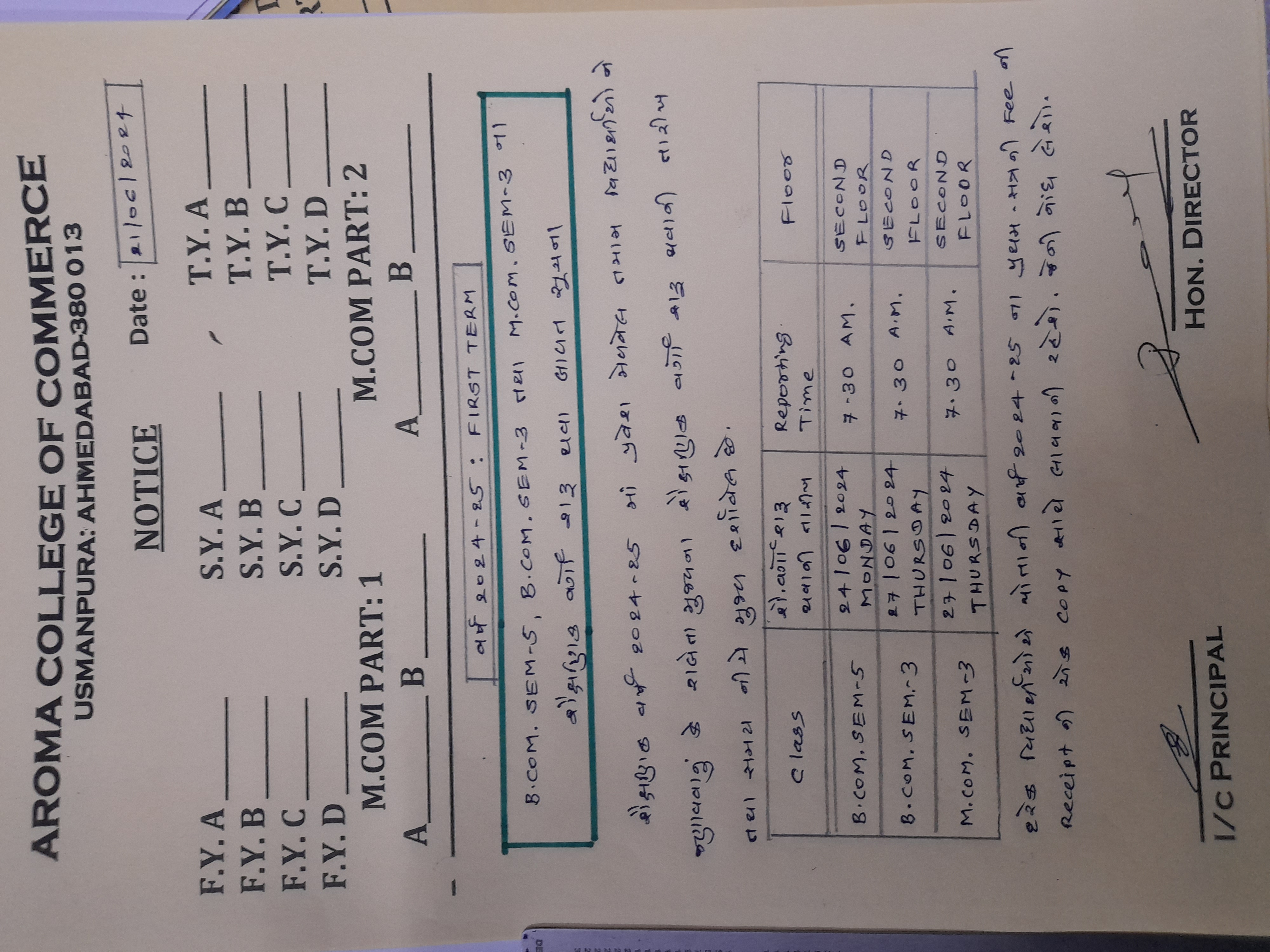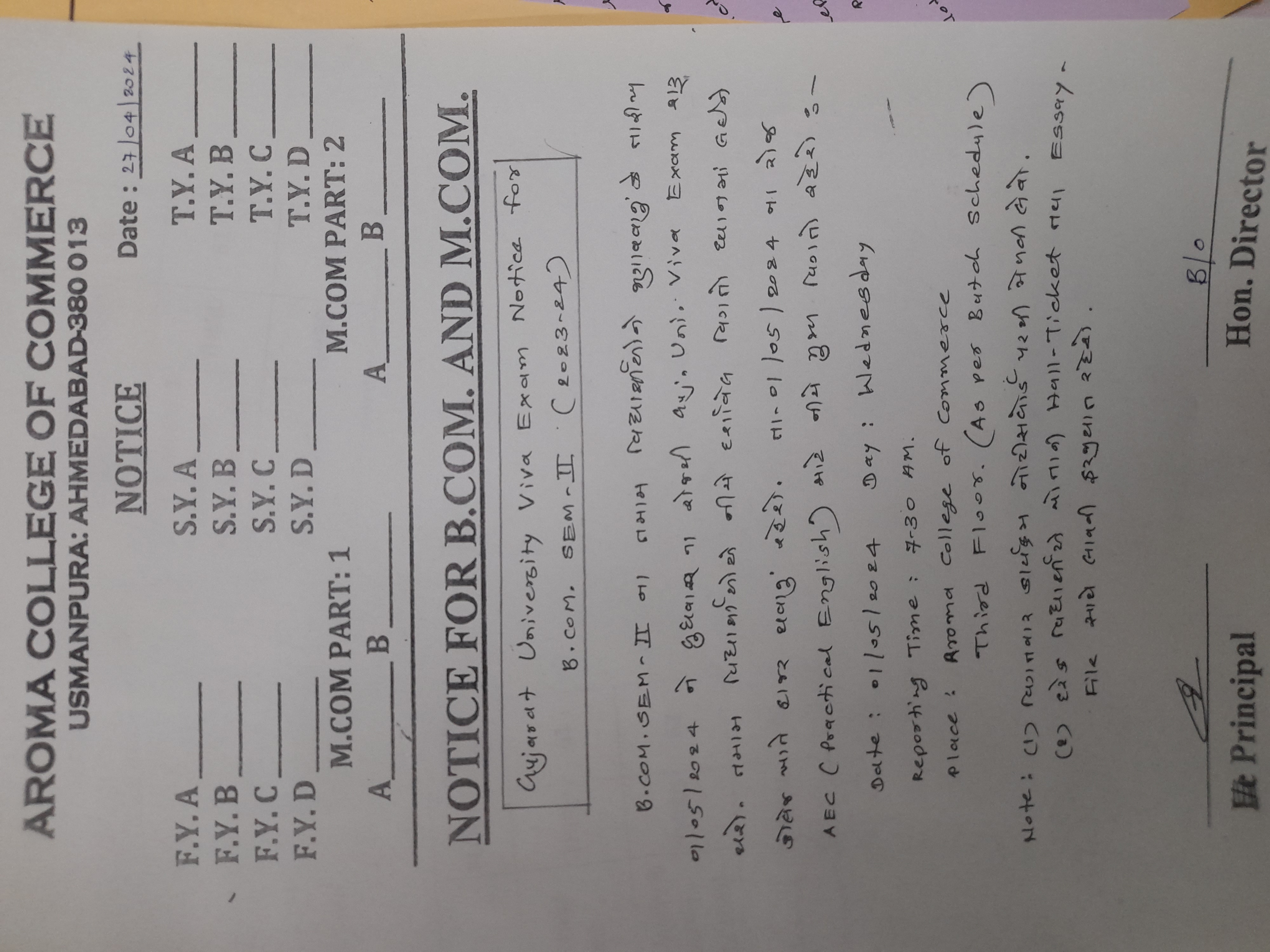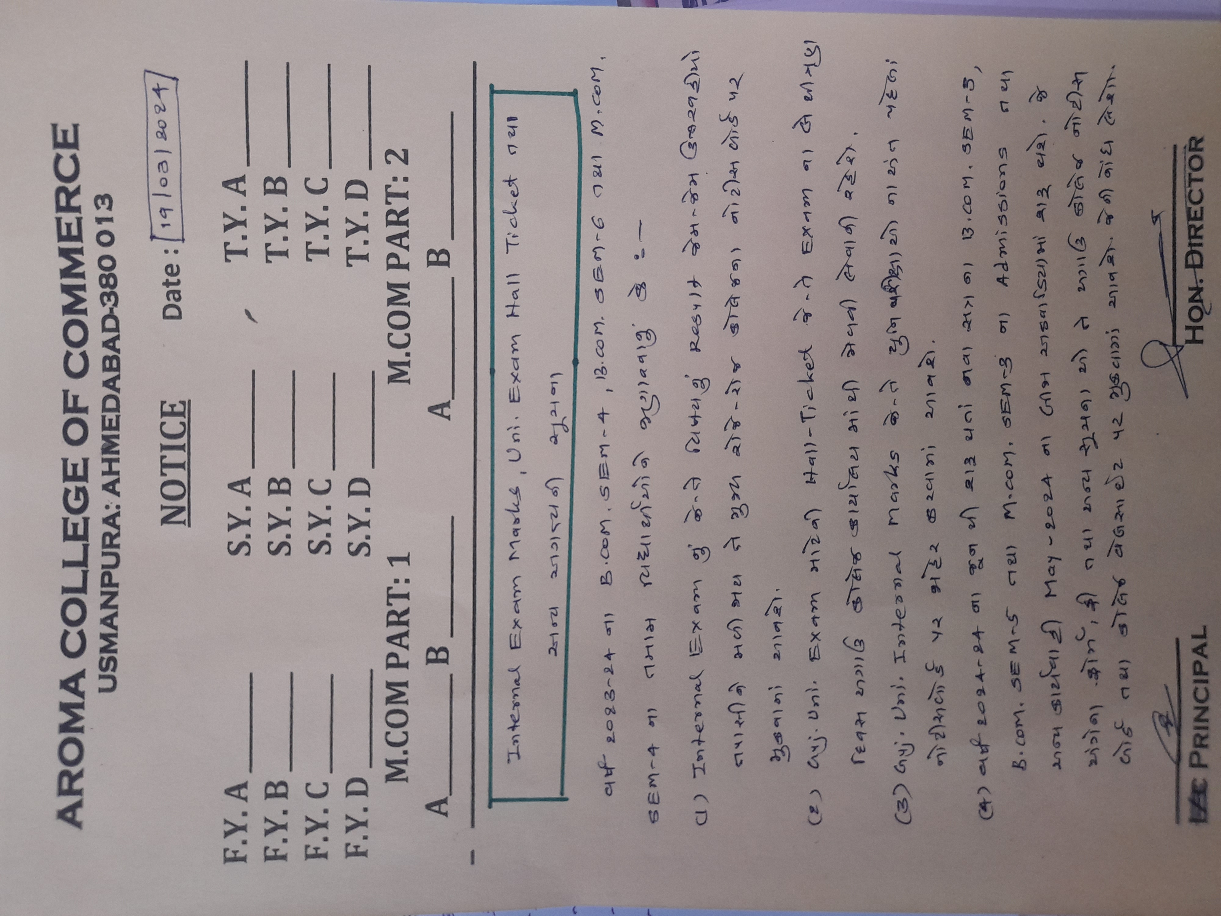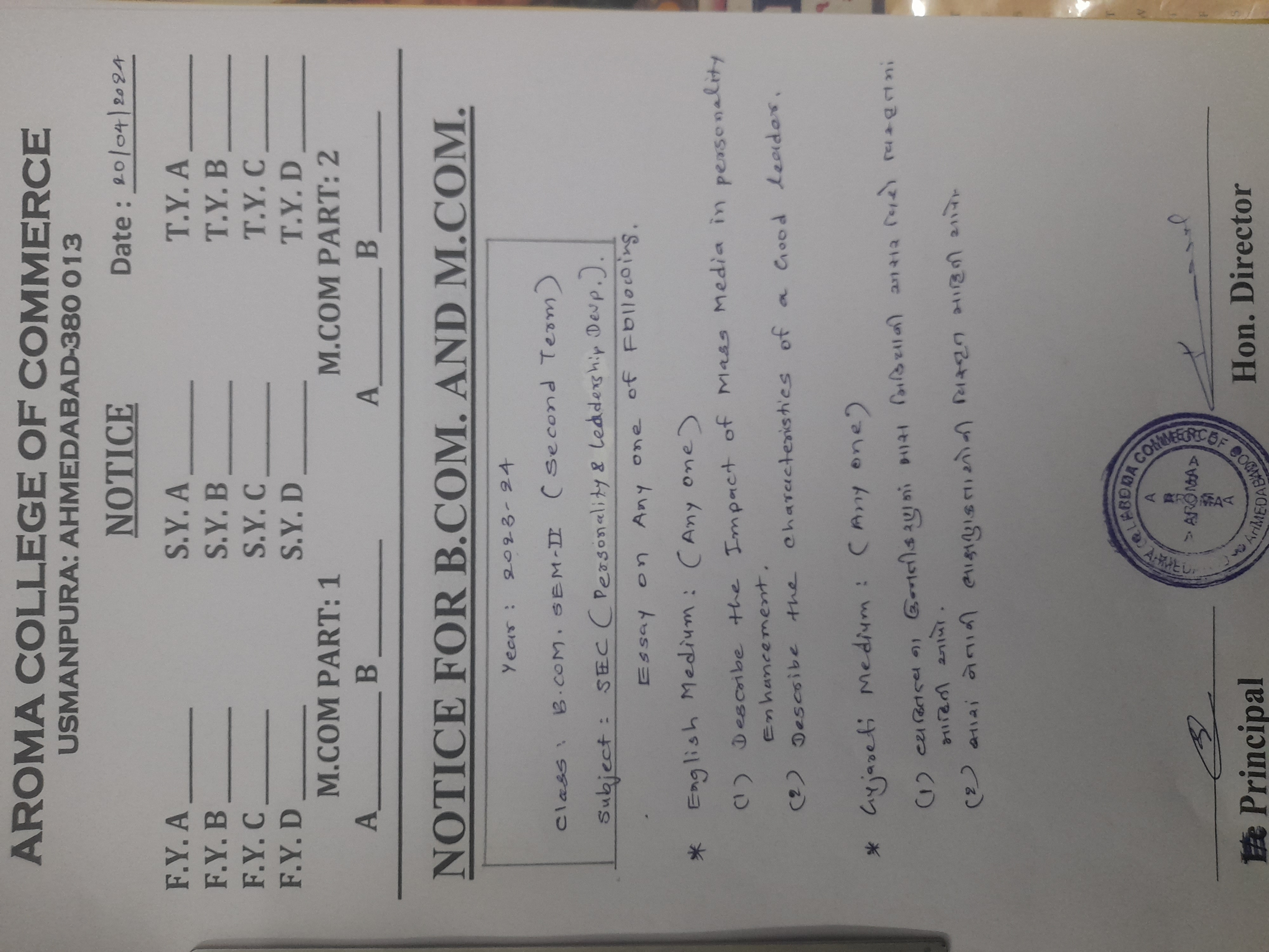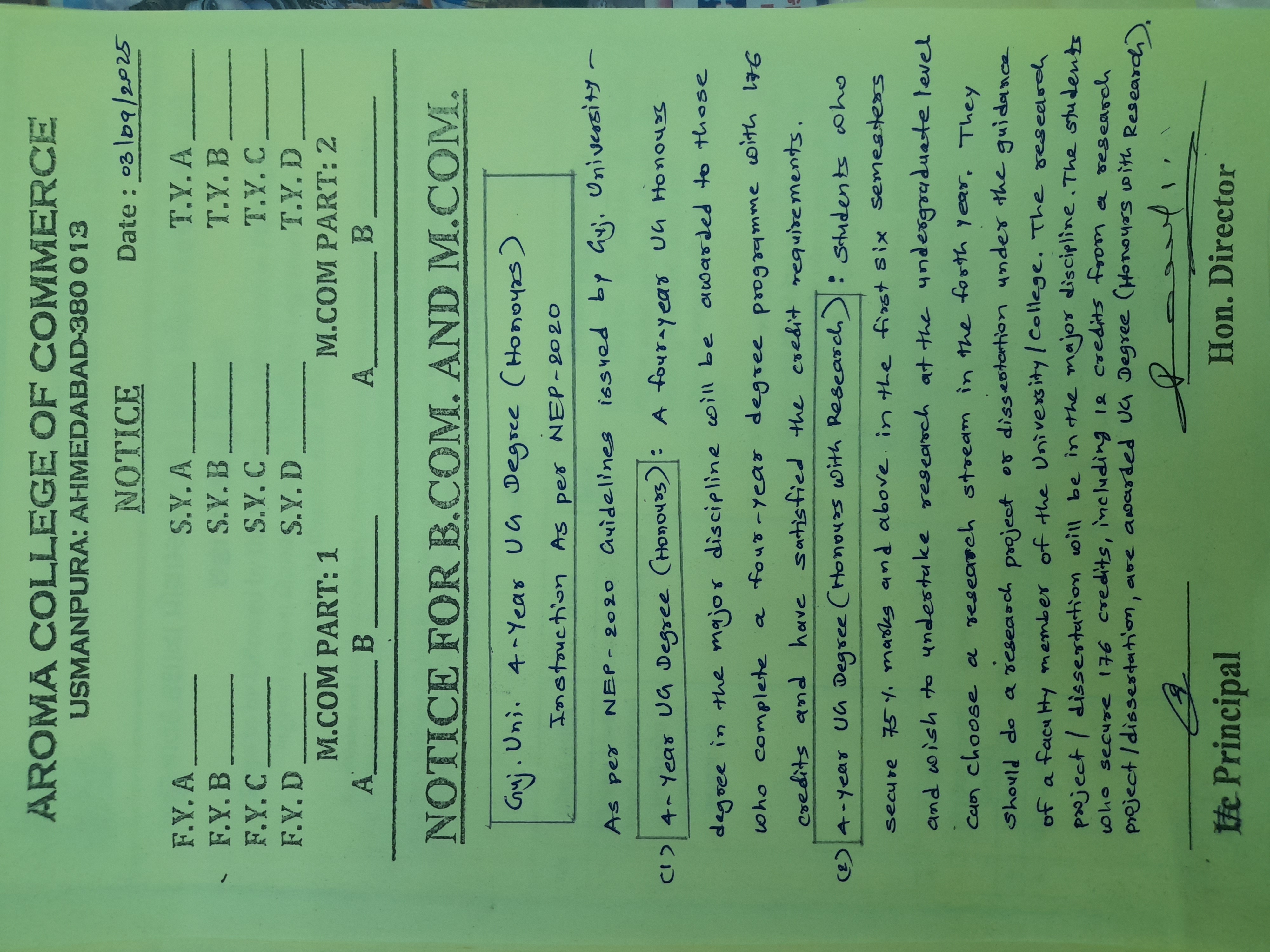 Important Notice: (1) B.com sem-1 Guj Uni Exam Forms for Regular and Repeater students will be declared on website as and when notified. (2)M.com sem-1 Guj Uni Exam Forms for Regular and Repeater students will also be declared on website as and when notified. (3)Assignments submission dates for B.com sem4 ,Bcom sem-6 and Mcom sem-4 will be declared shortly. (4)Do attend online classes regularly. (5) Admission Forms and fees process will complete in current month with late fees.