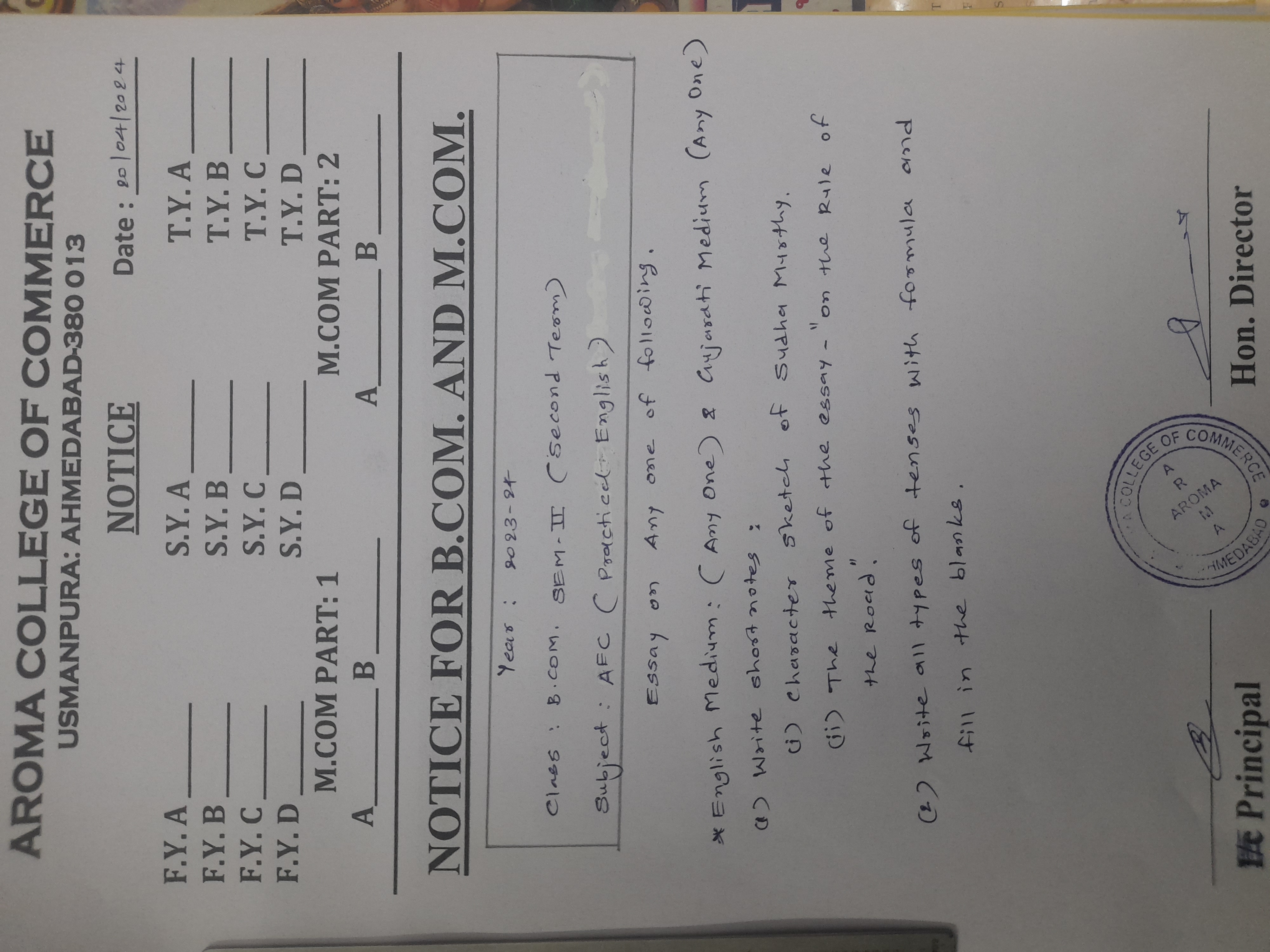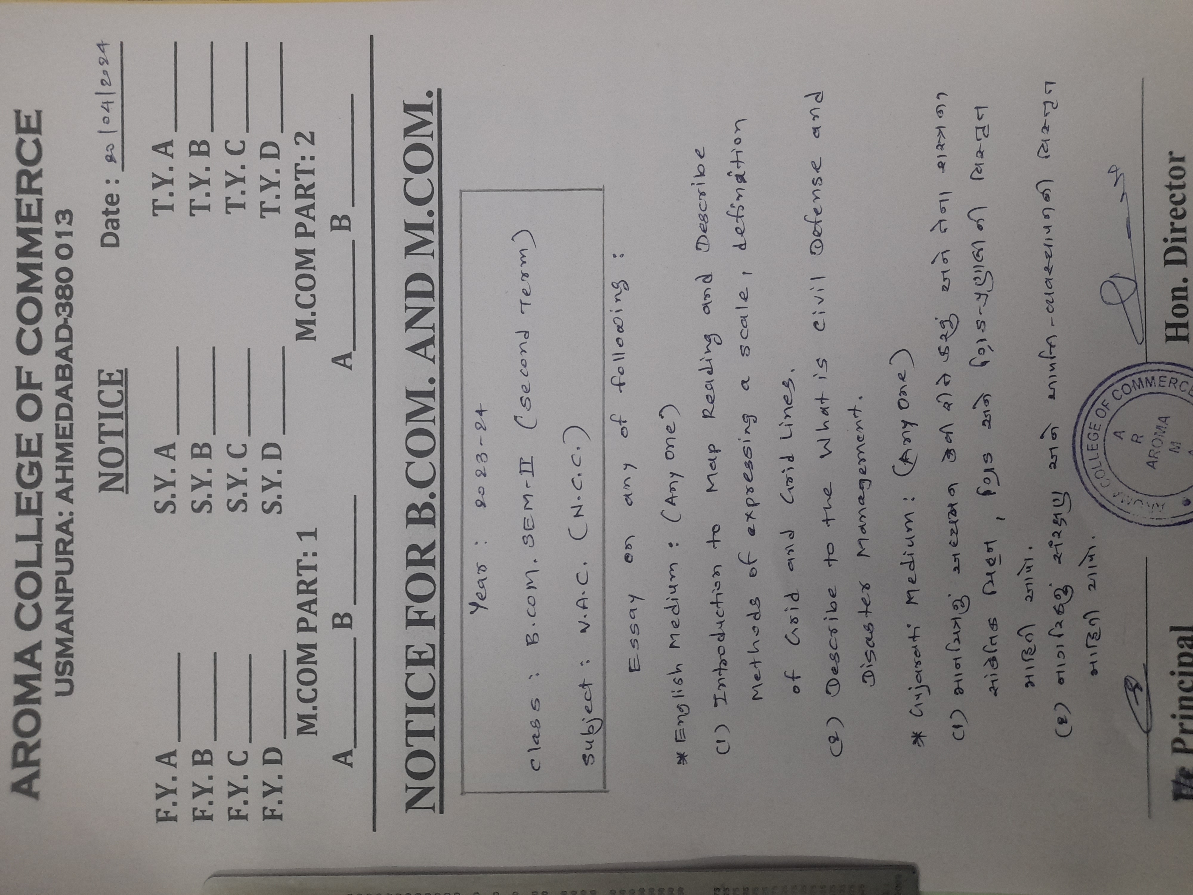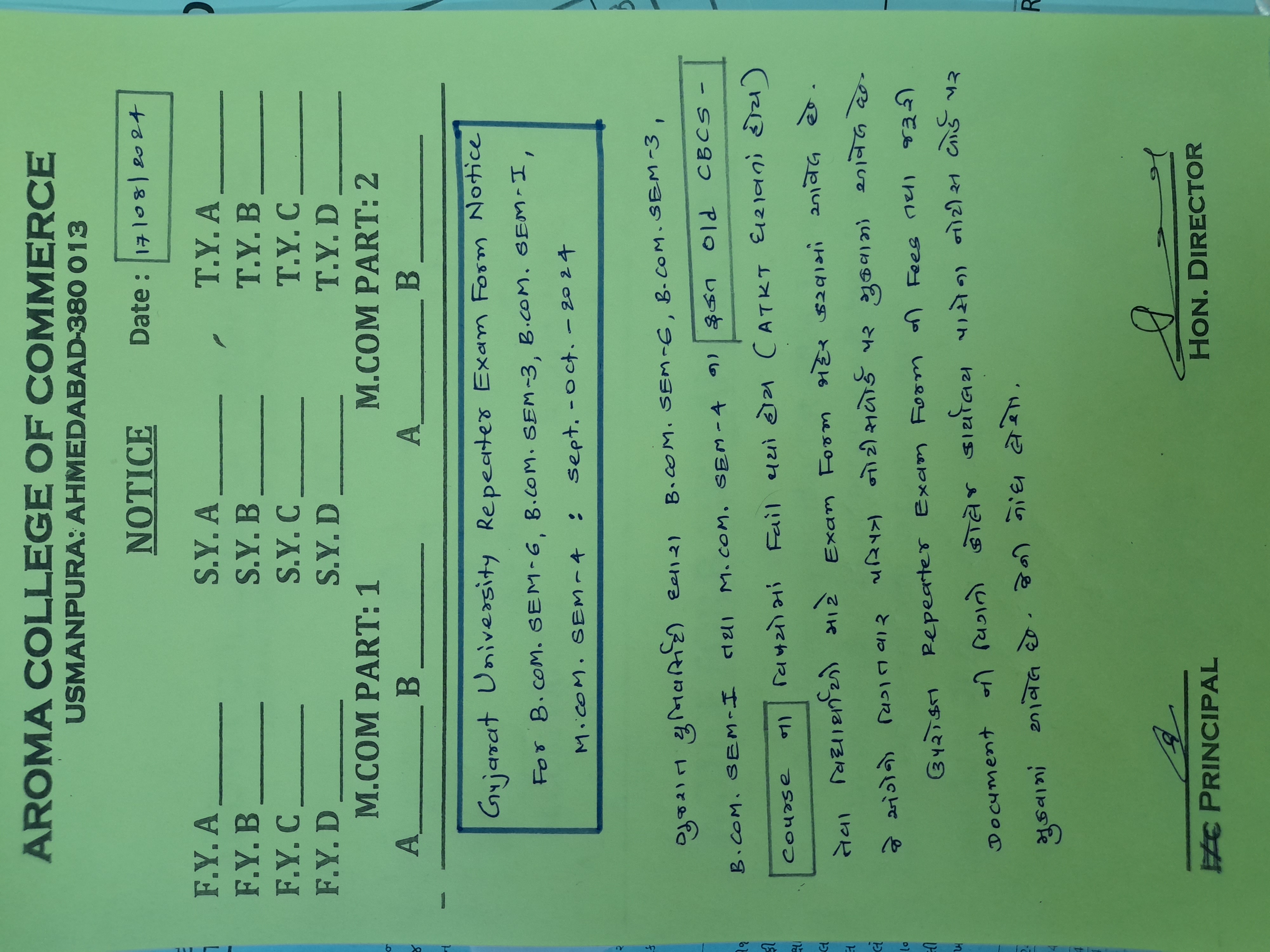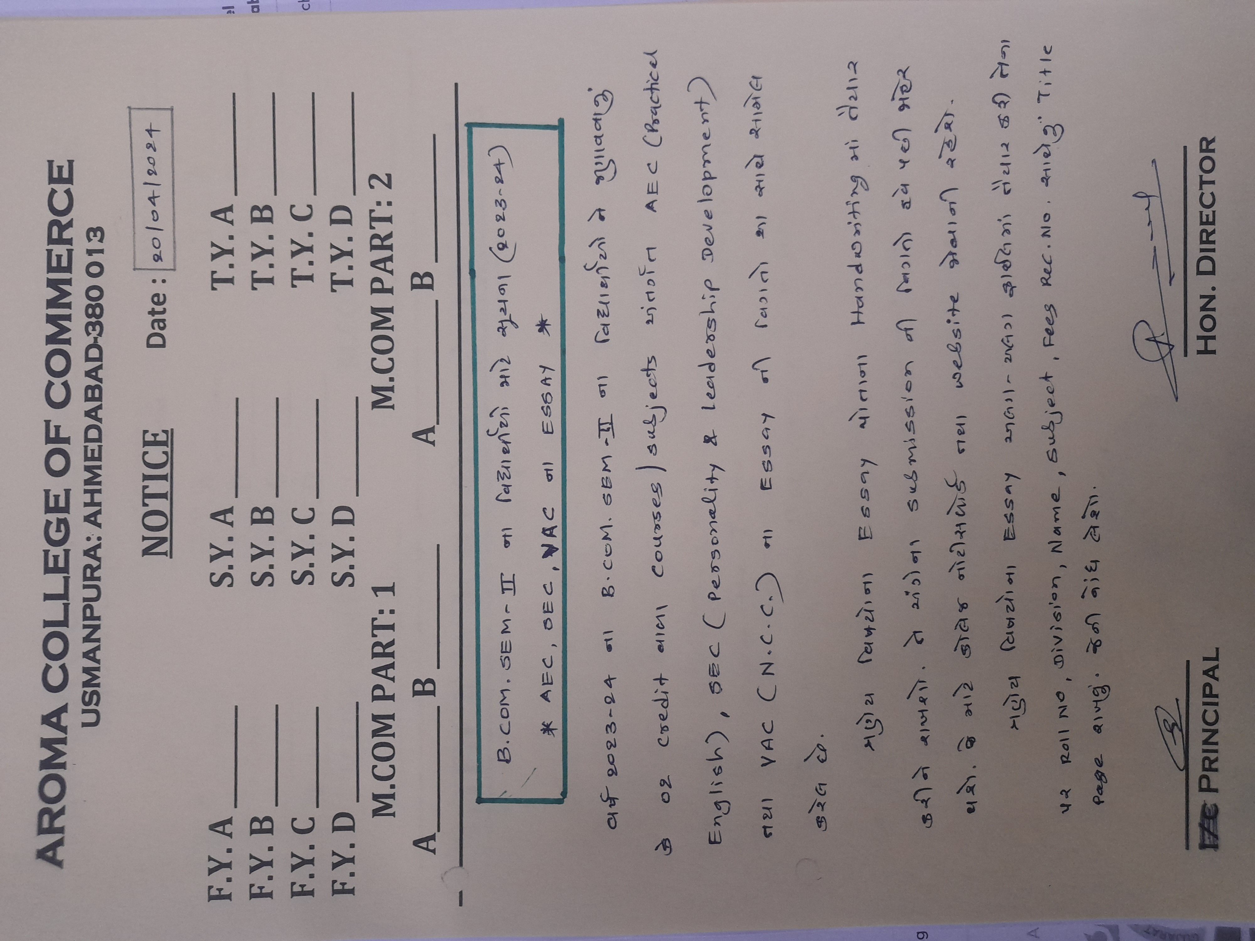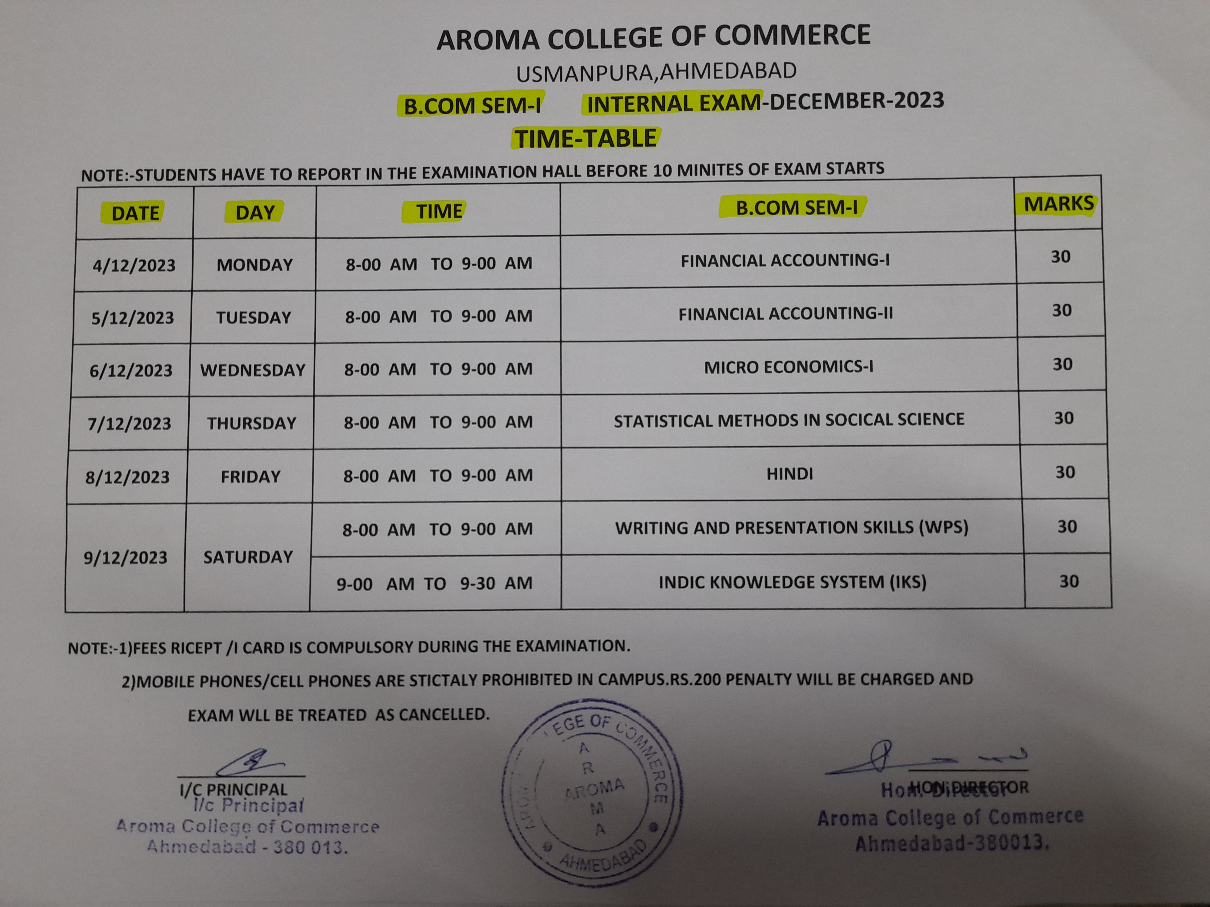 Important Notice: (1) B.com sem-1 Guj Uni Exam Forms for Regular and Repeater students will be declared on website as and when notified. (2)M.com sem-1 Guj Uni Exam Forms for Regular and Repeater students will also be declared on website as and when notified. (3)Assignments submission dates for B.com sem4 ,Bcom sem-6 and Mcom sem-4 will be declared shortly. (4)Do attend online classes regularly. (5) Admission Forms and fees process will complete in current month with late fees.