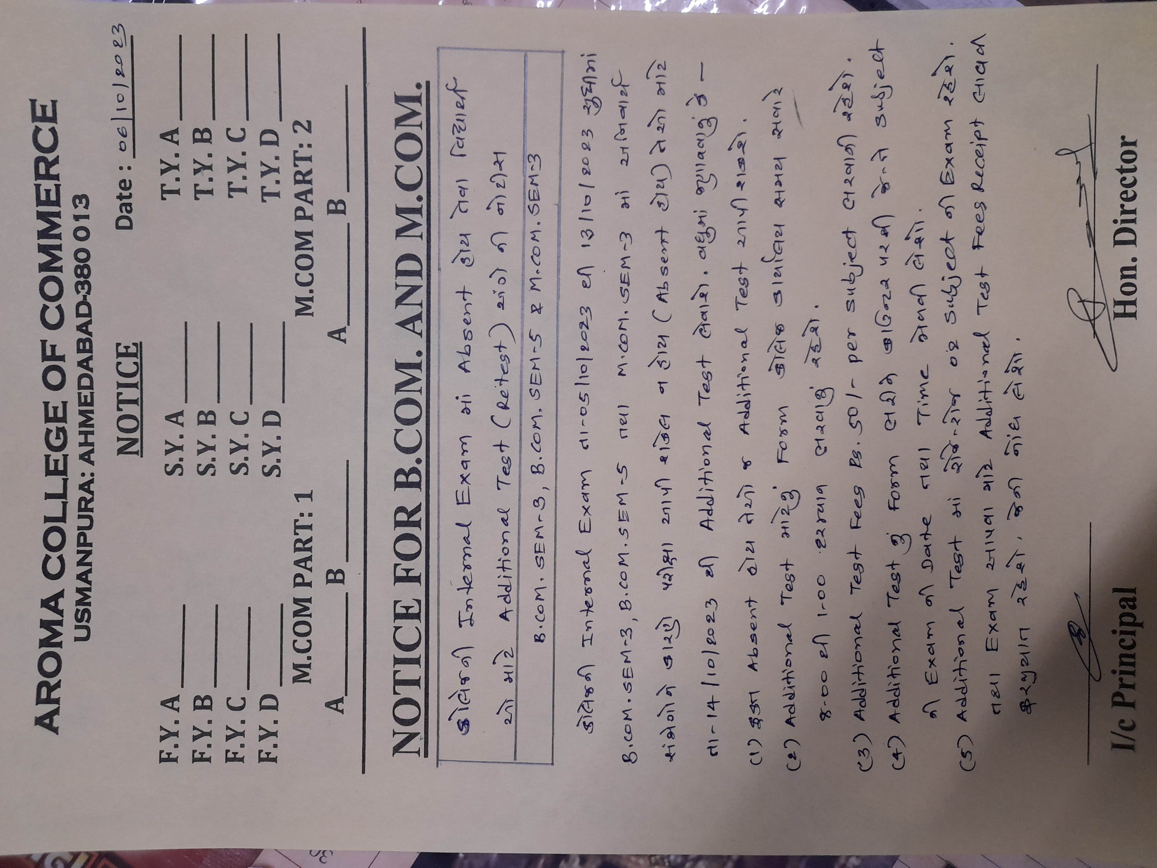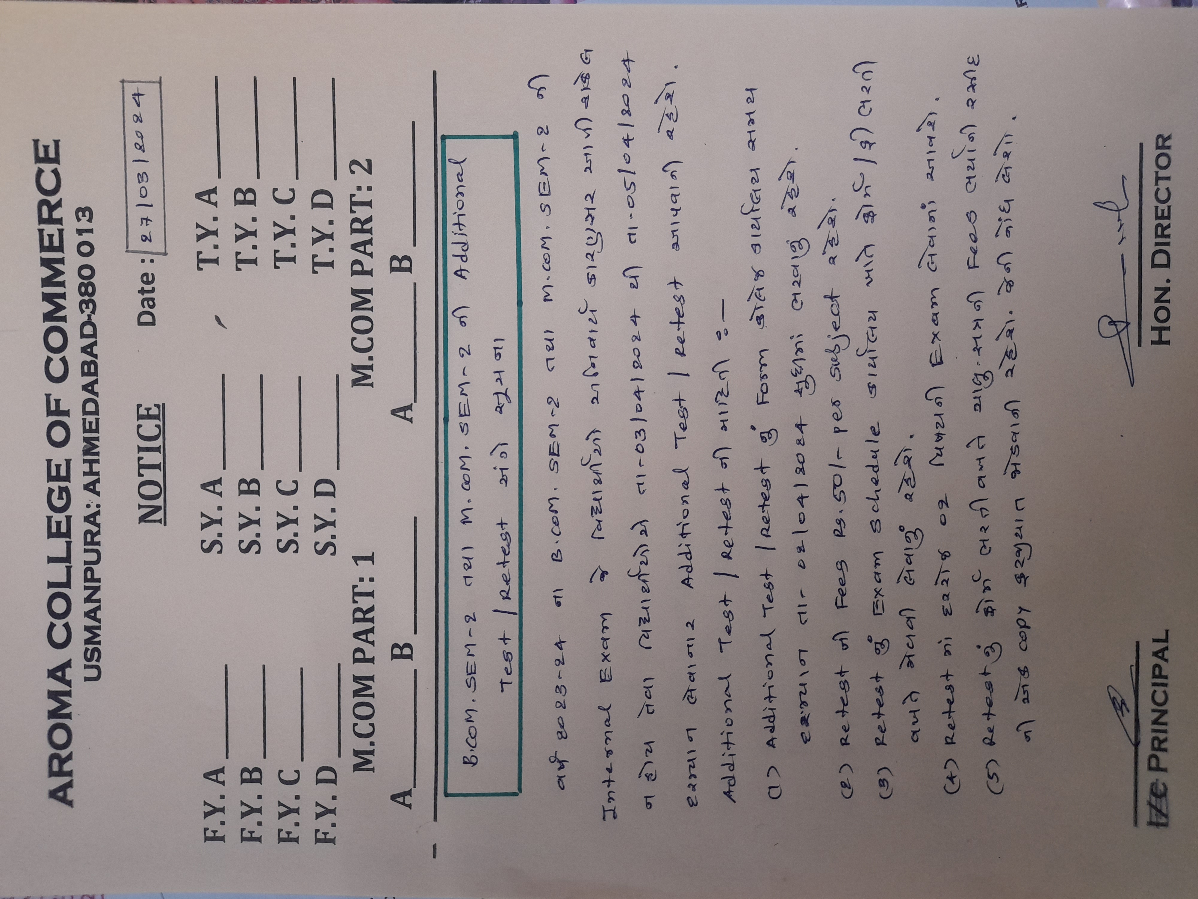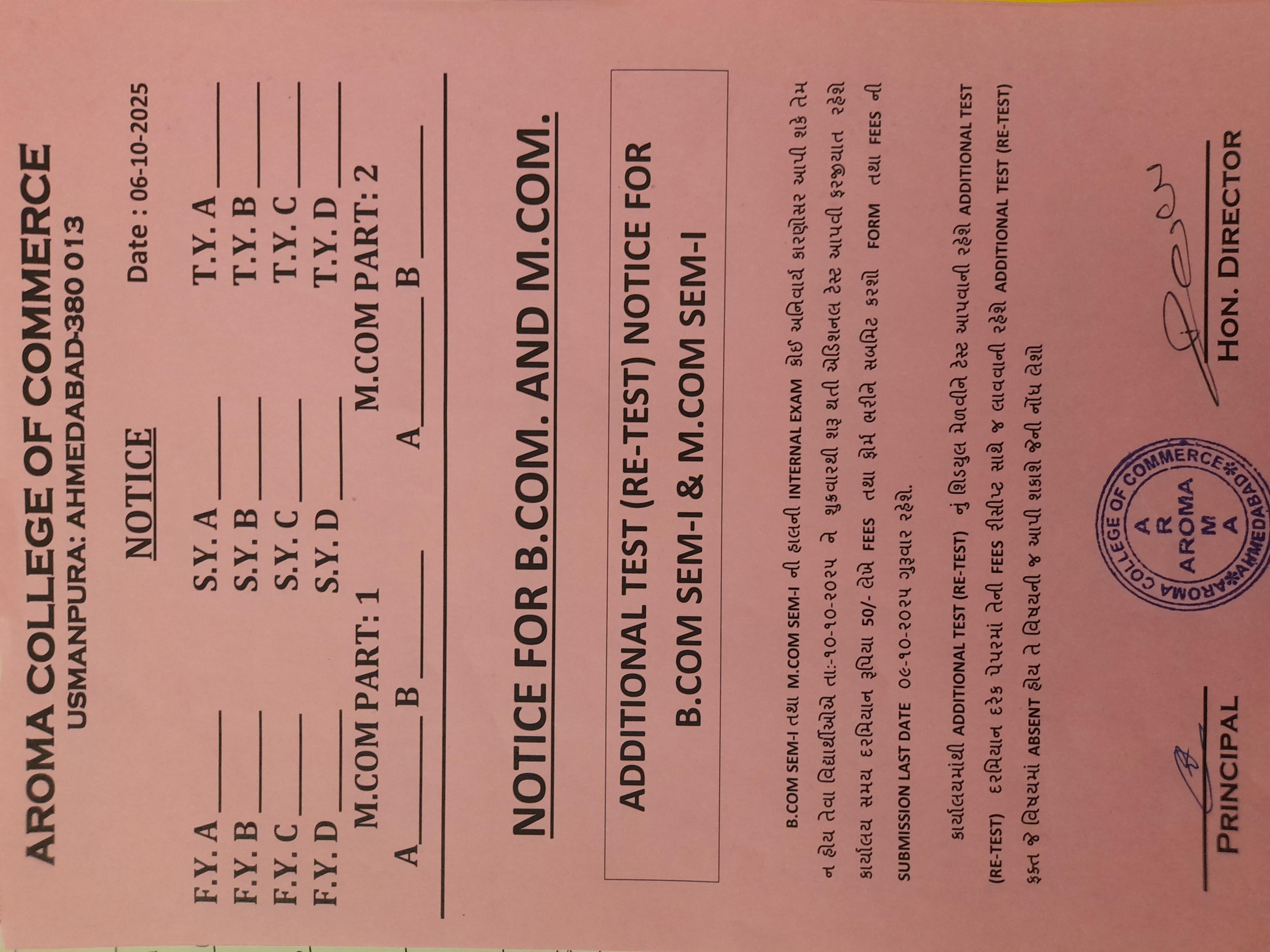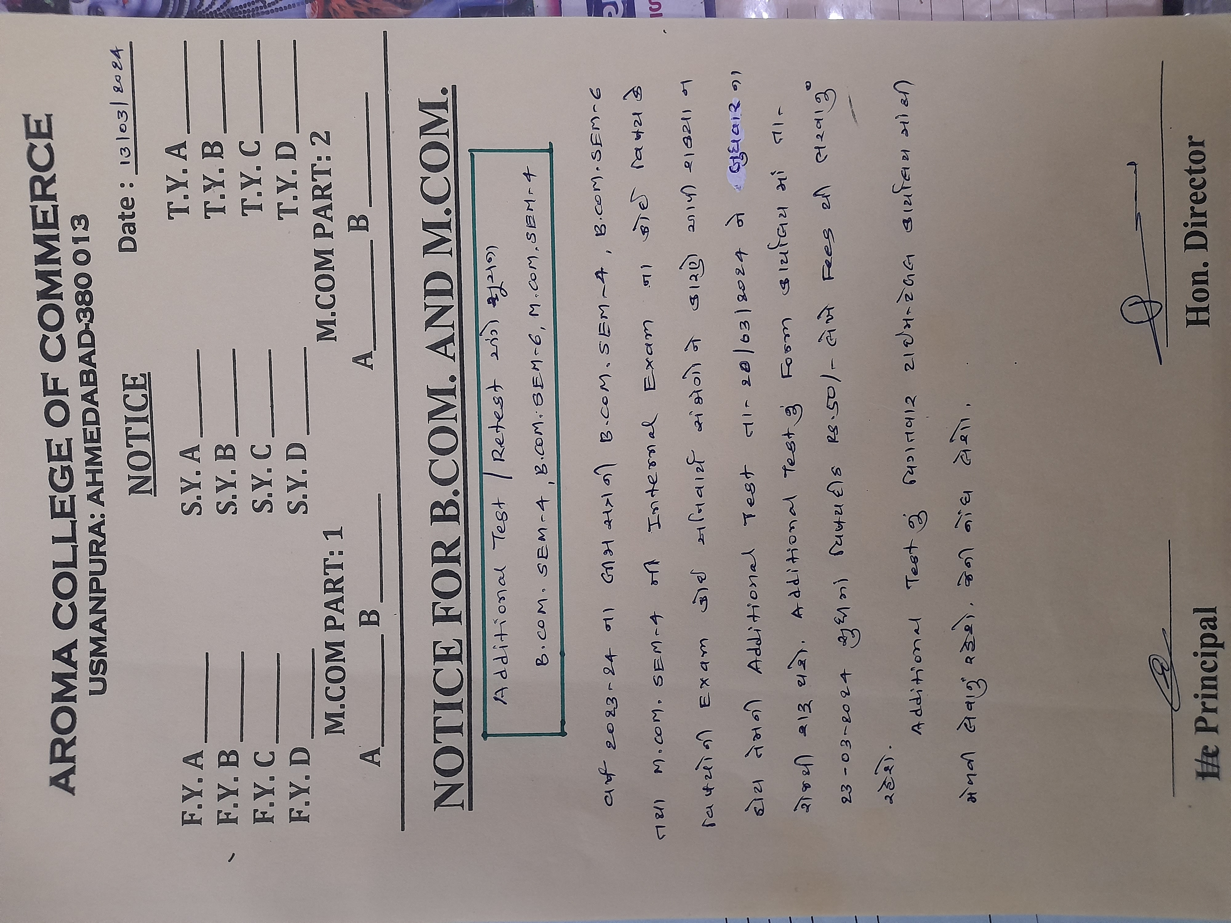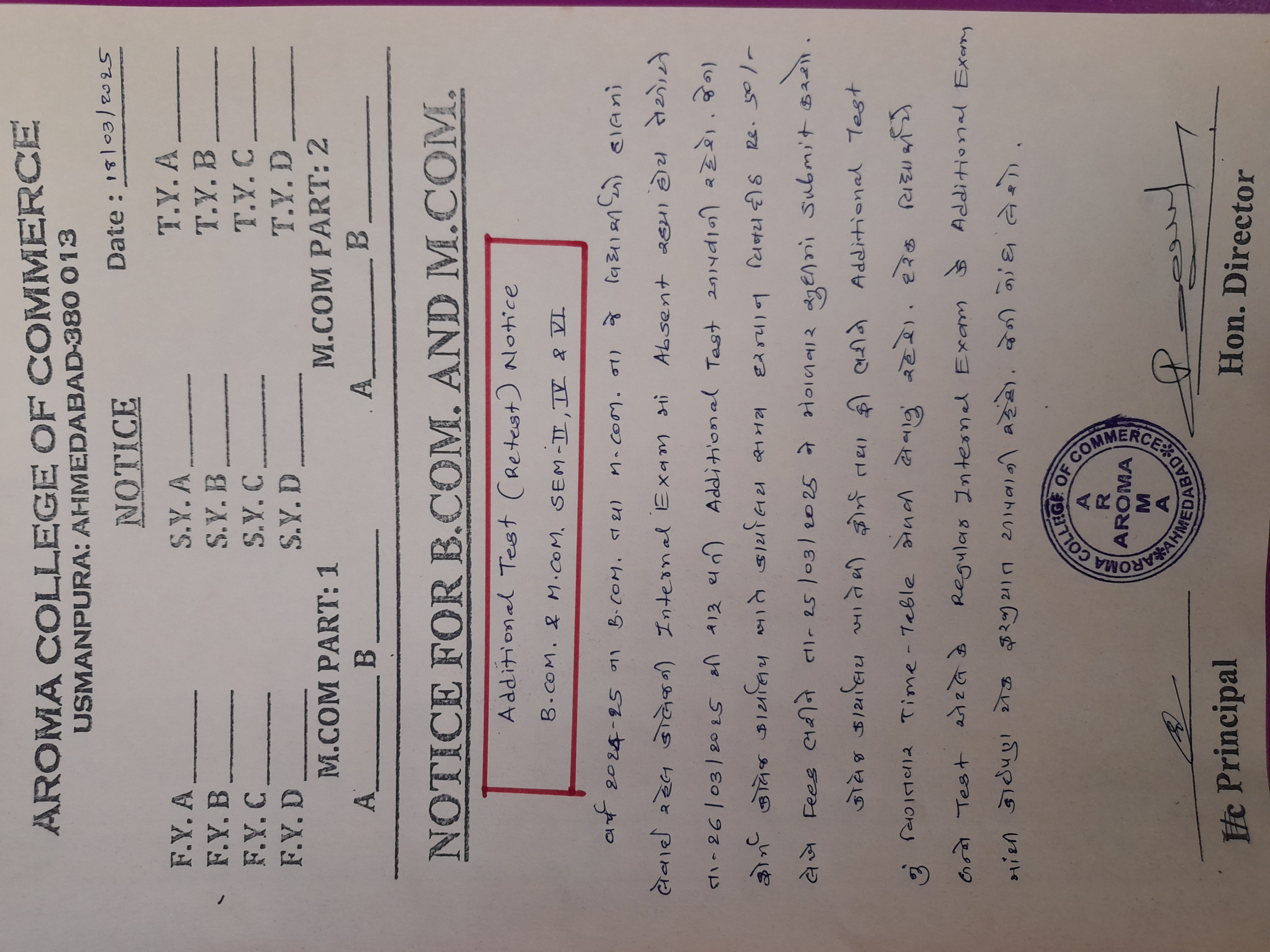 Additional Test notice for B.com sem-1 and Mcom Sem-1