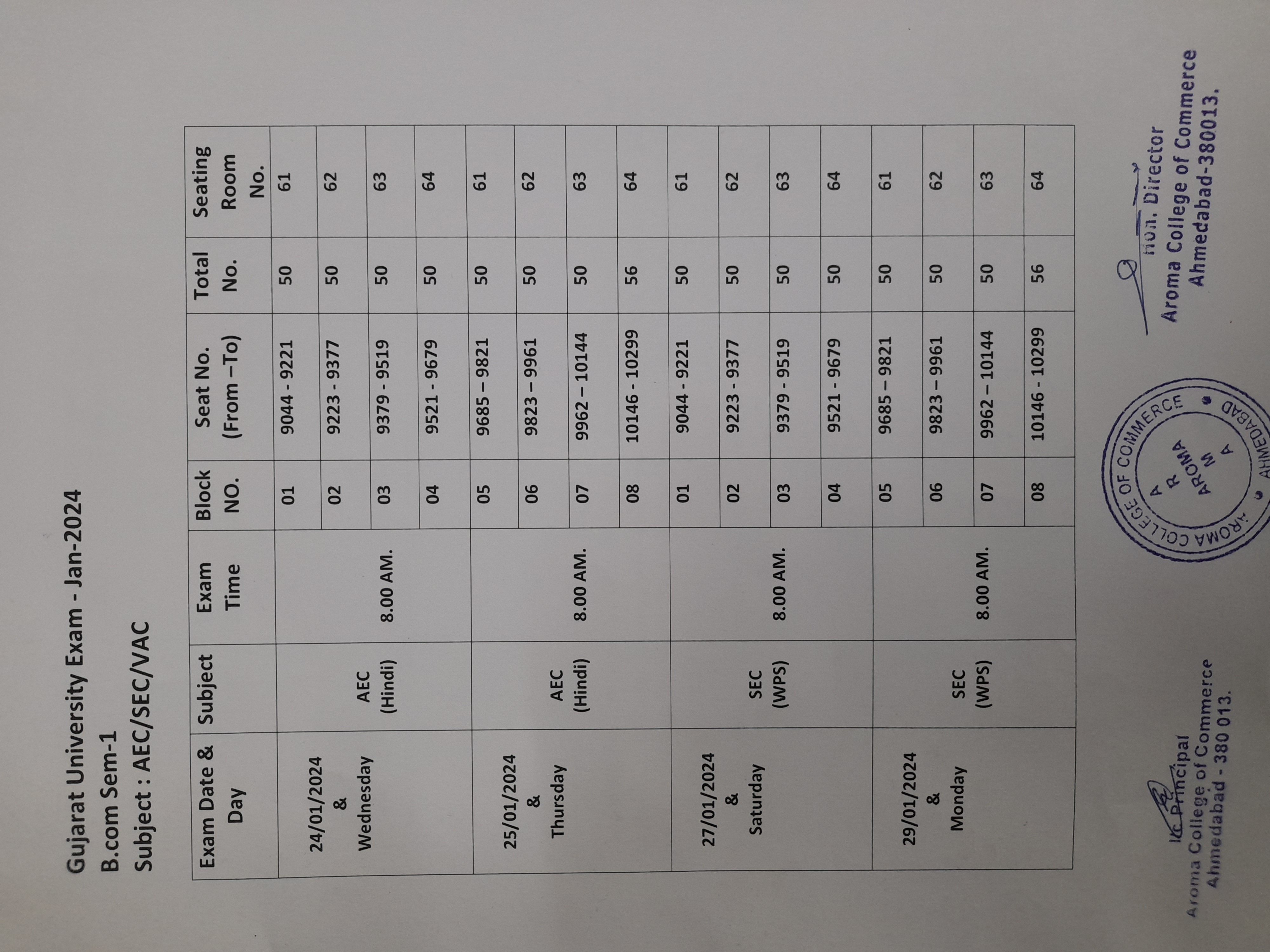 Seat Number List declared for Guj uni B.com sem-2 Exam-(Exam Date: 07/06/2022)