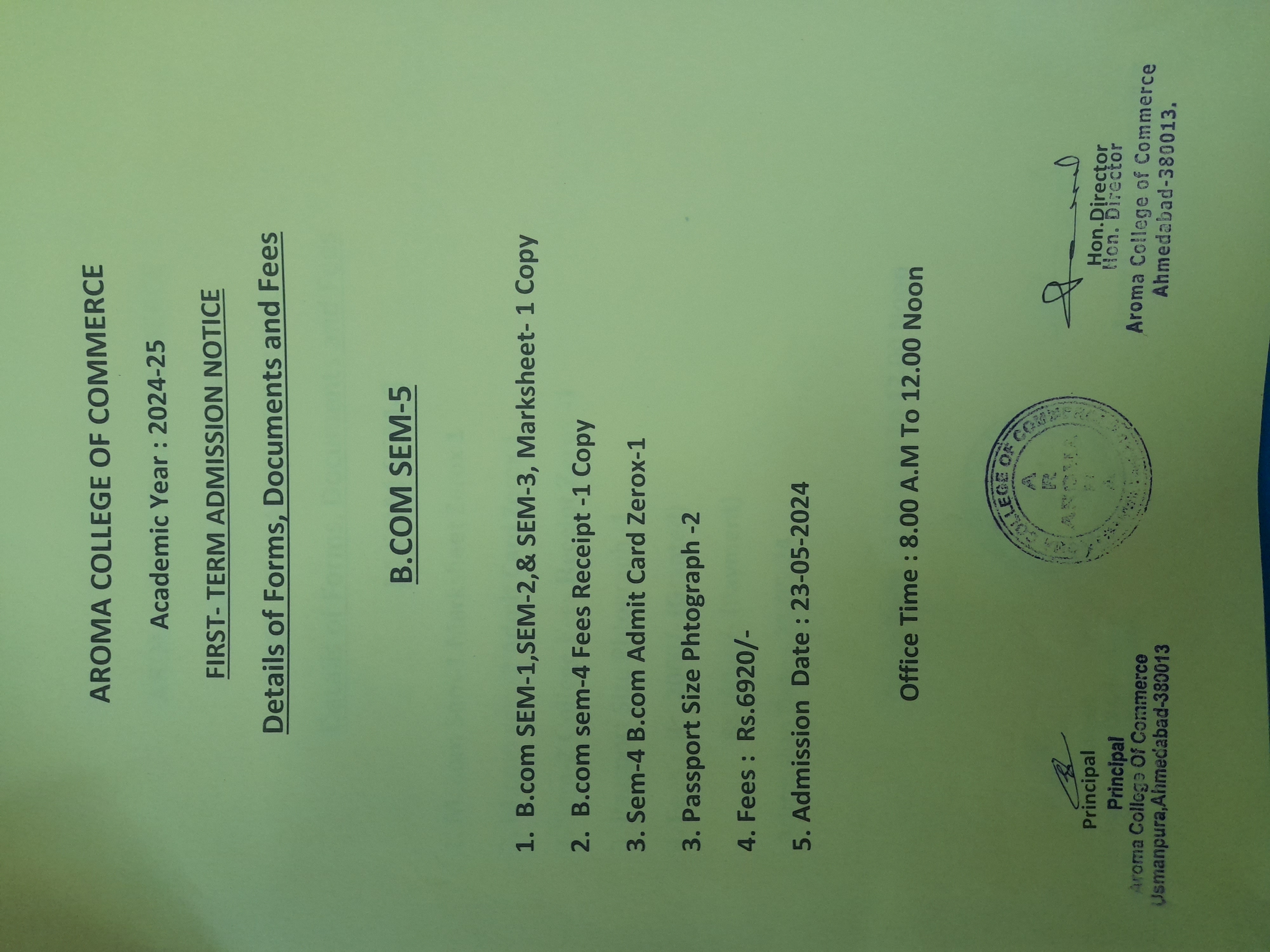 First Term Admissions Notice: Academic year 2022-23 Bcom Sem-5