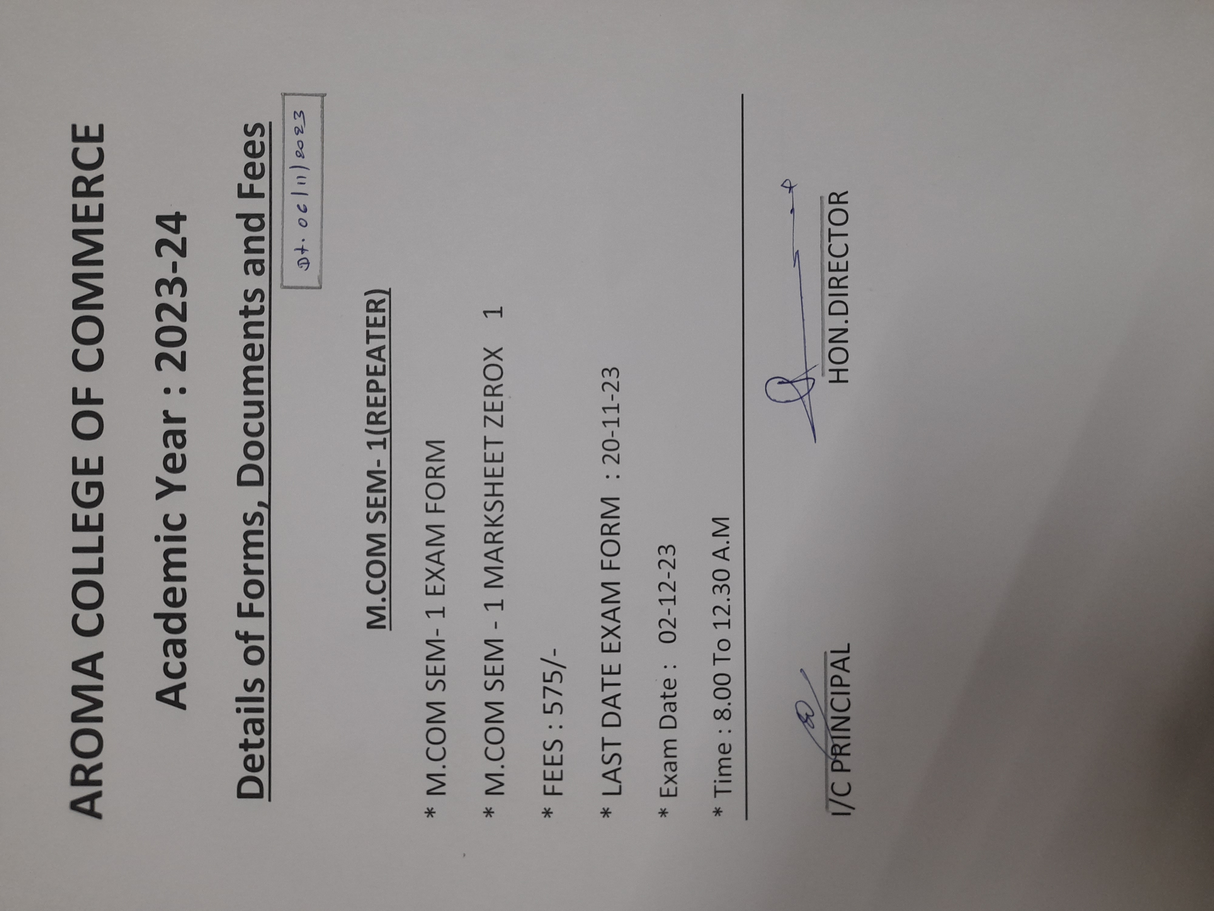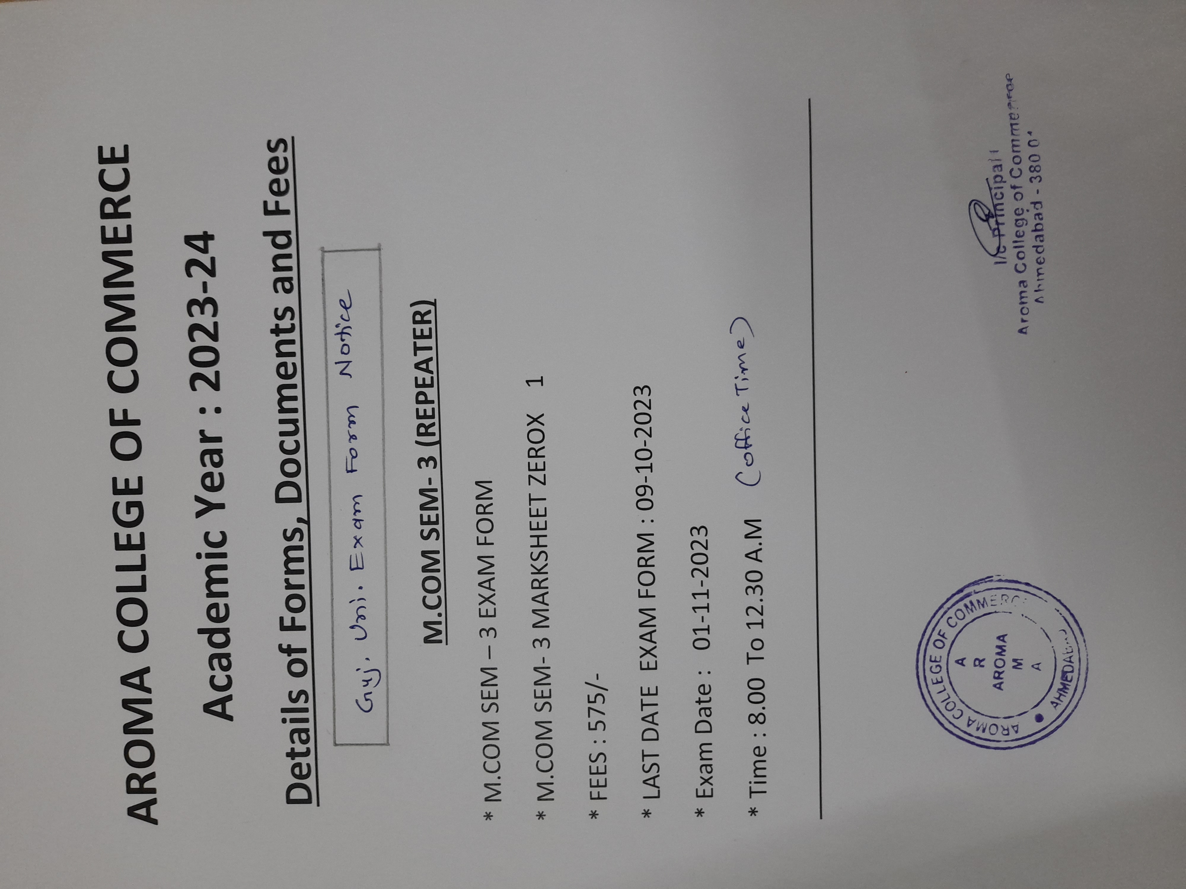 Admission Forms and fees notice for B.com sem-3,B.COM SEM-5 and M.COM SEM-3