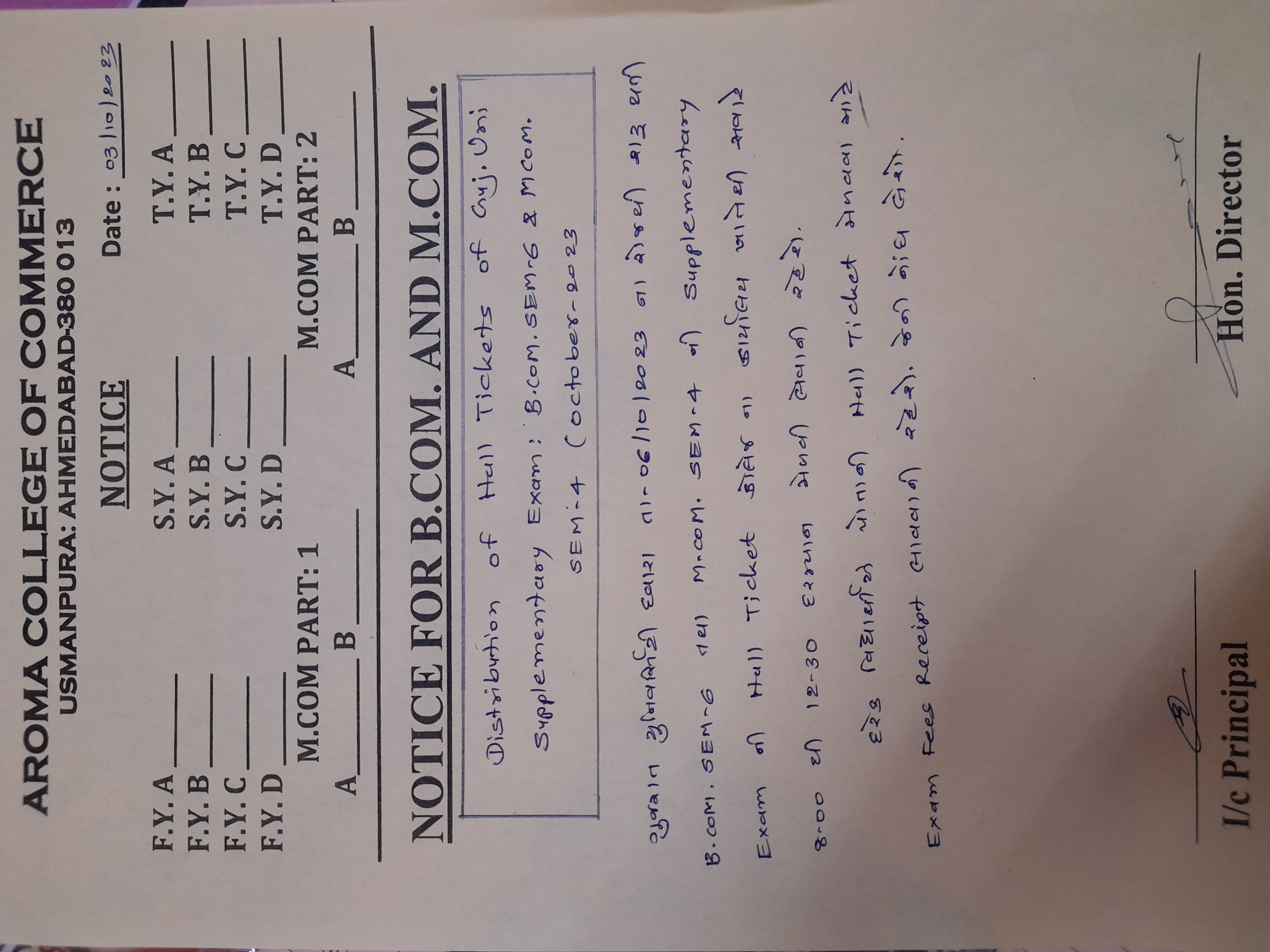 Hall ticket instructions :(for Bcom sem5 and MCOM.SEM-3 Guj uni Supplementary exam starts from 10/05/22): Collect your uni exam hall ticket from college office between 8-30 am to 11-30am.