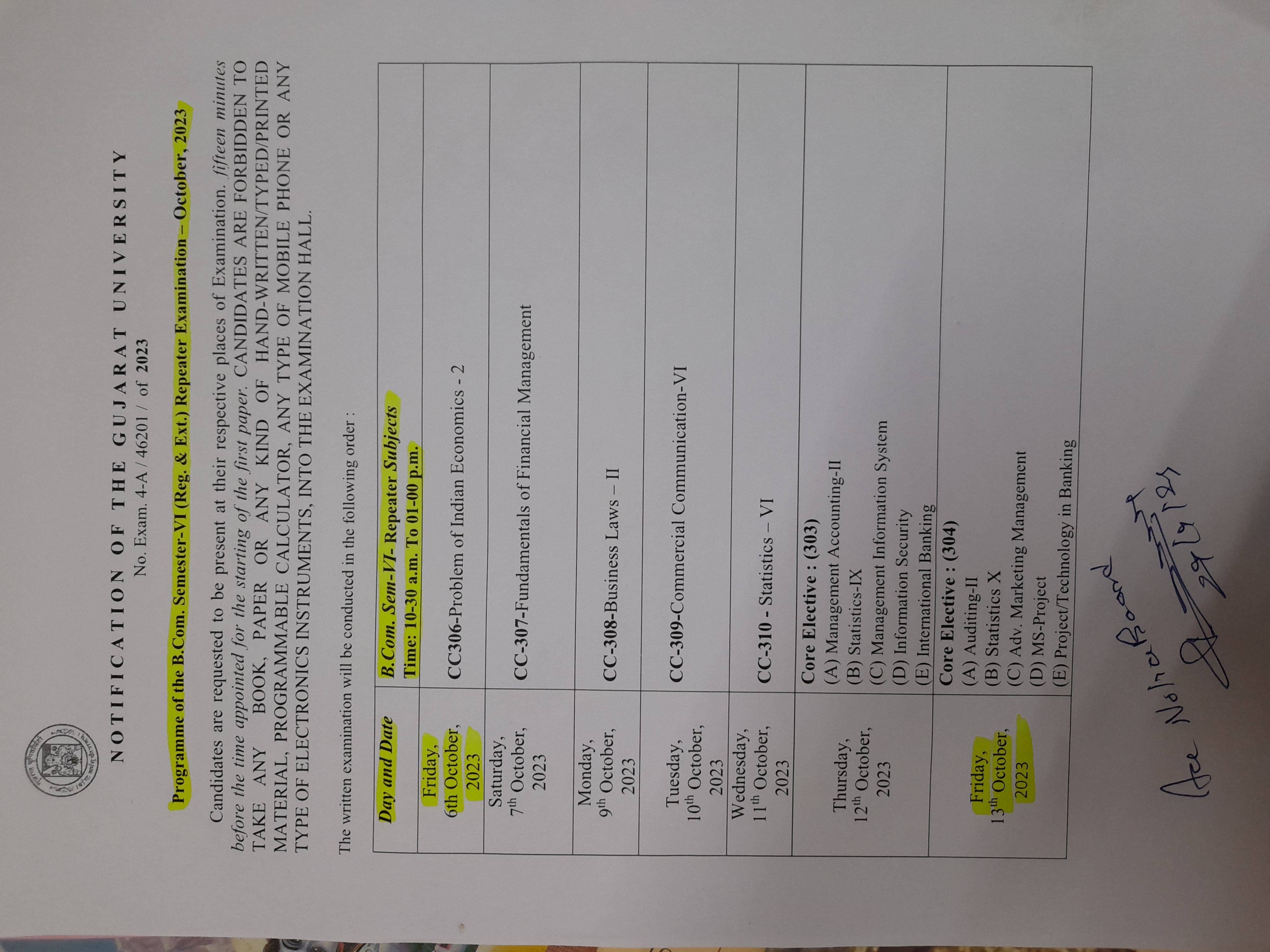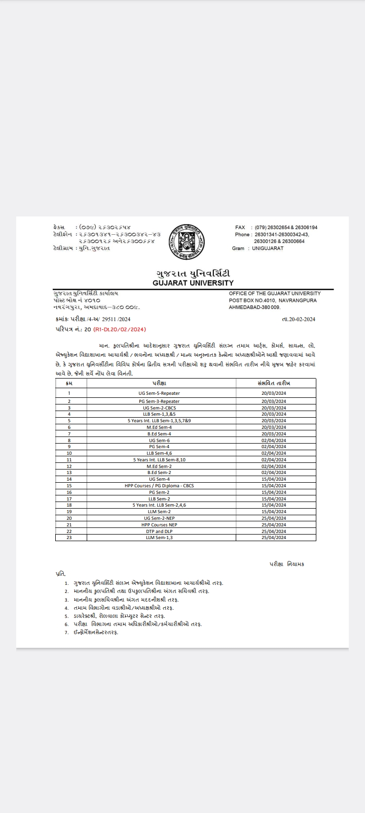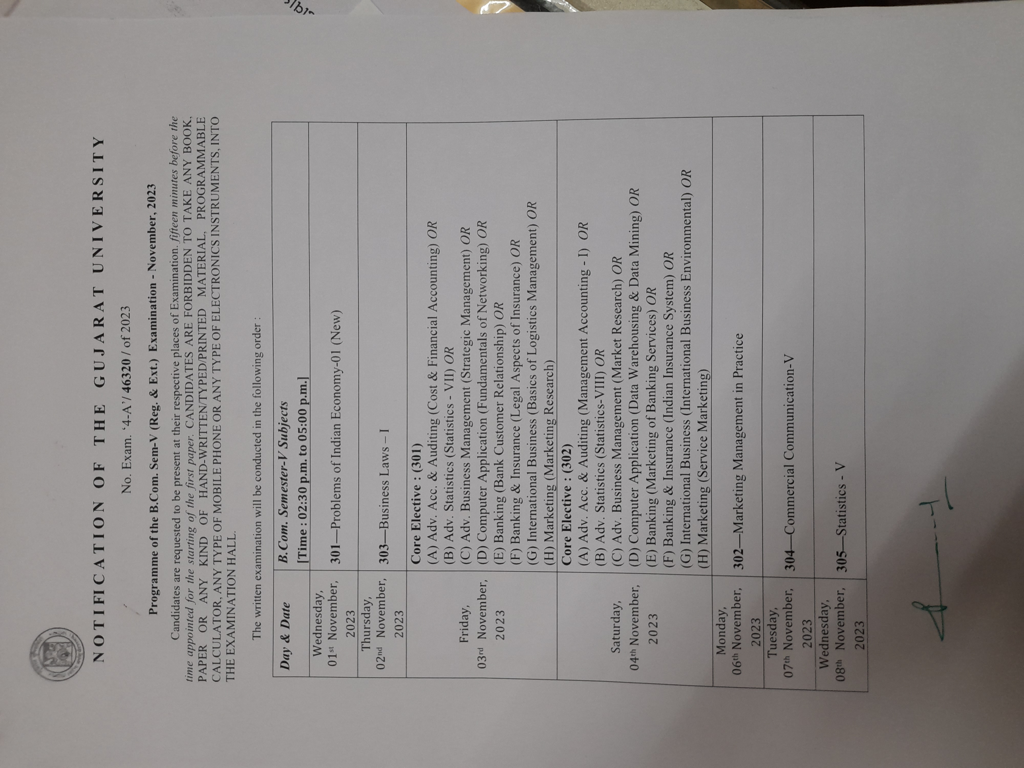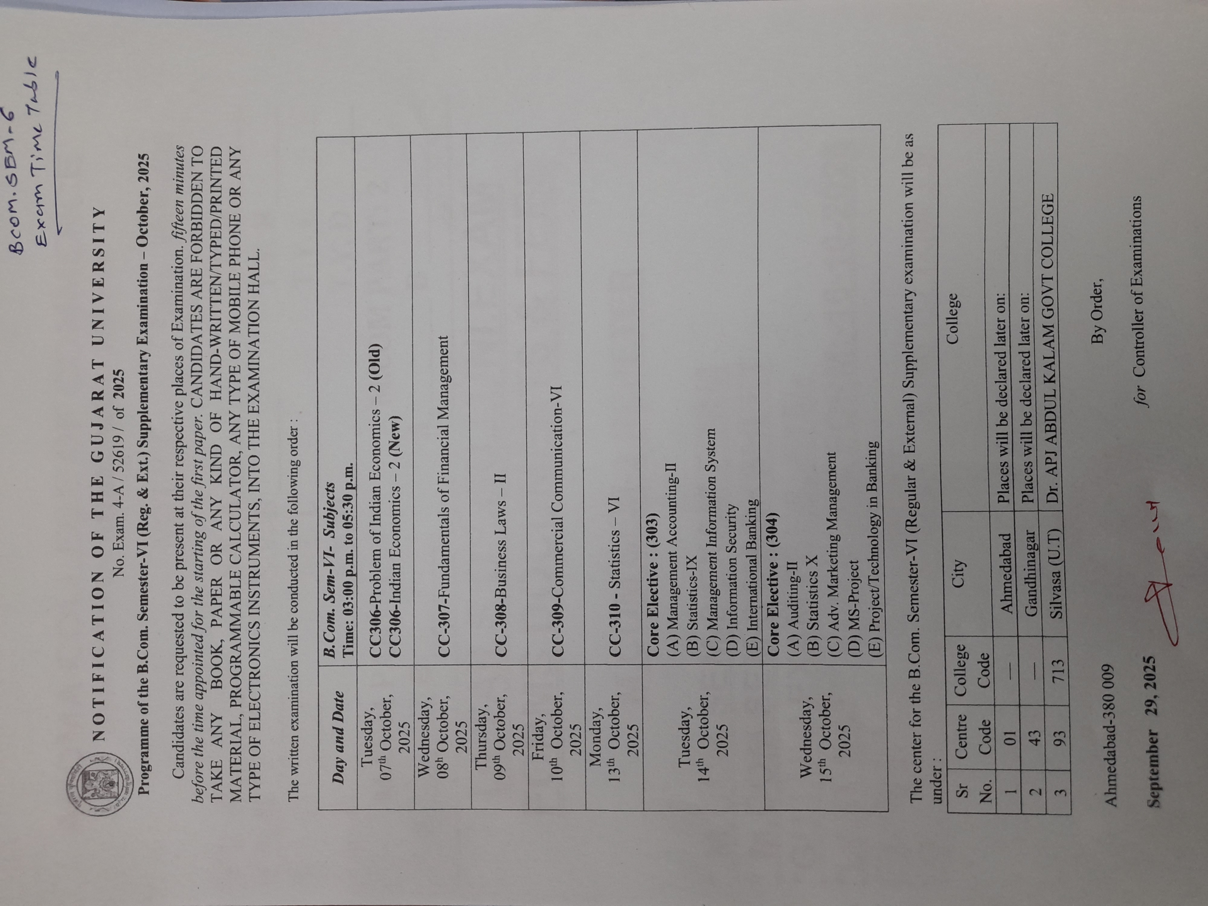 Gujarat University Exam Form and Exam dates declared. See COLLEGE NOTICE BOARD for more details -October/November-2025