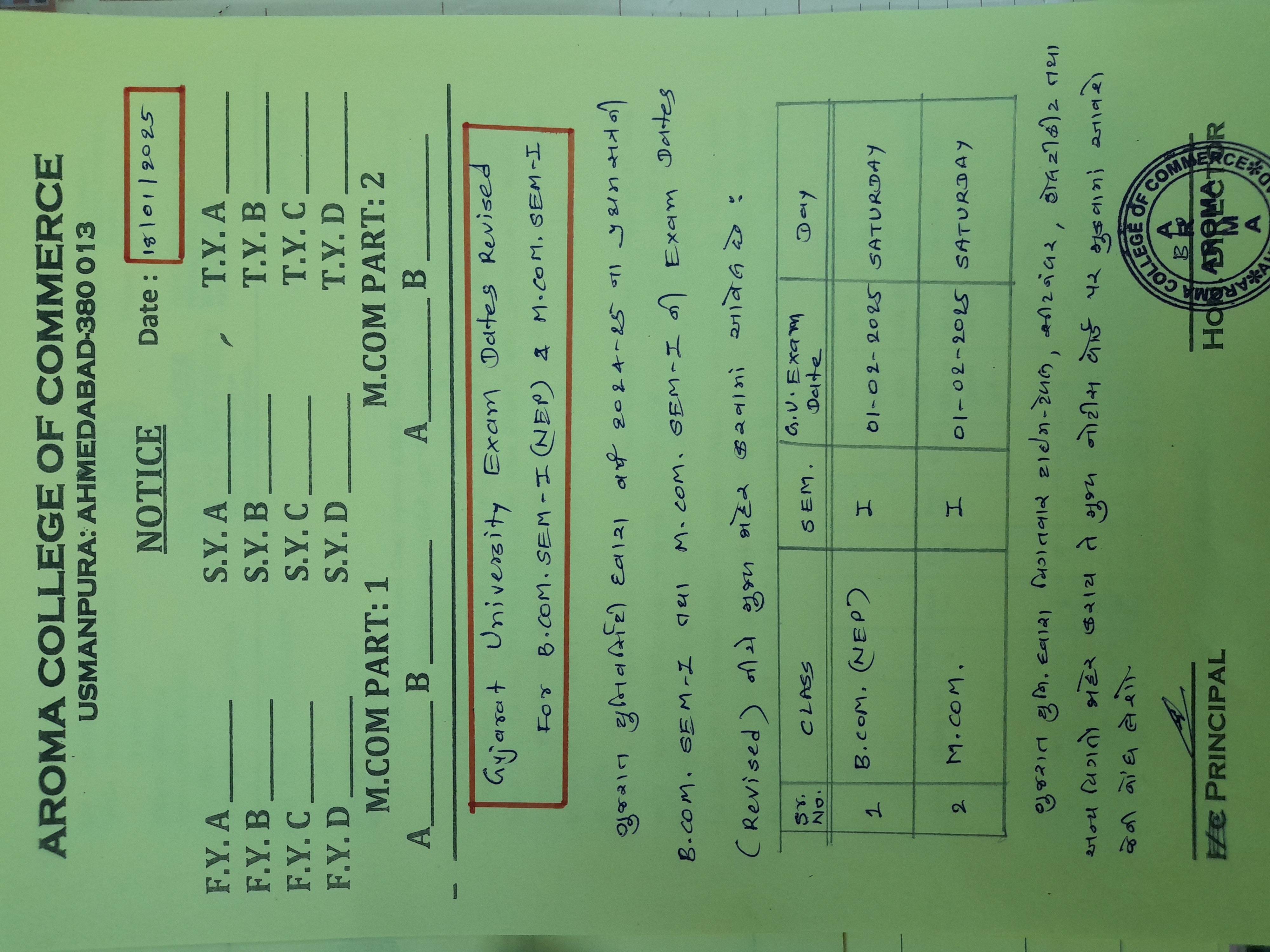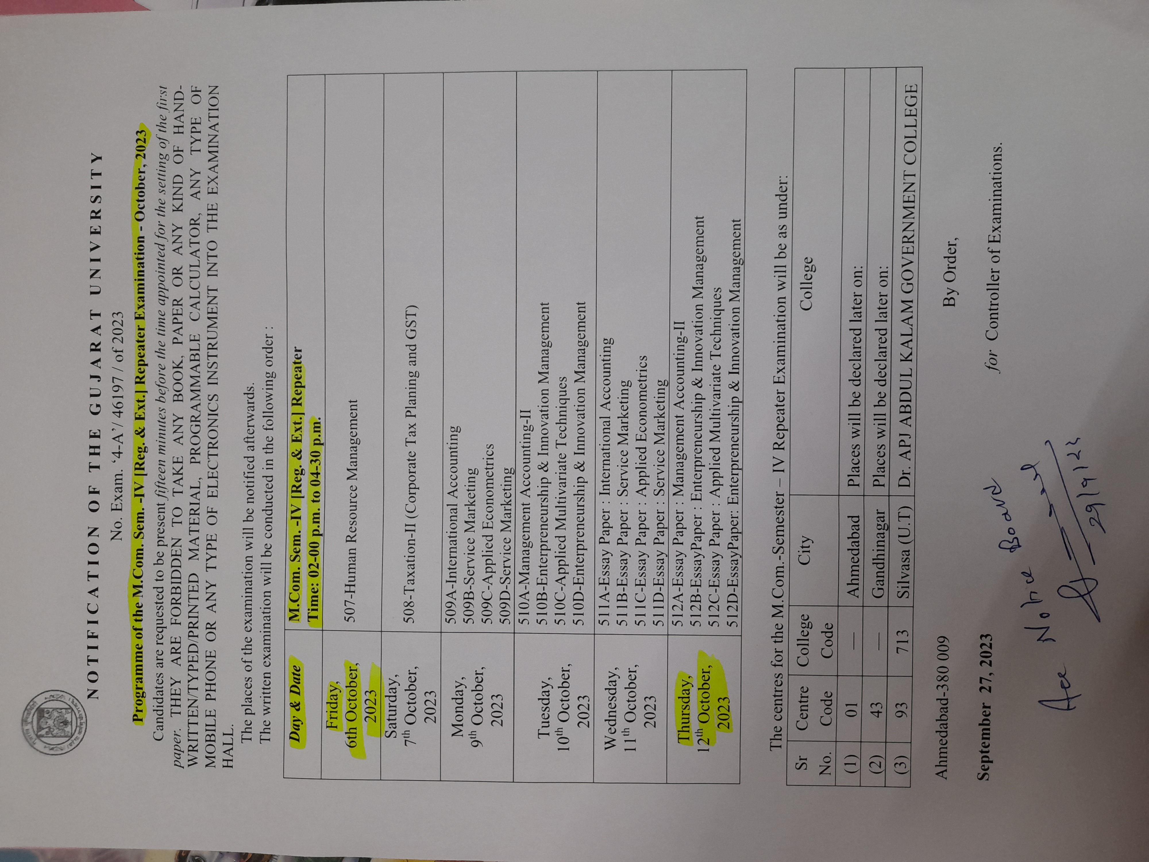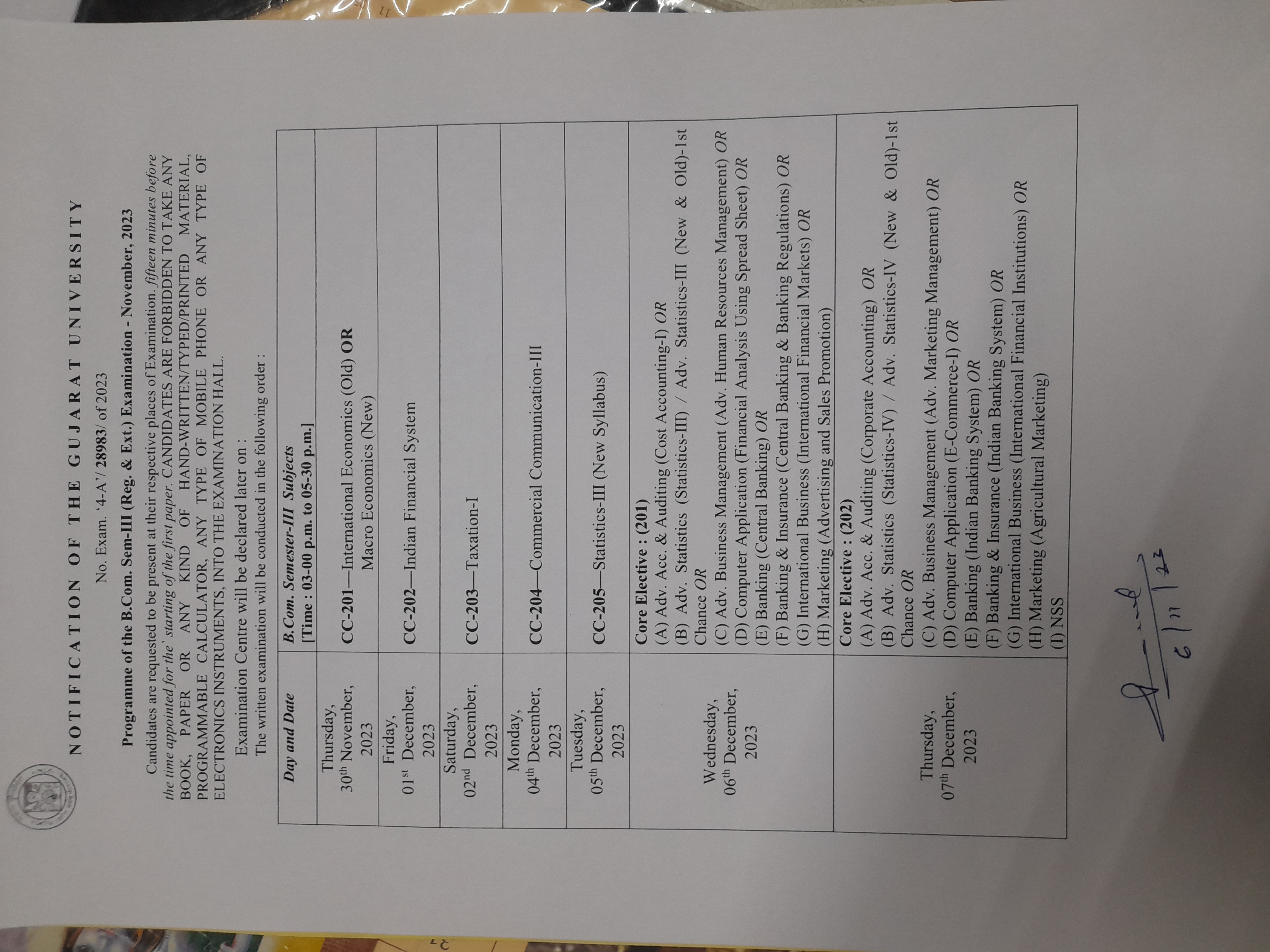 Gujarat University Exam Form and Exam dates declared. See COLLEGE NOTICE BOARD for more details -October/November-2025
