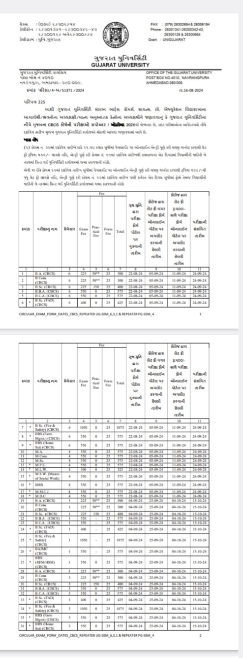 DETAIS OF GUJARAT UNIVERSITY EXAM FORM DATES AND UNI EXAM DATES FOR CBCS AND NEP STUDENTS
