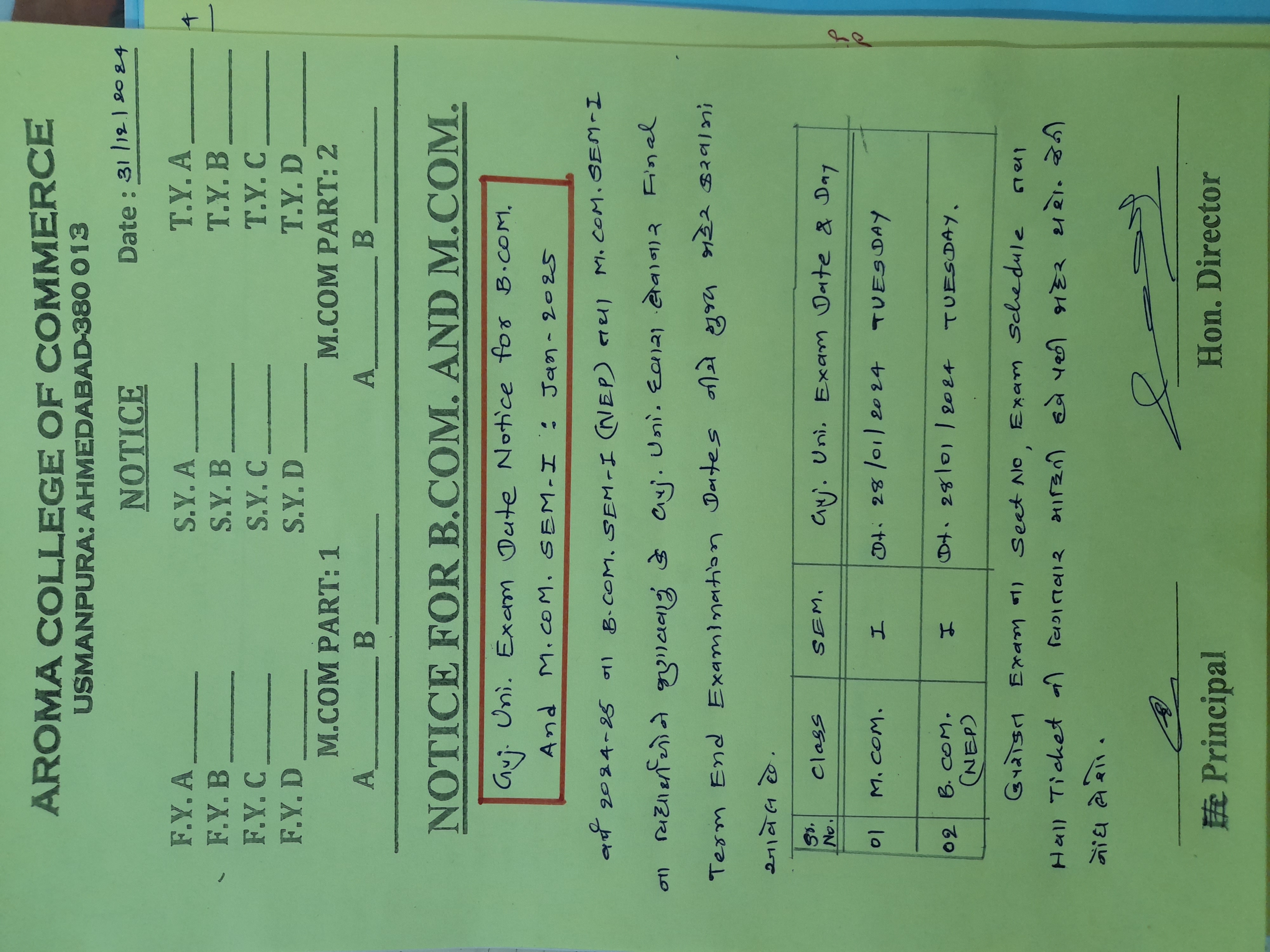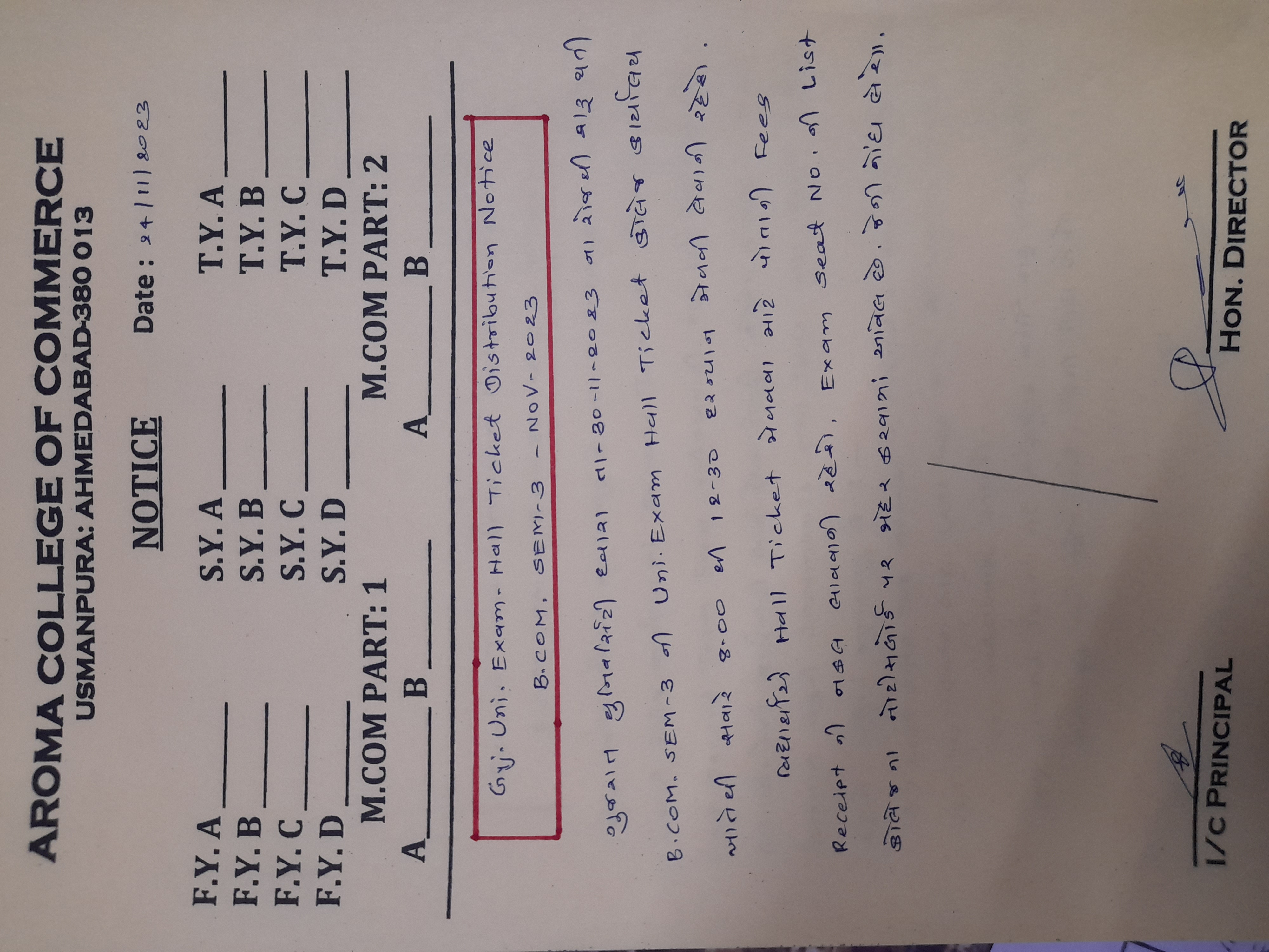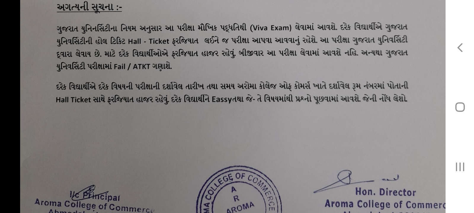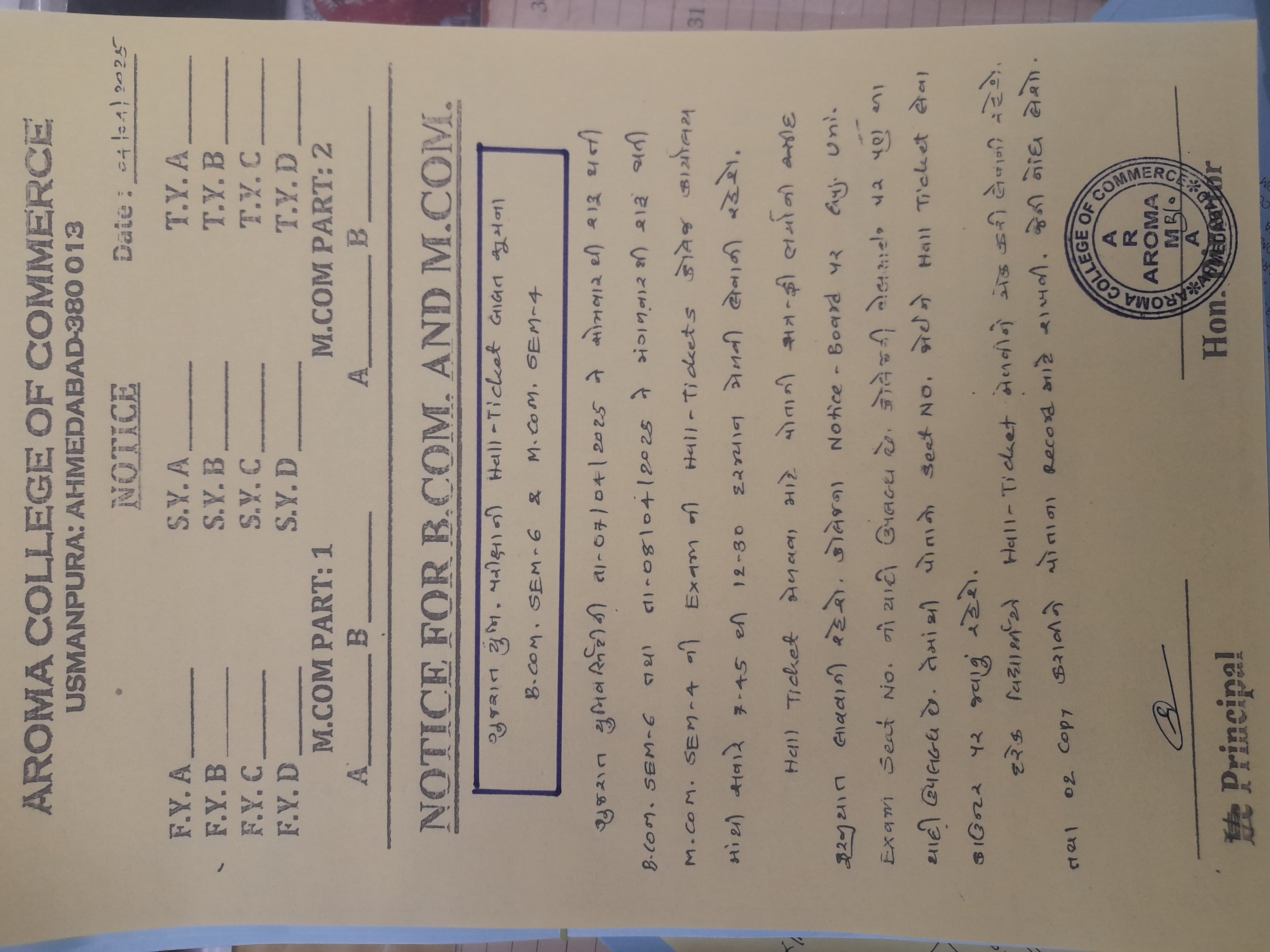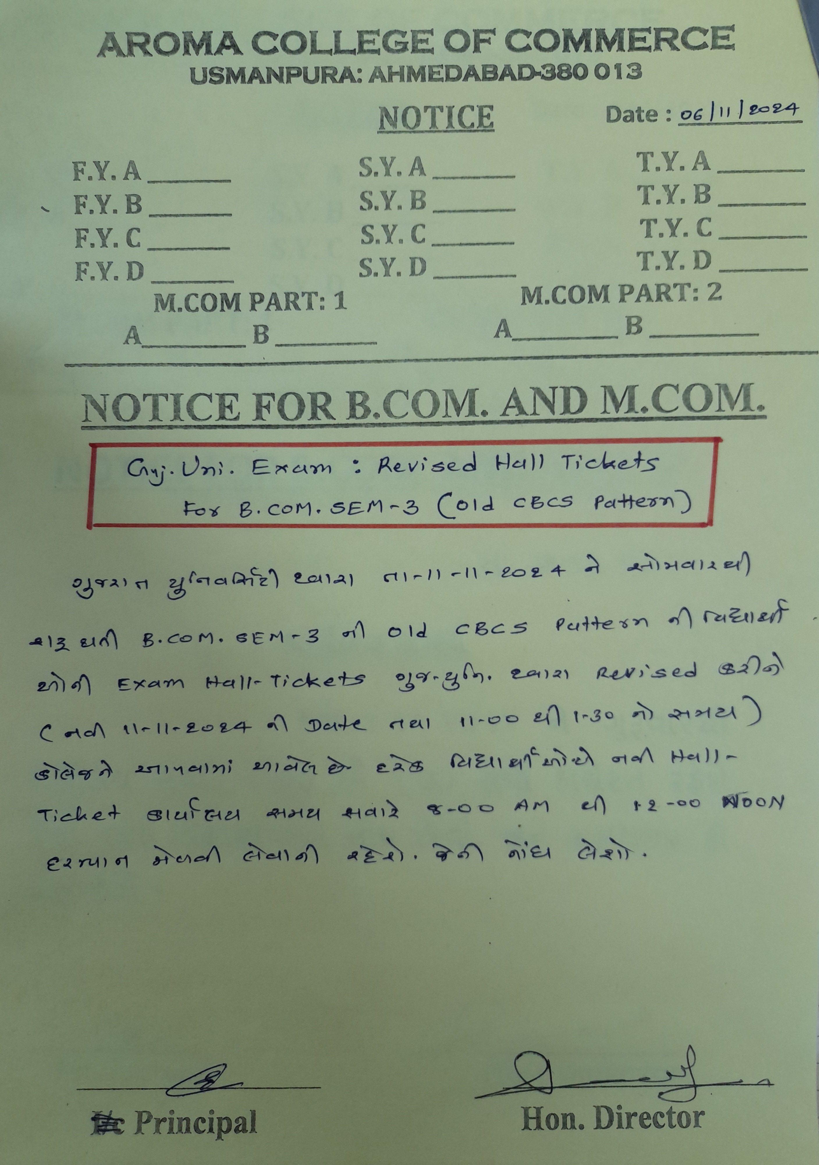 Guj uni exam Hall tickets notice for Bcom sem-6 and Mcom sem-4