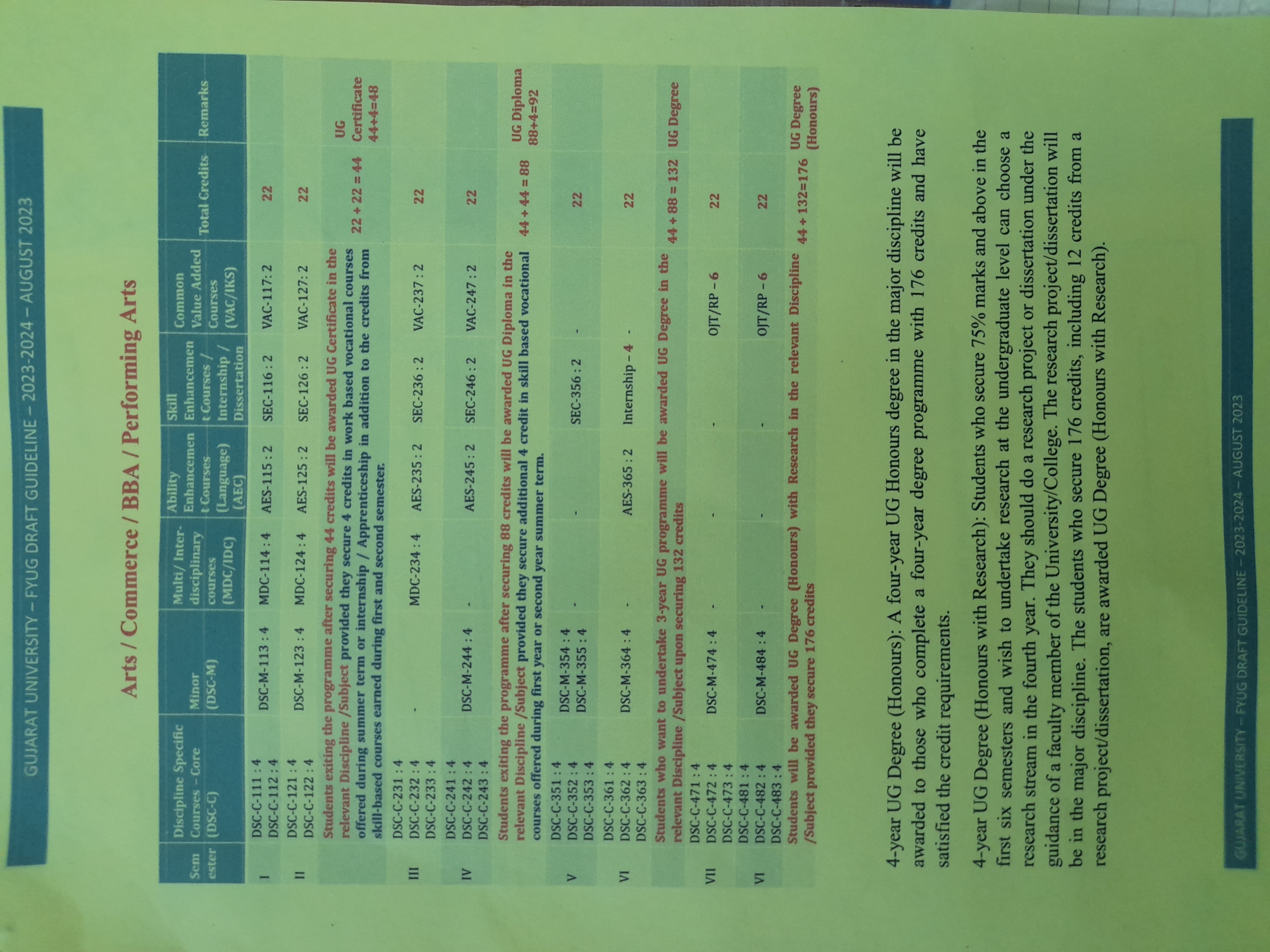 Guj uni NEP -Subjects-Structure for BCOM students. Note: see bcom sem-6 internship with 4 credits under SEC title. Detailed guidelines will be declared by Guj uni.