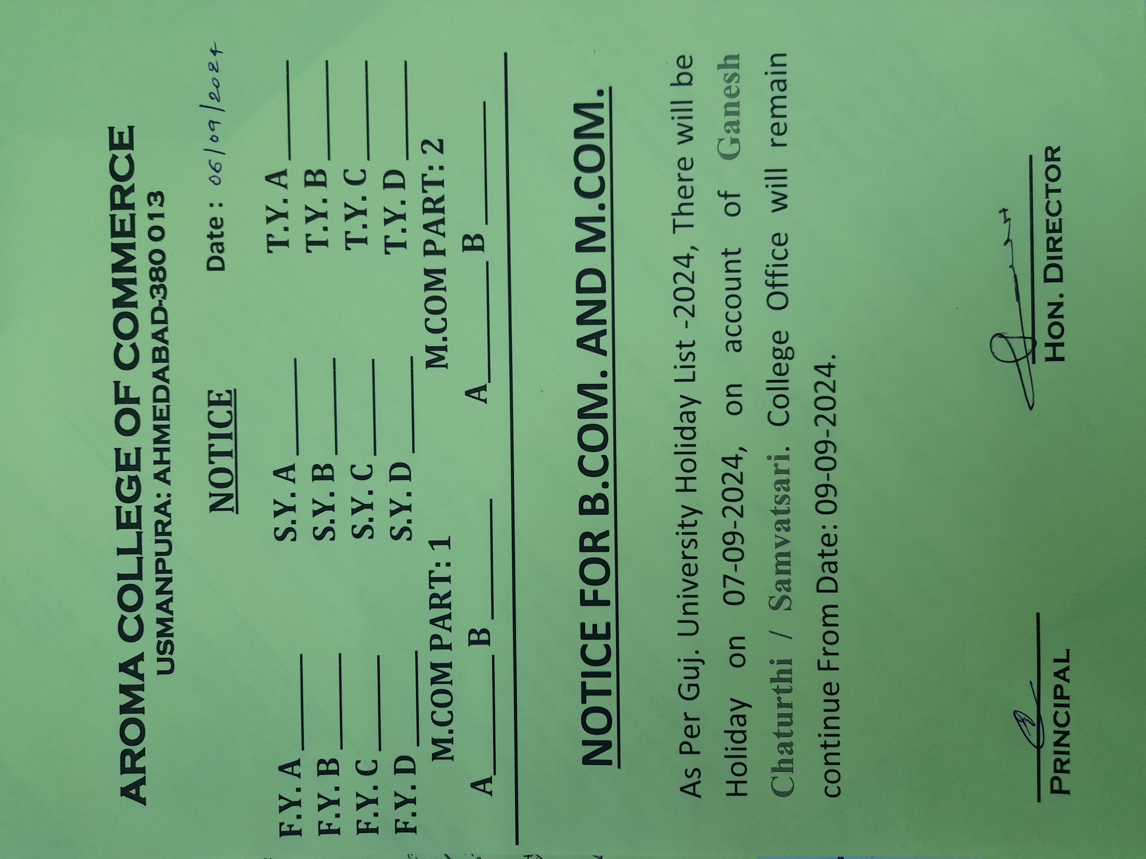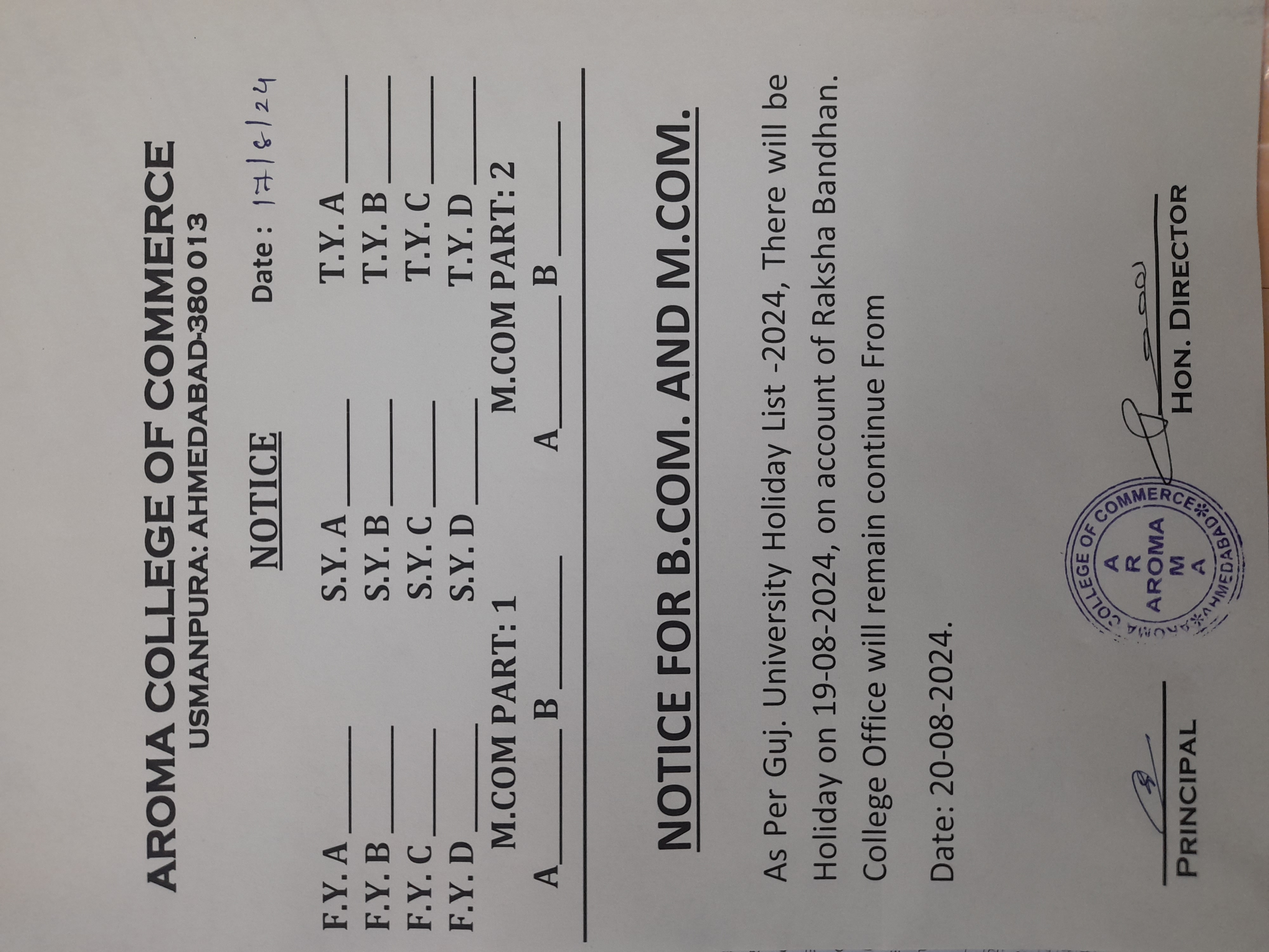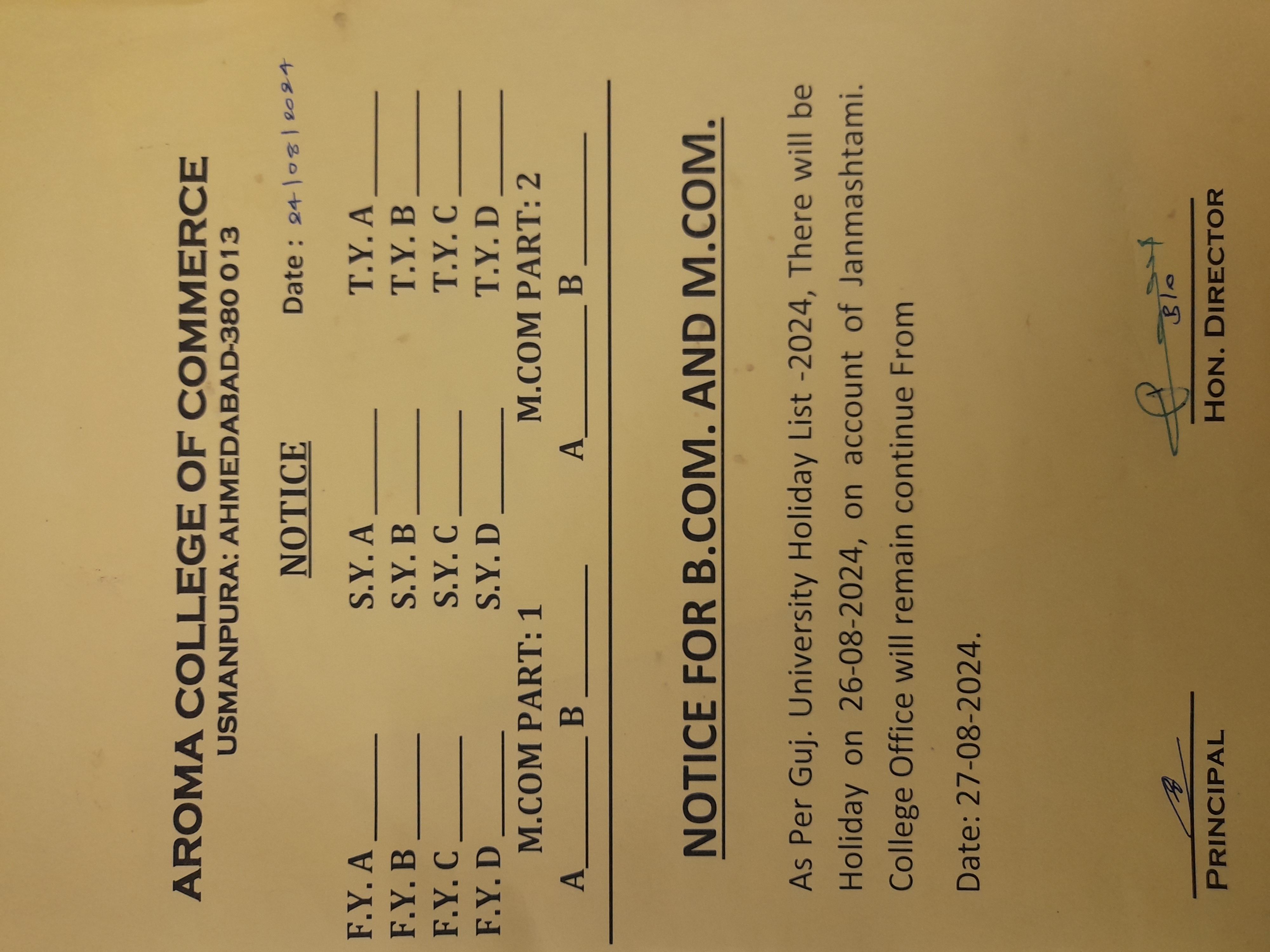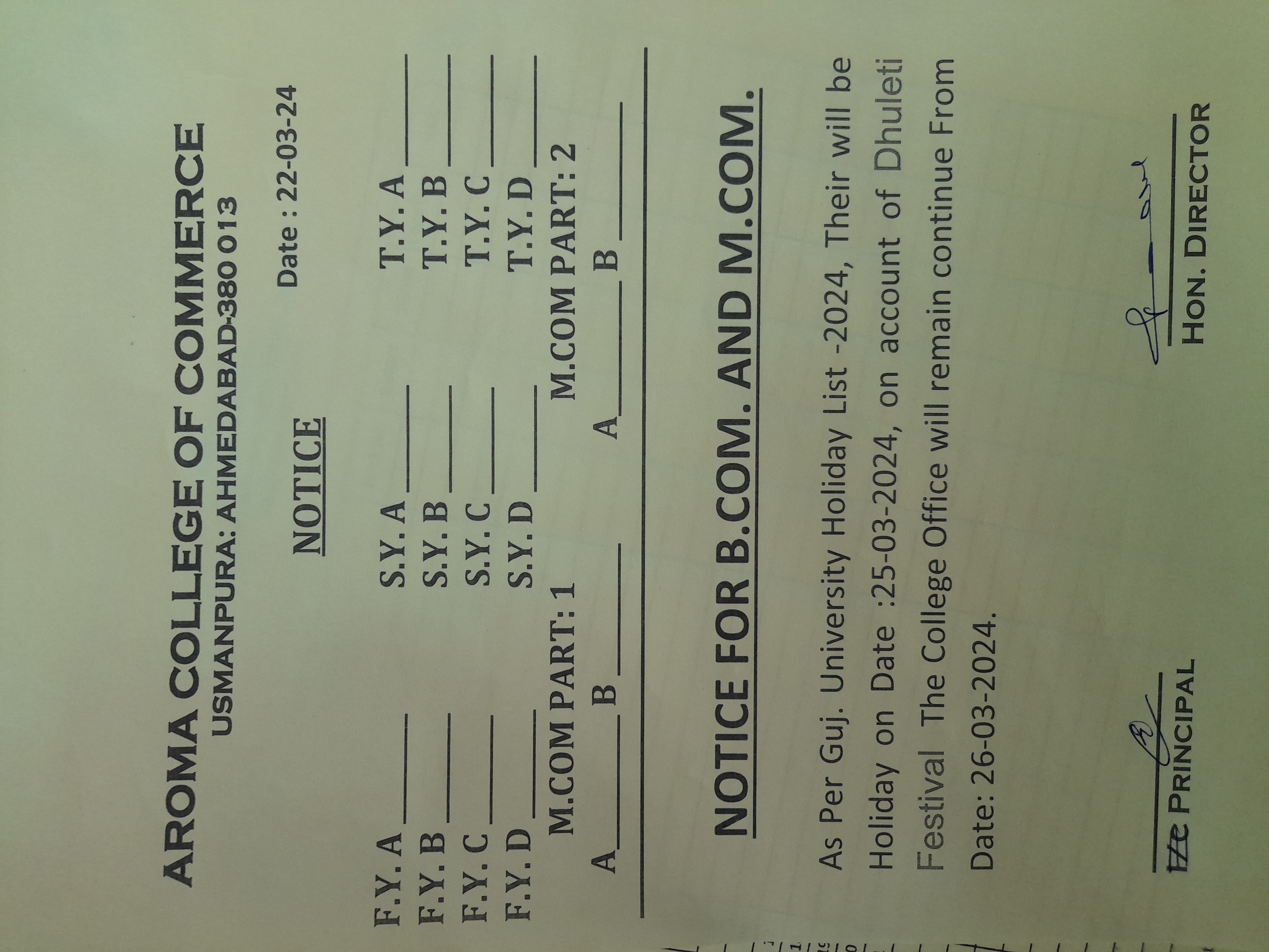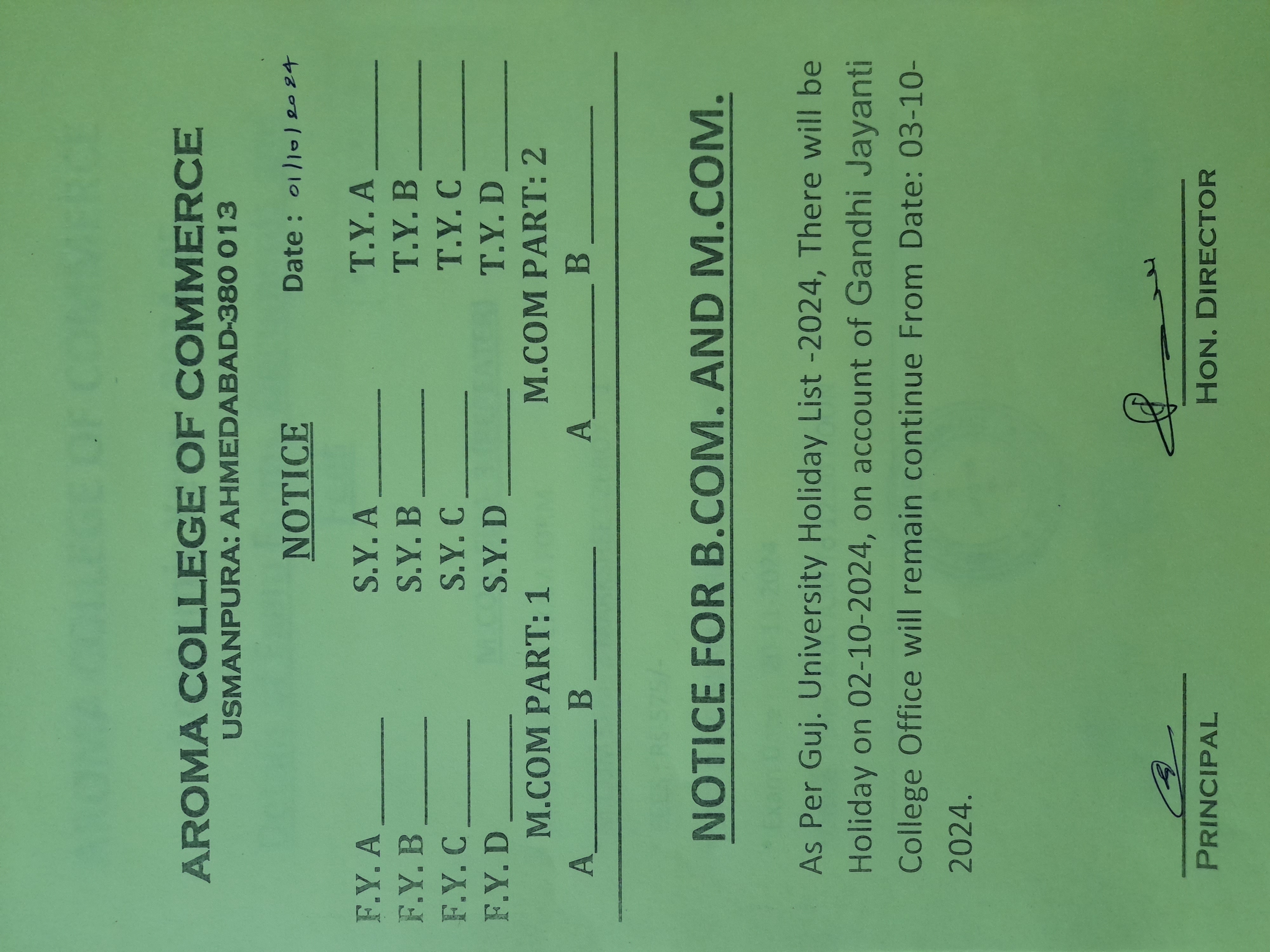 Holiday notice: As per Gujarat University Holiday list, There will be Holiday on 5/11/2025 Wednesday on account of "Gurunanak Jayanti/ Devdiwali" . College office will work regularly from 6/11/2025 Thursday.